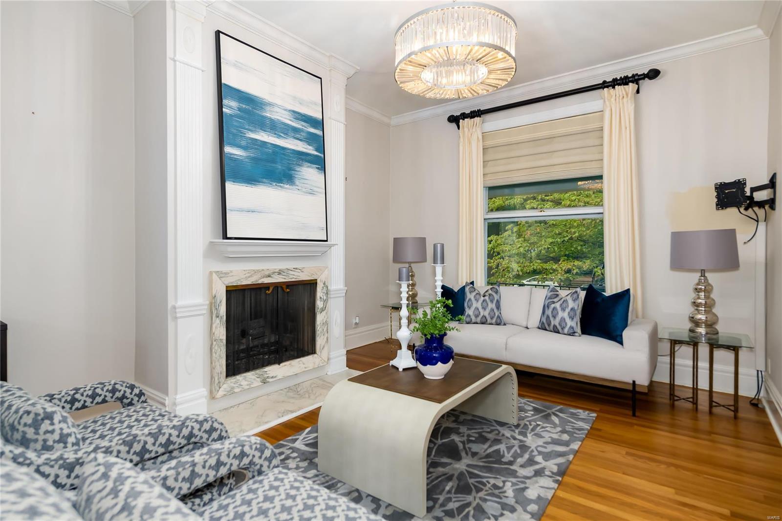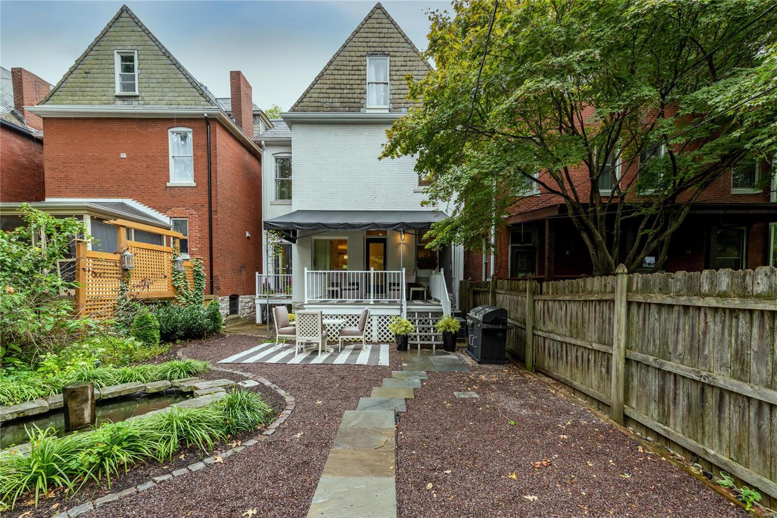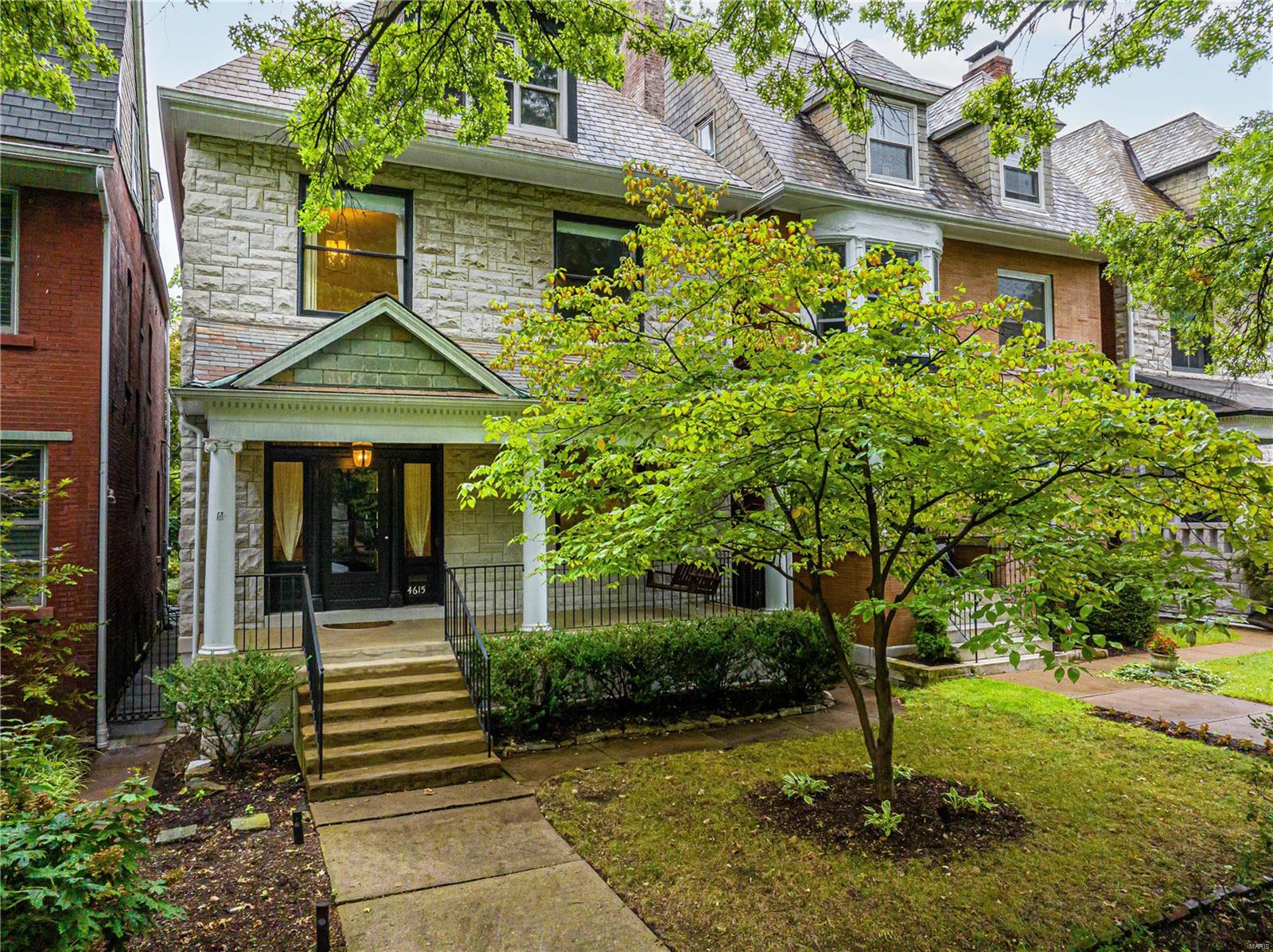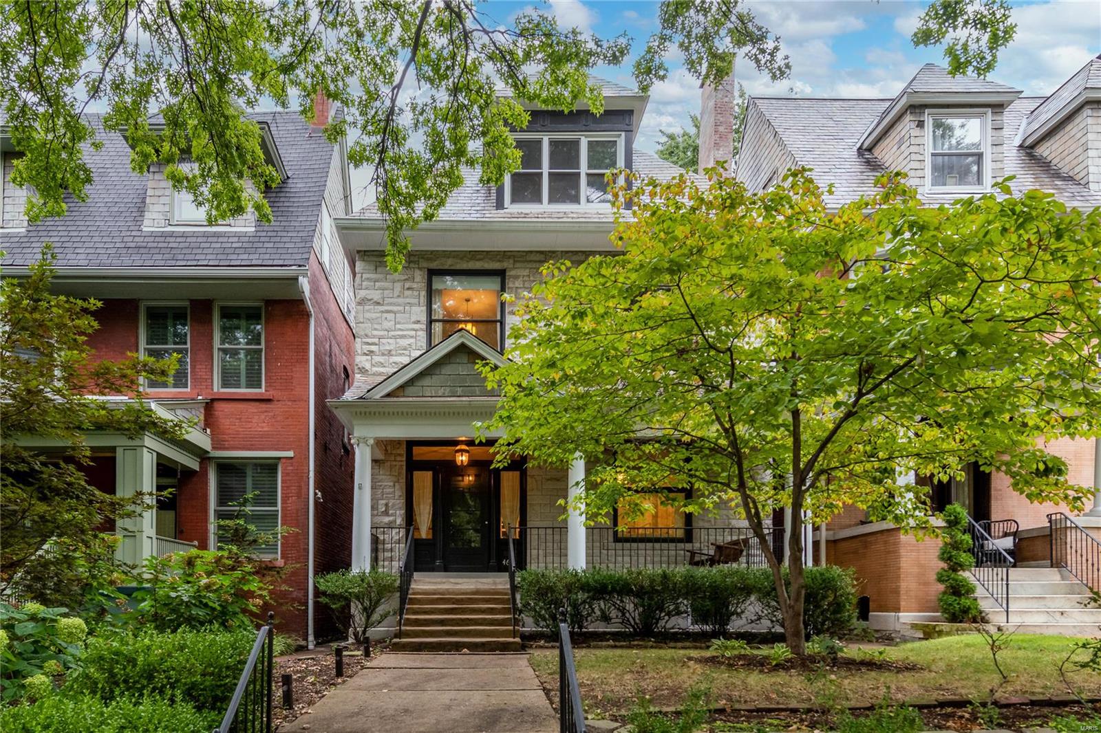 A gracious stone façade and spacious front porch welcome you to this quintessential CWE home. Inside, you will find a surprising, updated open floorplan. The spacious, combined living and dining room features a gas marble fireplace and a large picture window that overlooks the tree lined street. New kitchen with plenty of custom cabinetry, quartz countertops, center island and a door leading to the covered deck. The backyard is an oasis with a pergola, fountain, fire pit, and stone path that leads to the 2-car garage. A grand staircase with stain glass window takes you to the second floor where you will find the primary bedroom, dressing room and office. The updated bath features a dual vanity, soaking tub, shower and laundry. On the third floor you will find another bedroom, full bath and recreation room. The walkout lower level features another laundry, workout area and workshop.