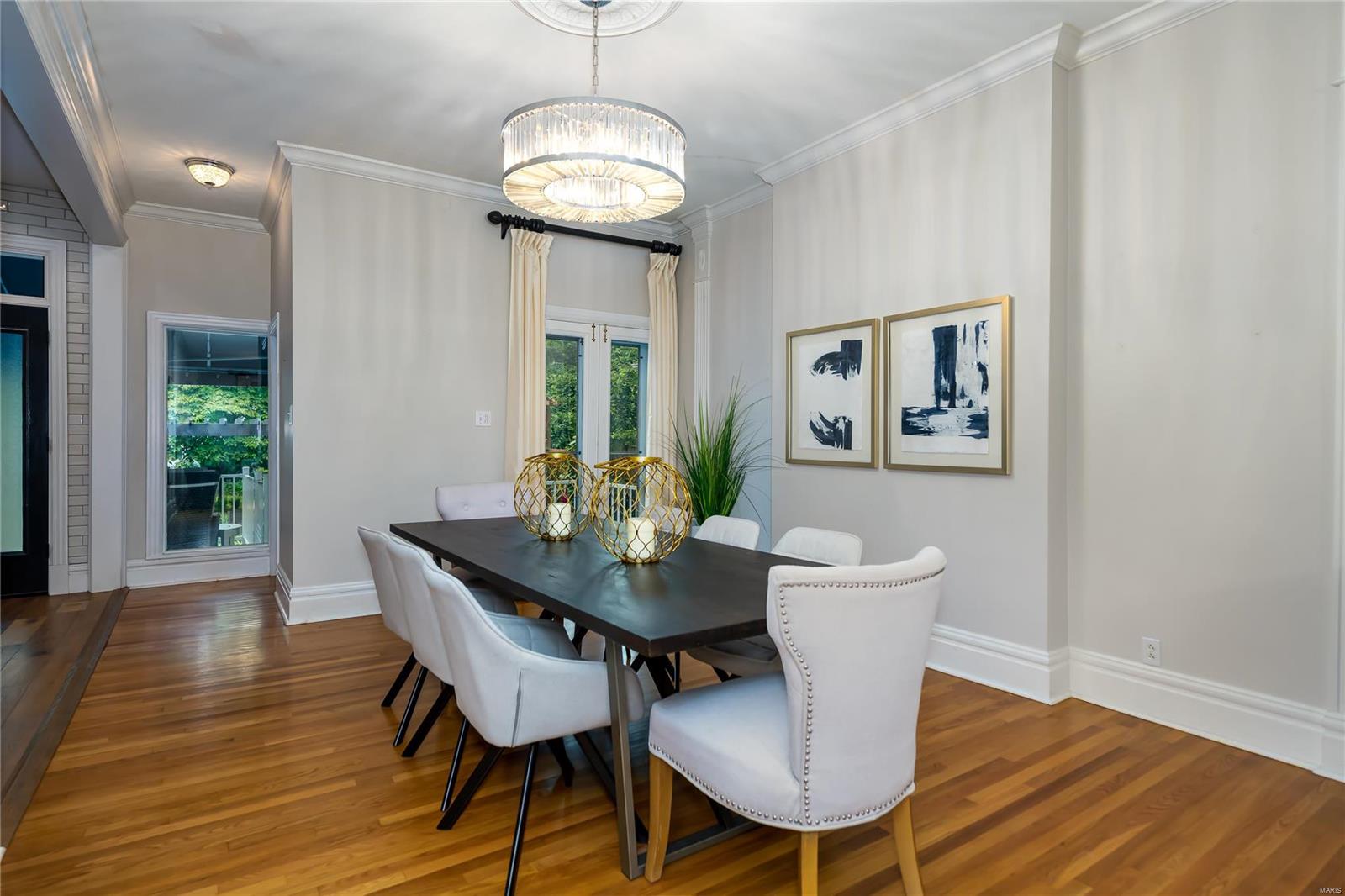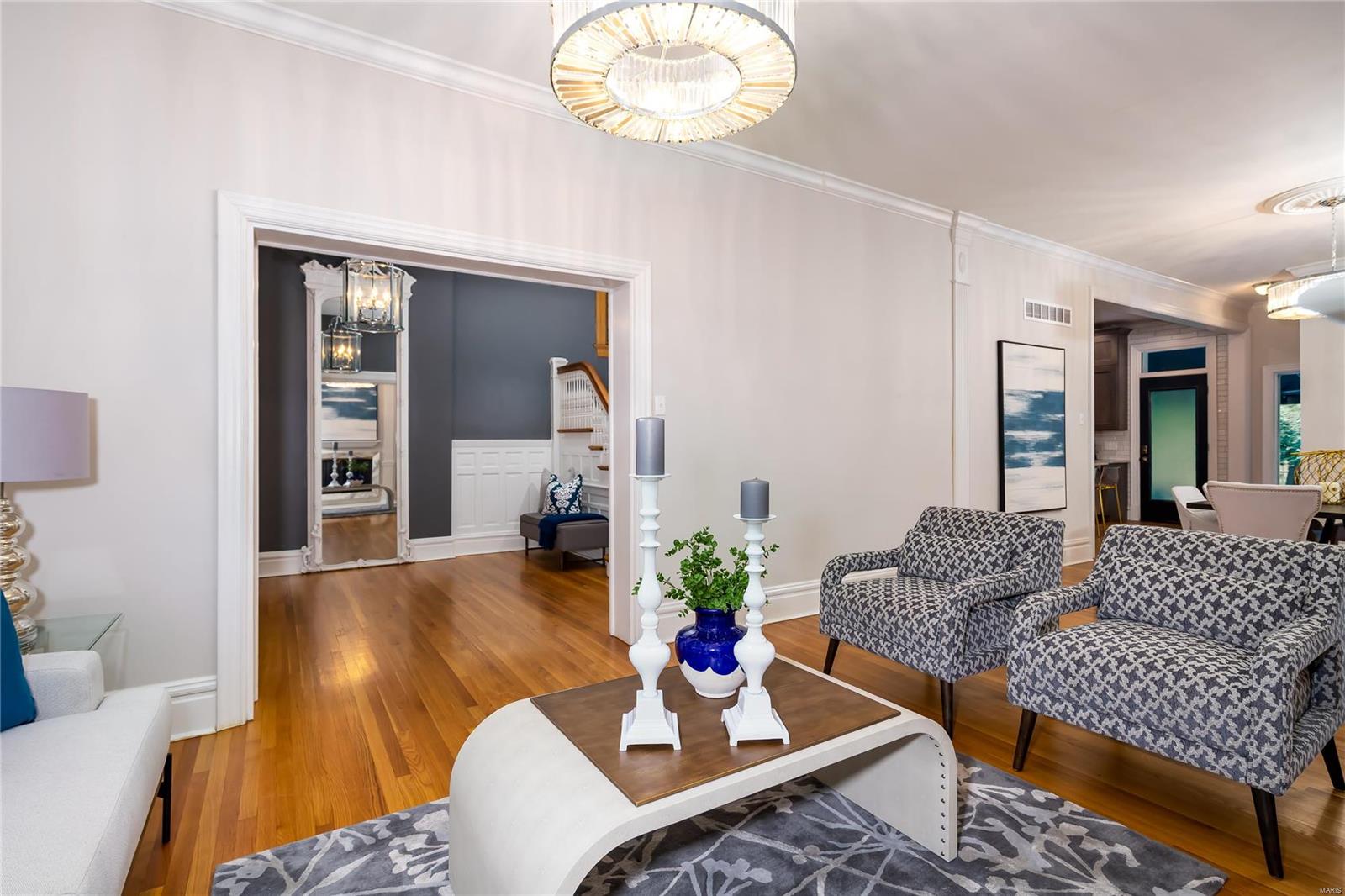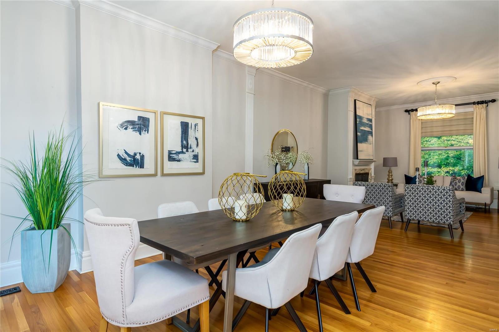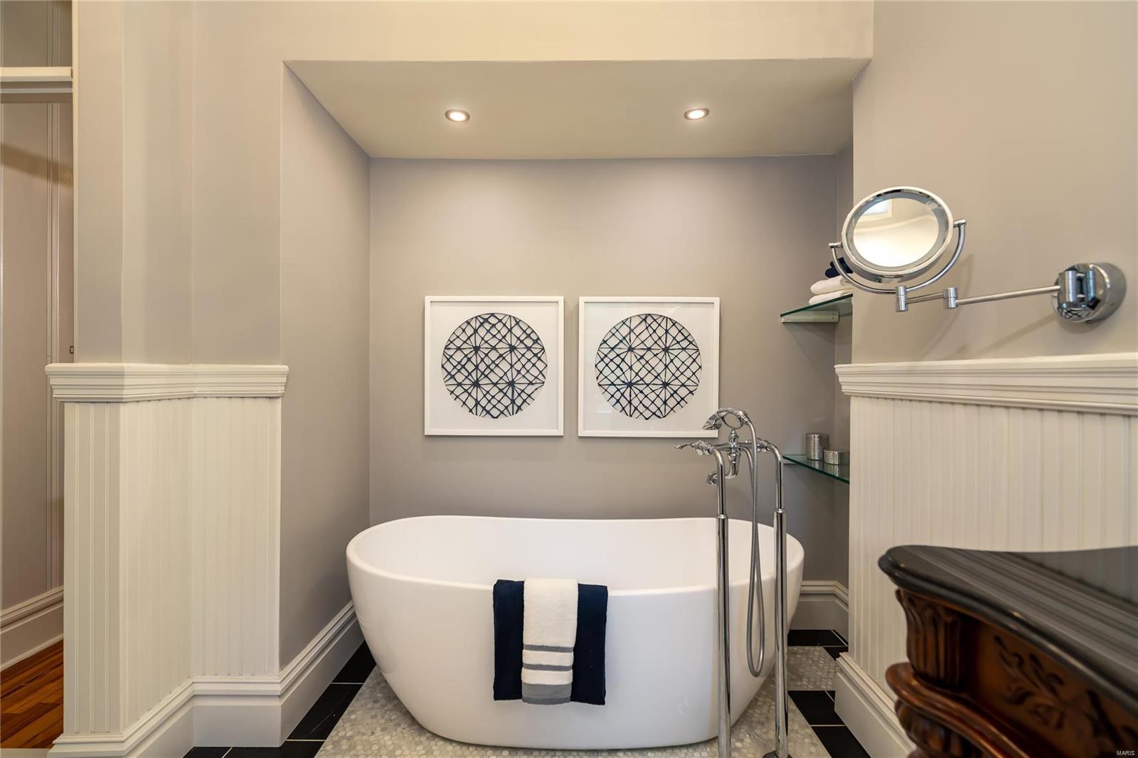 A gracious stone façade and spacious front porch welcome you to this quintessential CWE home. Inside, you will find a surprising, updated open floorplan. The spacious, combined living and dining room features a gas marble fireplace and a large picture window that overlooks the tree lined street. New kitchen with plenty of custom cabinetry, quartz countertops, center island and a door leading to the covered deck. The backyard is an oasis with a pergola, fountain, fire pit, and stone path that leads to the 2-car garage. A grand staircase with stain glass window takes you to the second floor where you will find the primary bedroom, dressing room and office. The updated bath features a dual vanity, soaking tub, shower and laundry. On the third floor you will find another bedroom, full bath and recreation room. The walkout lower level features another laundry, workout area and workshop.