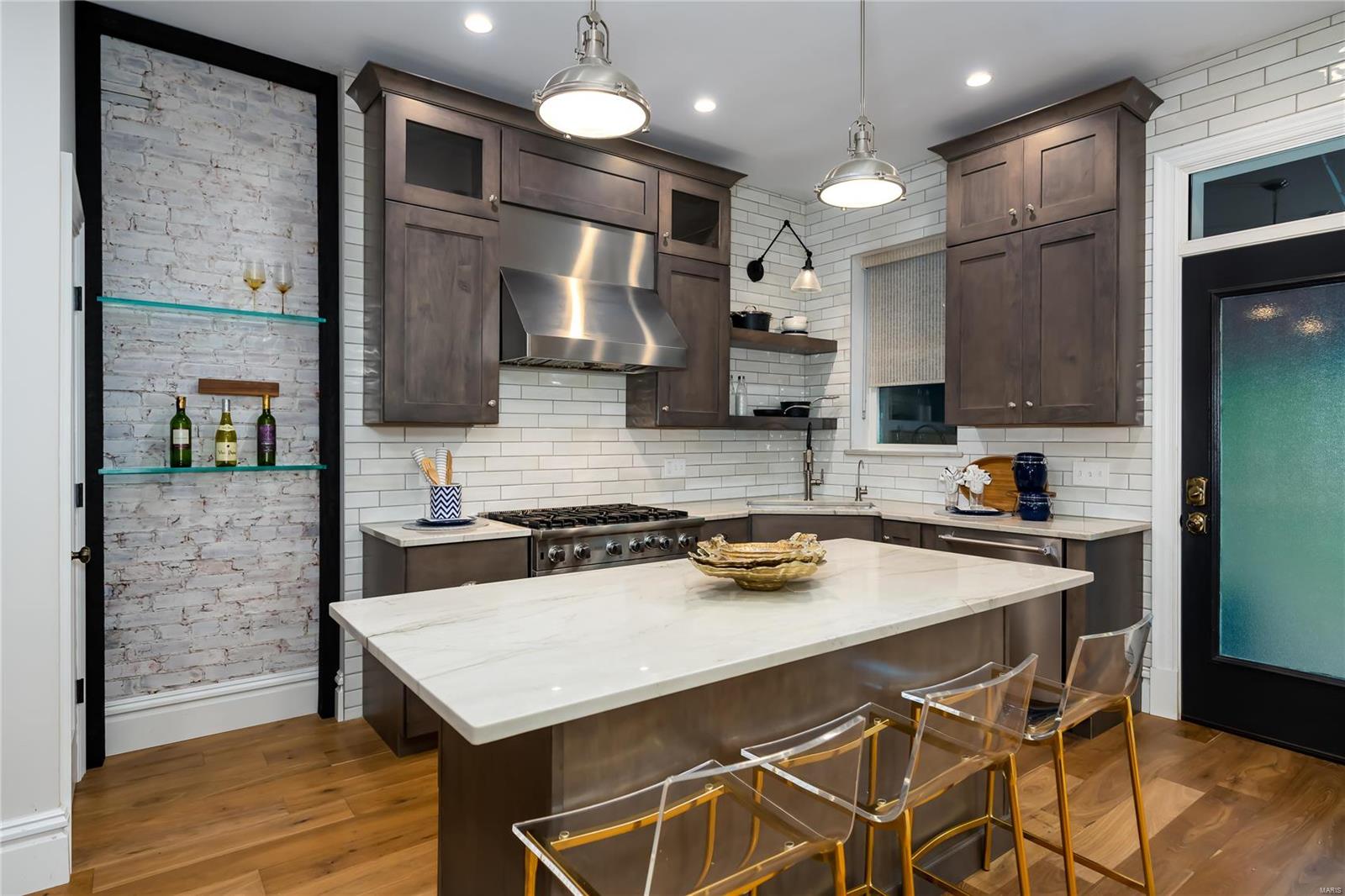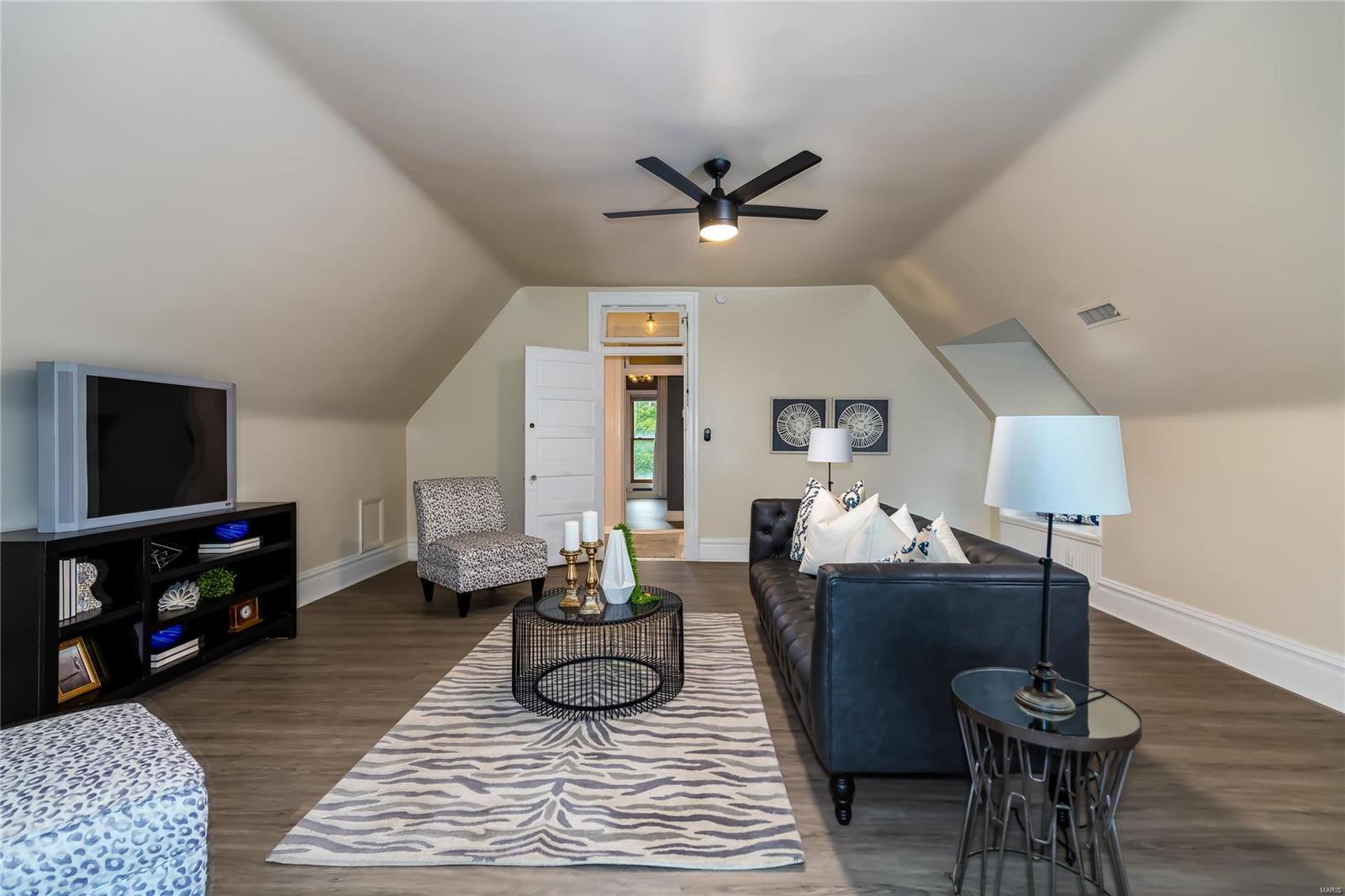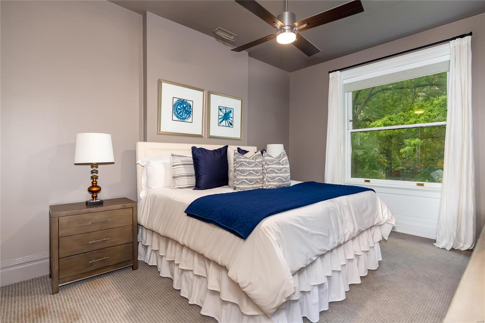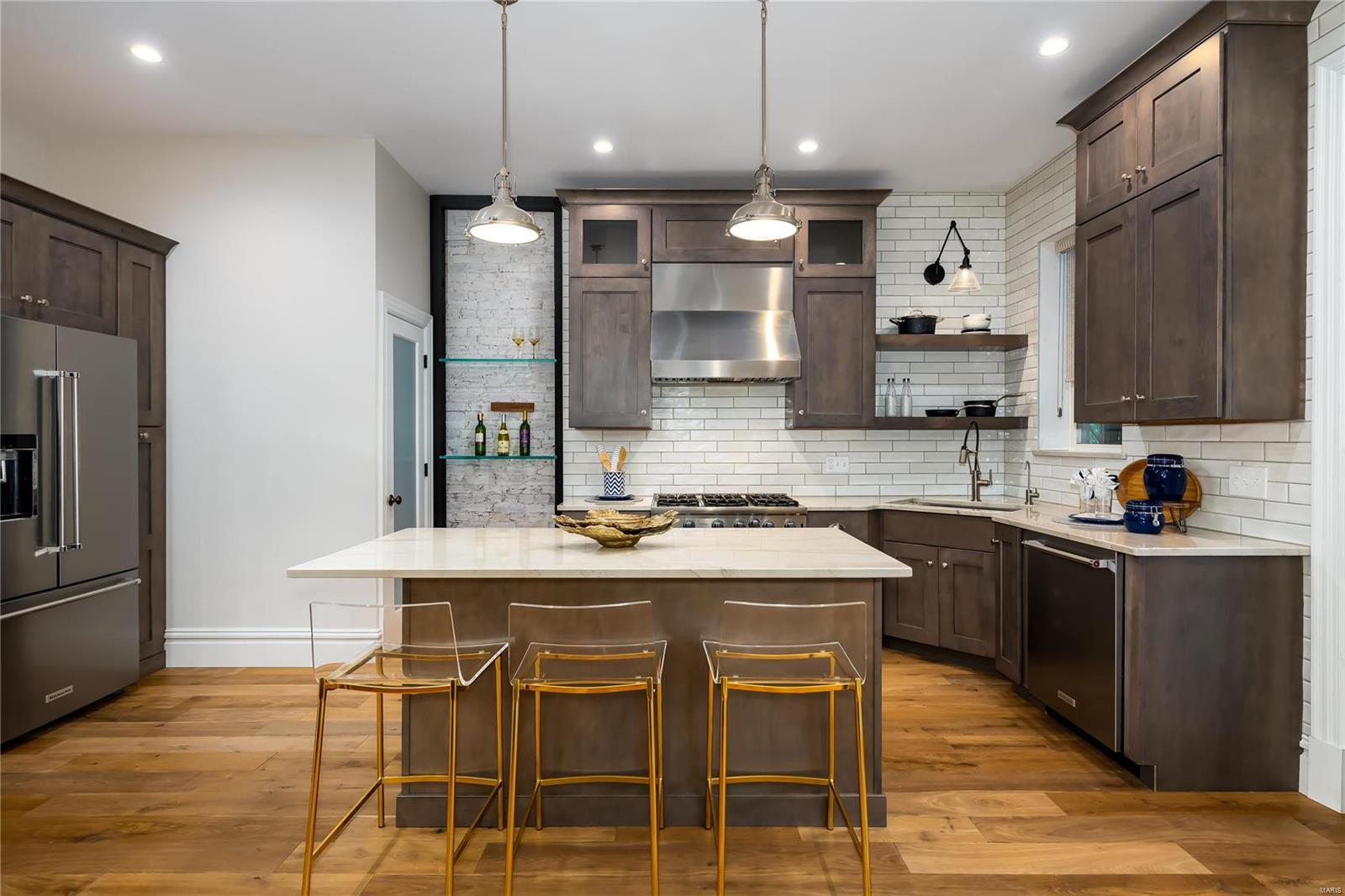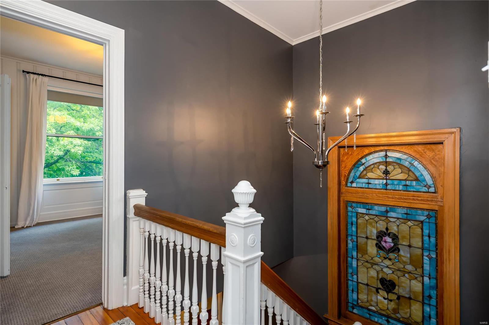 A gracious stone façade and spacious front porch welcome you to this quintessential CWE home. Inside, you will find a surprising, updated open floorplan. The spacious, combined living and dining room features a gas marble fireplace and a large picture window that overlooks the tree lined street. New kitchen with plenty of custom cabinetry, quartz countertops, center island and a door leading to the covered deck. The backyard is an oasis with a pergola, fountain, fire pit, and stone path that leads to the 2-car garage. A grand staircase with stain glass window takes you to the second floor where you will find the primary bedroom, dressing room and office. The updated bath features a dual vanity, soaking tub, shower and laundry. On the third floor you will find another bedroom, full bath and recreation room. The walkout lower level features another laundry, workout area and workshop.