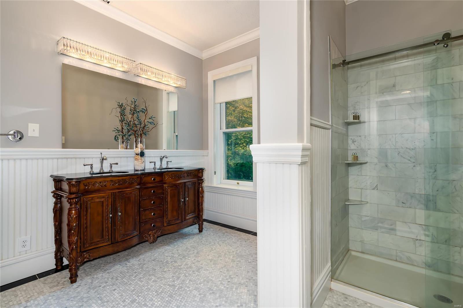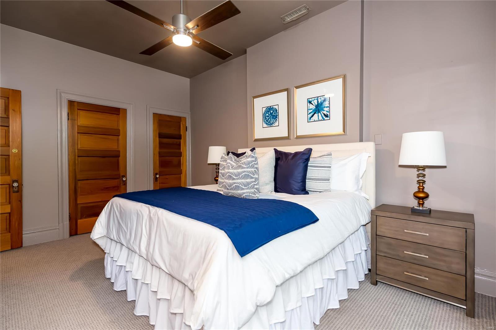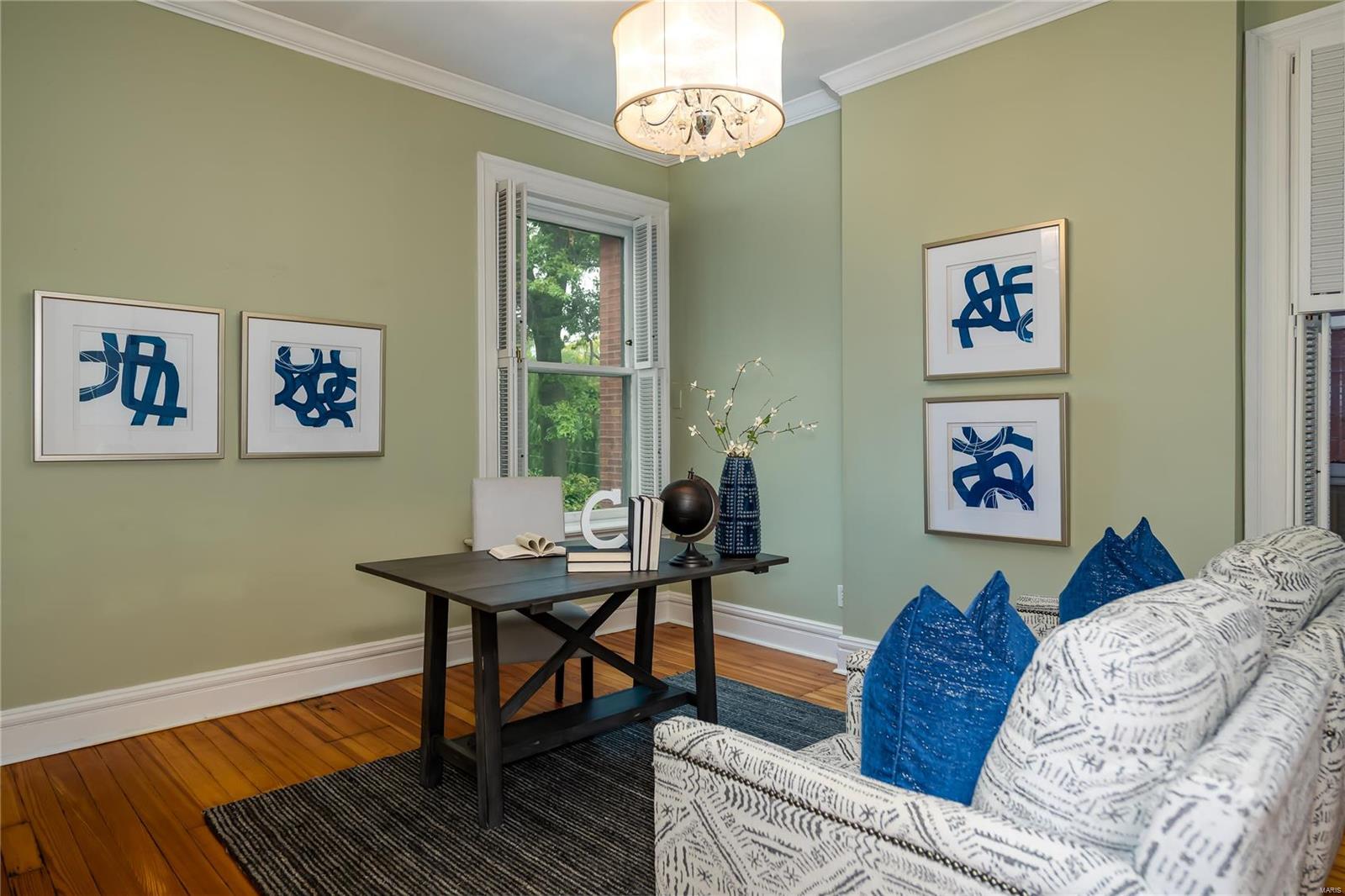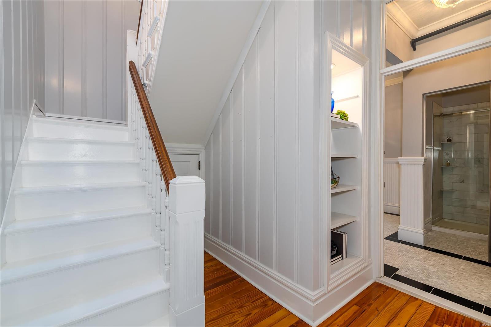 A gracious stone façade and spacious front porch welcome you to this quintessential CWE home. Inside, you will find a surprising, updated open floorplan. The spacious, combined living and dining room features a gas marble fireplace and a large picture window that overlooks the tree lined street. New kitchen with plenty of custom cabinetry, quartz countertops, center island and a door leading to the covered deck. The backyard is an oasis with a pergola, fountain, fire pit, and stone path that leads to the 2-car garage. A grand staircase with stain glass window takes you to the second floor where you will find the primary bedroom, dressing room and office. The updated bath features a dual vanity, soaking tub, shower and laundry. On the third floor you will find another bedroom, full bath and recreation room. The walkout lower level features another laundry, workout area and workshop.