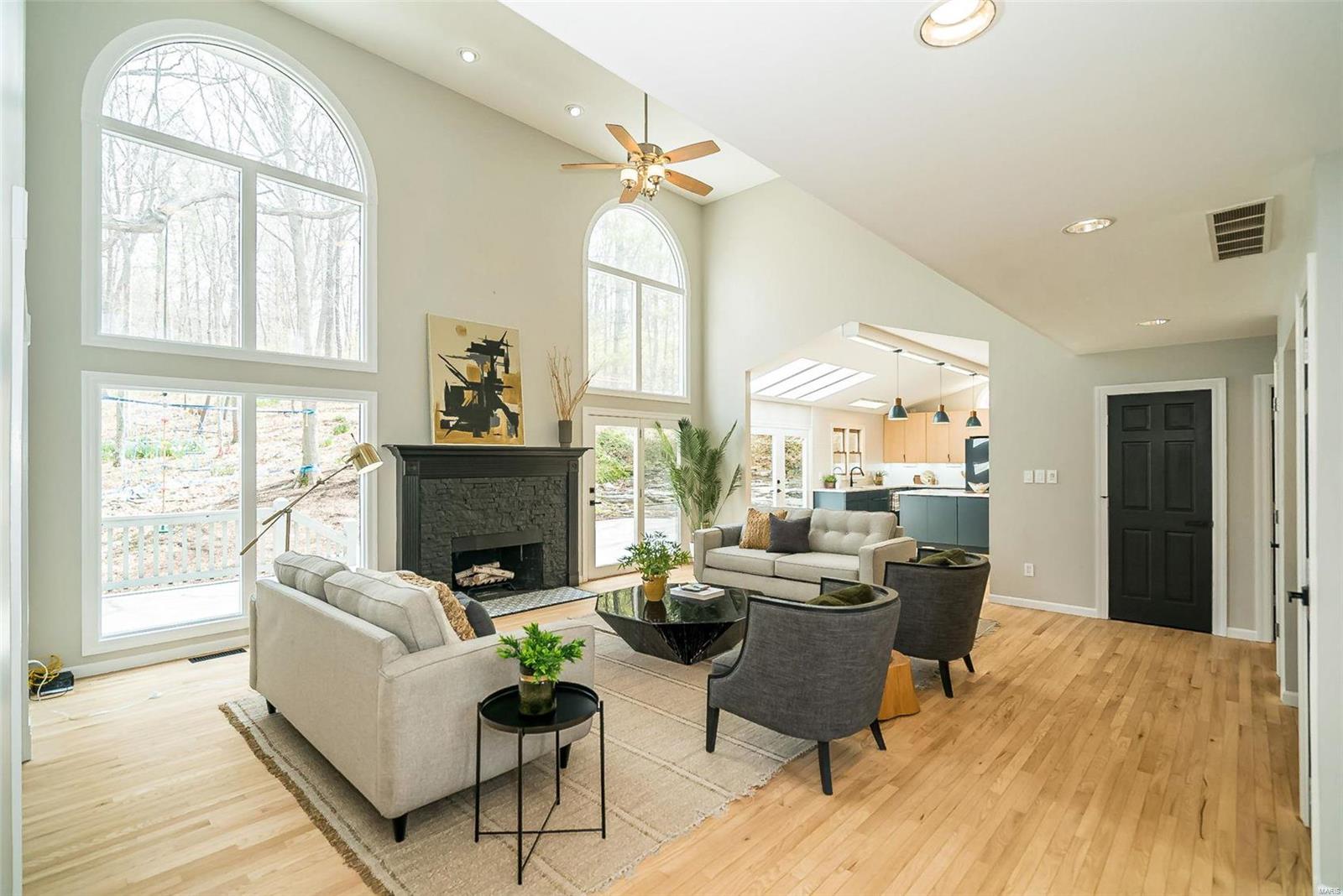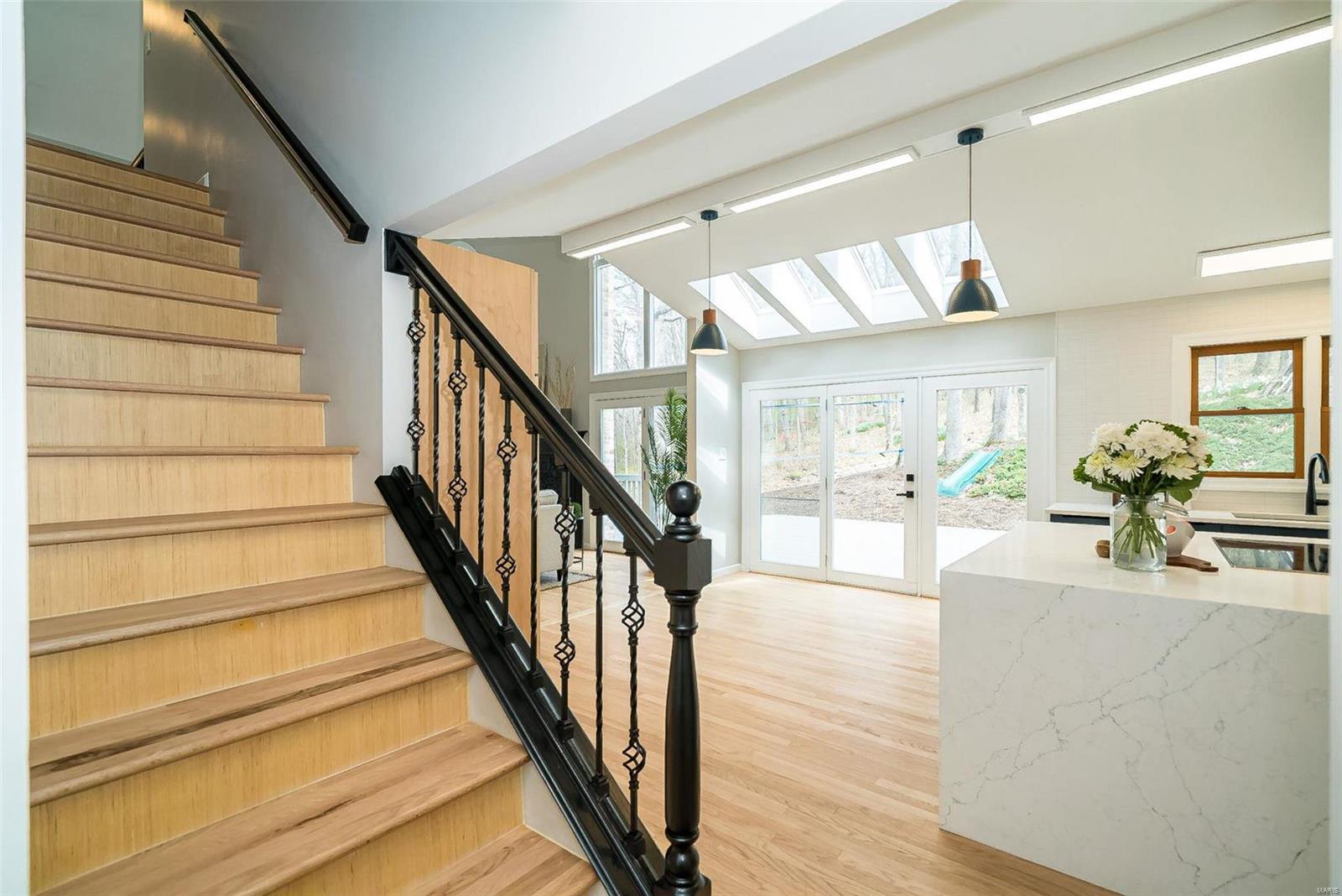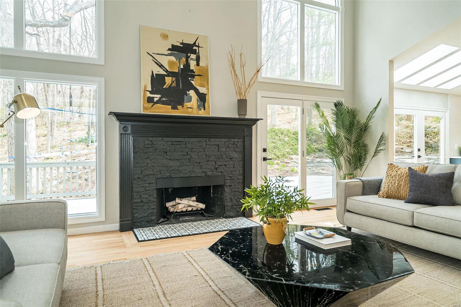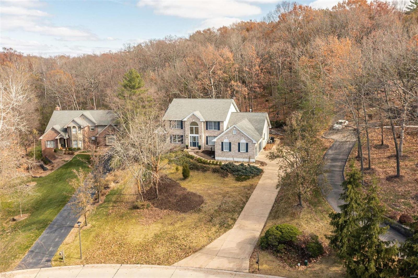 Classy. Modern. Chic! This hidden gem will lure you in with it's scenic picturesque views, soaring sundrenched spaces and spectacular renovations throughout! Dramatic two-story entry, dining room w/stylish accent wall, grand great room w/wall of windows, wet bar and focal fireplace. STUNNING kitchen w/luxe cabinetry, Calacatta Splendor quartz countertops w/waterfall side, fabulous island w/induction cooktop, double s/s ovens, Samsung Bespoke fridge and storage galore! Private office/study is adjacent to the tranquil primary suite featuring large walk-in closet, luxurious spa-like bath w/double vanities, corner soaking tub and deluxe shower. Head upstairs (note the side staircase!) to find (3) large bedrooms. (2) share a gorgeous jack-n-jill bath and the 3rd is private w/it's own full bath that is equally impressive. The massive lower level is a showstopper! Family room w/stunning stone fireplace, rec/game area, workout room, serene sauna and 4th full bath! Award winning Lindbergh SD!