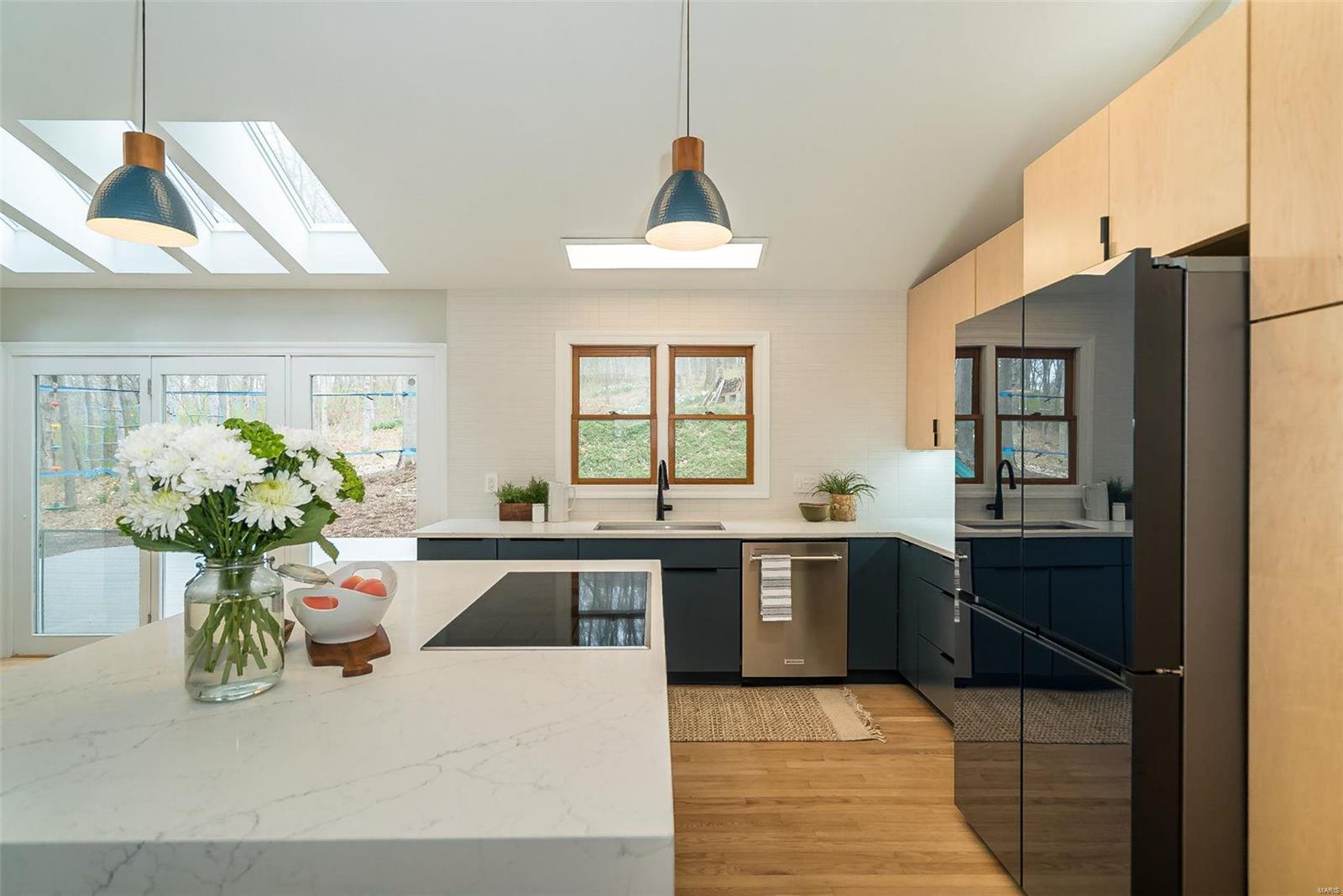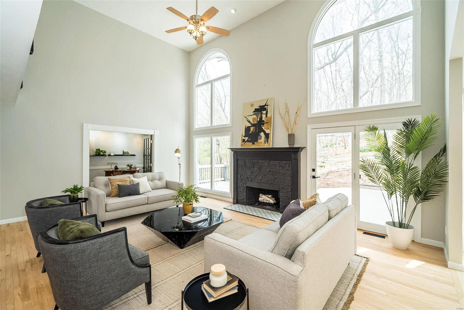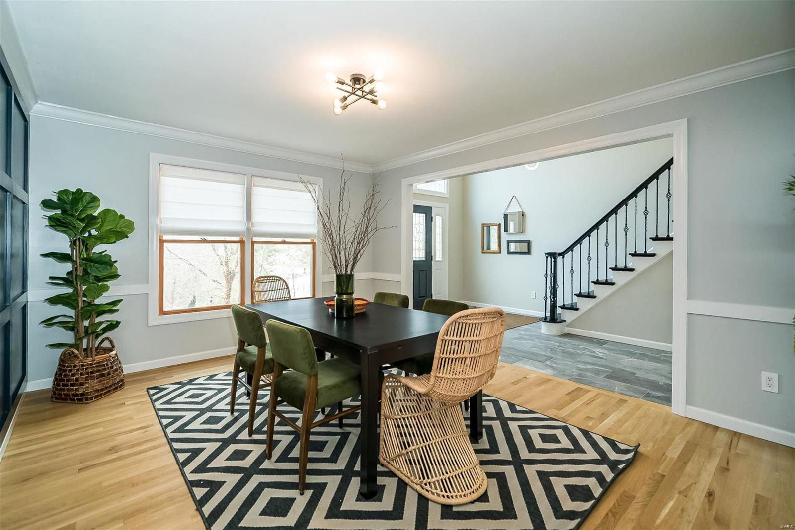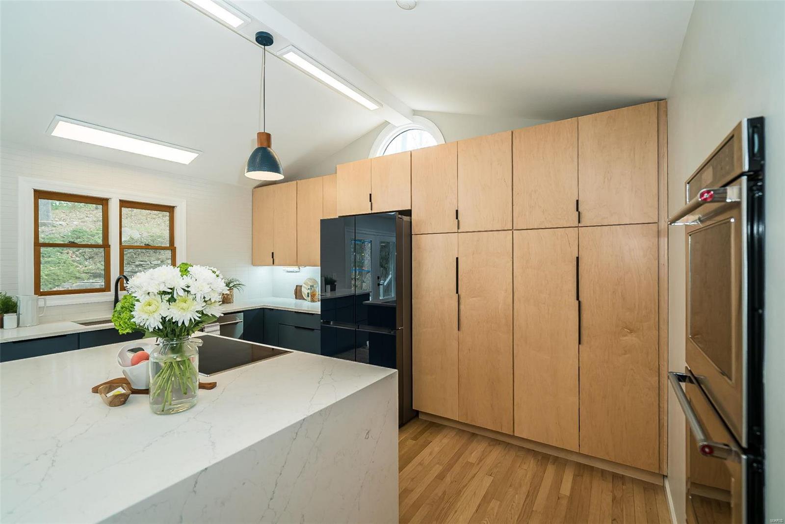 Classy. Modern. Chic! This hidden gem will lure you in with it's scenic picturesque views, soaring sundrenched spaces and spectacular renovations throughout! Dramatic two-story entry, dining room w/stylish accent wall, grand great room w/wall of windows, wet bar and focal fireplace. STUNNING kitchen w/luxe cabinetry, Calacatta Splendor quartz countertops w/waterfall side, fabulous island w/induction cooktop, double s/s ovens, Samsung Bespoke fridge and storage galore! Private office/study is adjacent to the tranquil primary suite featuring large walk-in closet, luxurious spa-like bath w/double vanities, corner soaking tub and deluxe shower. Head upstairs (note the side staircase!) to find (3) large bedrooms. (2) share a gorgeous jack-n-jill bath and the 3rd is private w/it's own full bath that is equally impressive. The massive lower level is a showstopper! Family room w/stunning stone fireplace, rec/game area, workout room, serene sauna and 4th full bath! Award winning Lindbergh SD!