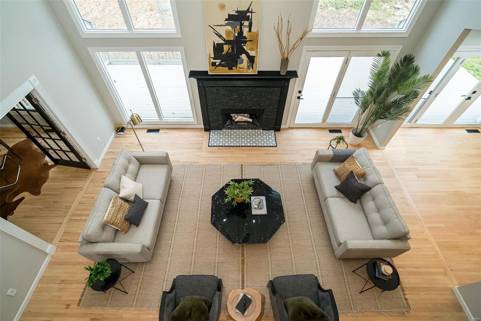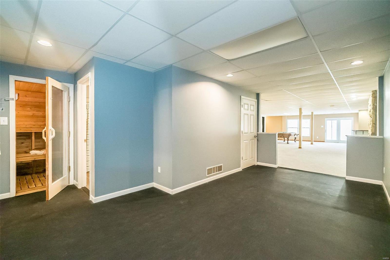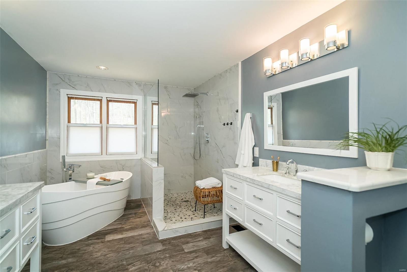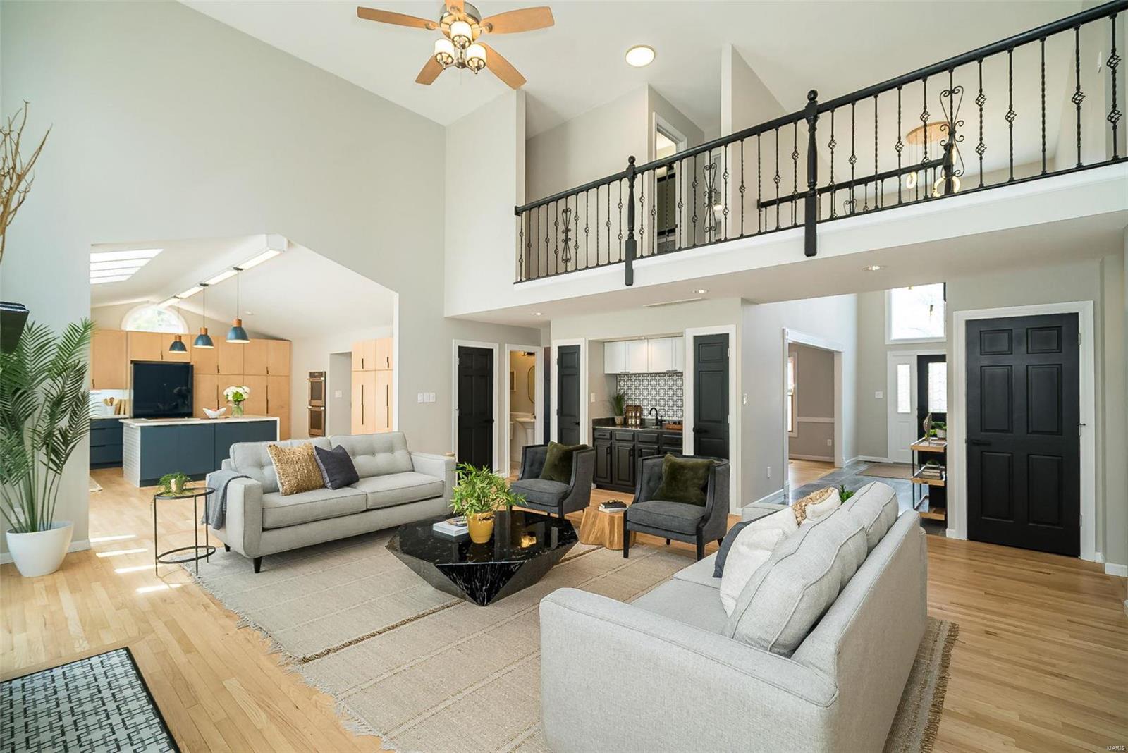 Classy. Modern. Chic! This hidden gem will lure you in with it's scenic picturesque views, soaring sundrenched spaces and spectacular renovations throughout! Dramatic two-story entry, dining room w/stylish accent wall, grand great room w/wall of windows, wet bar and focal fireplace. STUNNING kitchen w/luxe cabinetry, Calacatta Splendor quartz countertops w/waterfall side, fabulous island w/induction cooktop, double s/s ovens, Samsung Bespoke fridge and storage galore! Private office/study is adjacent to the tranquil primary suite featuring large walk-in closet, luxurious spa-like bath w/double vanities, corner soaking tub and deluxe shower. Head upstairs (note the side staircase!) to find (3) large bedrooms. (2) share a gorgeous jack-n-jill bath and the 3rd is private w/it's own full bath that is equally impressive. The massive lower level is a showstopper! Family room w/stunning stone fireplace, rec/game area, workout room, serene sauna and 4th full bath! Award winning Lindbergh SD!