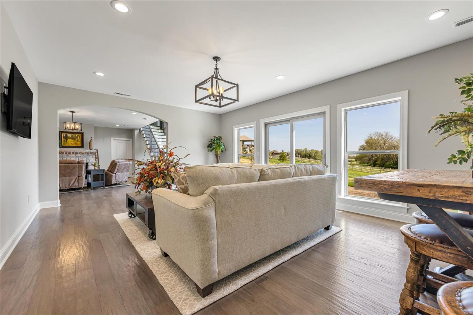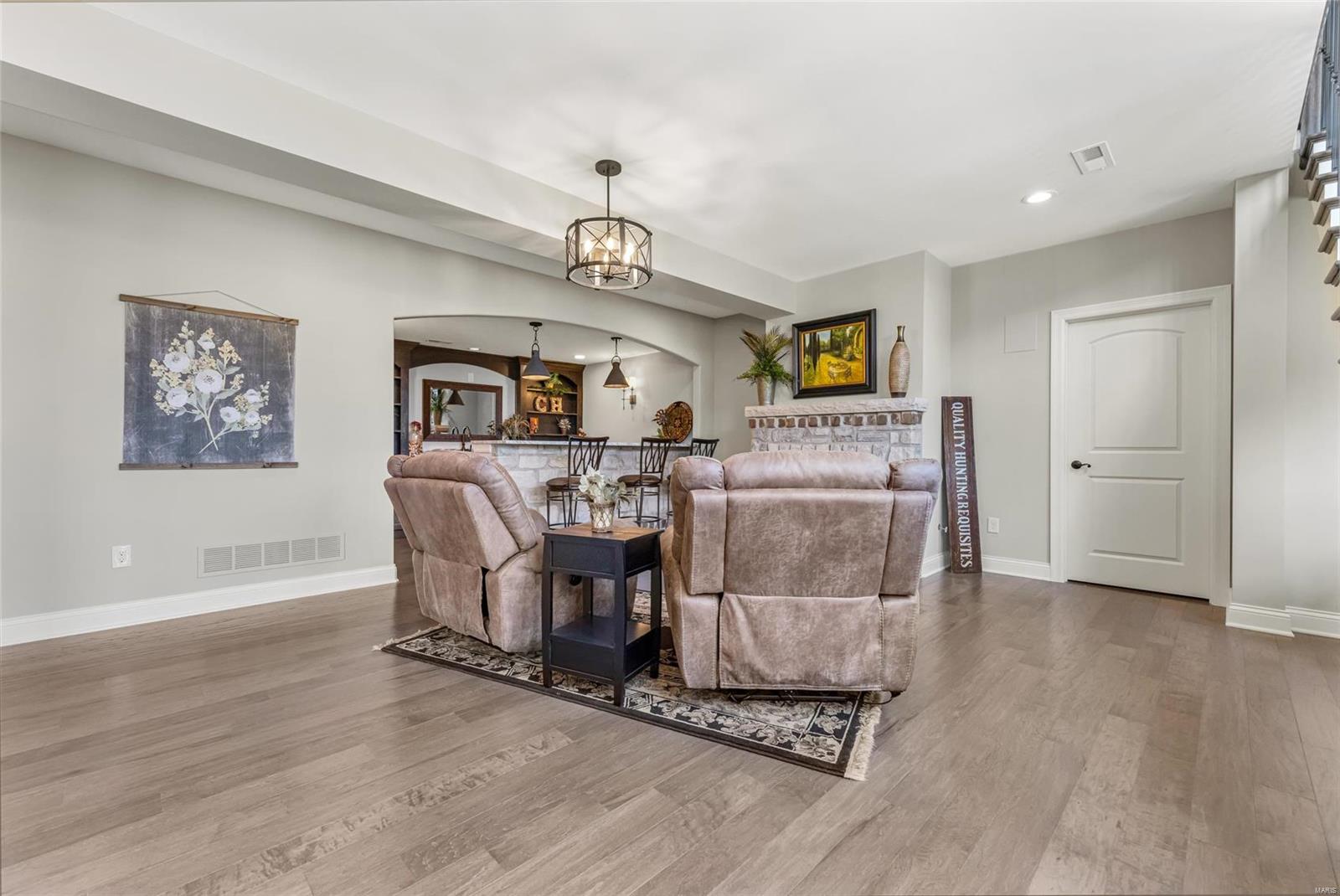 Brand New Construction from Cross Homes! Stunning atrium ranch on 3 acres farmhouse exterior w/stone & wood beams,4 car garage, aggregate walkway, porch & patio. The 9' main/11' ceilings in great room w/stone fireplace, gorgeous hardwood floors, stair railings with iron balusters, oversized baseboards & crown molding with arched doorways on the main floor make for a rich look. Gourmet kitchen has well lit breakfast room, elegant granite, custom cabinets, JennAire appliances and center island for great entertaining space and family living. The master bedroom suite has his and hers granite counters, large walk in closet, upgraded carpet, high end fixtures and beautiful ceramic tile. The main floor has a mudroom, laundry room and office. The lower level will be a perfect space to relax w/another stone fireplace, full bar, living area and 3rd bedroom. The wooded lot is peaceful and will beckon you to spend time outside on the deck. The luxury is evident and the quality cannot be matched.