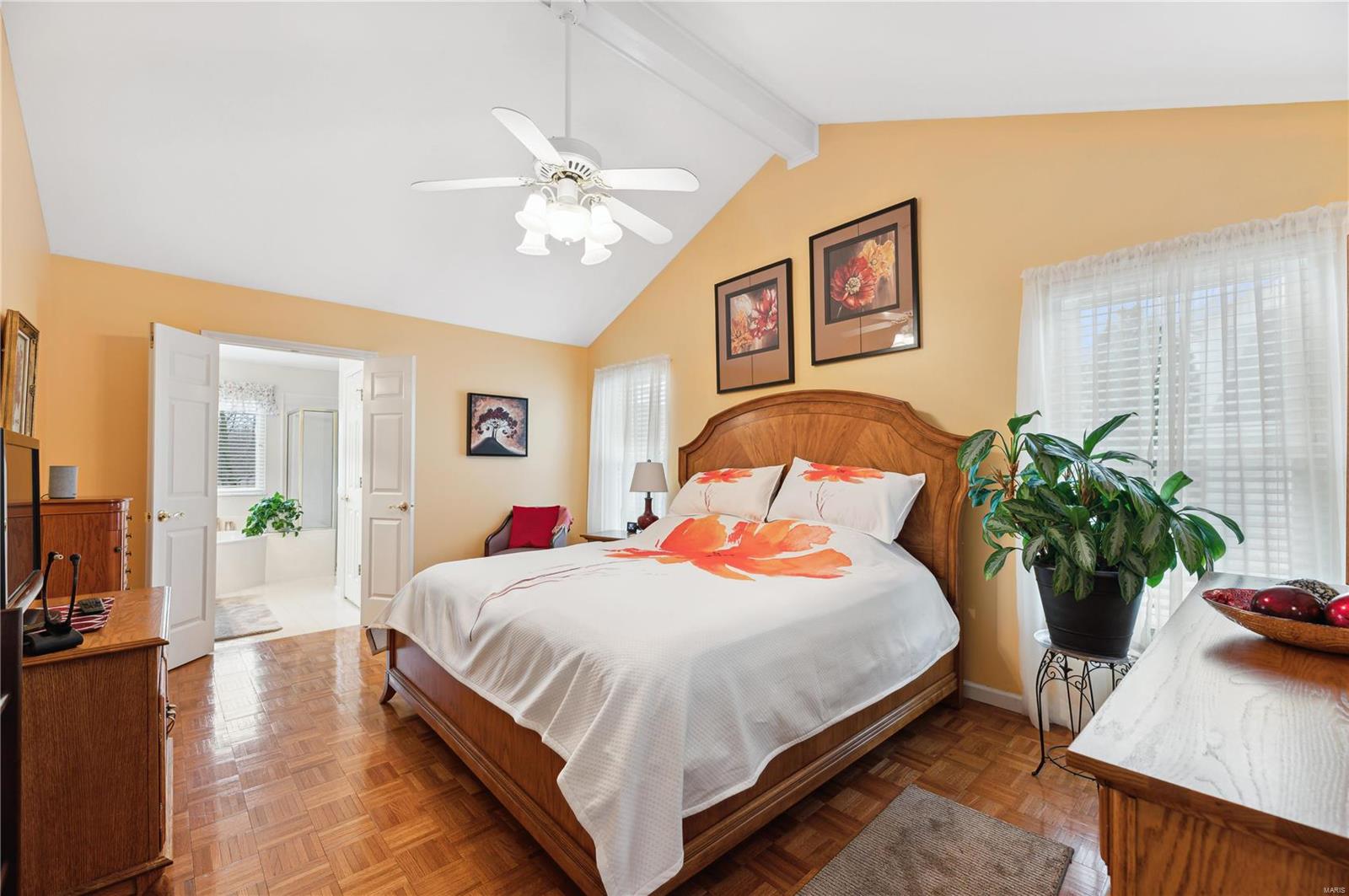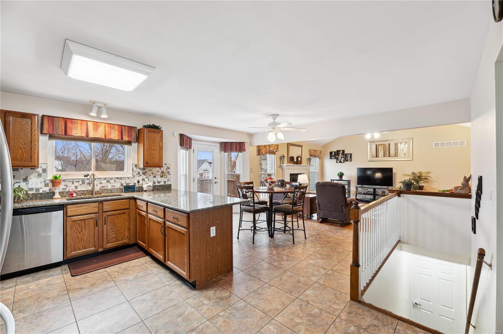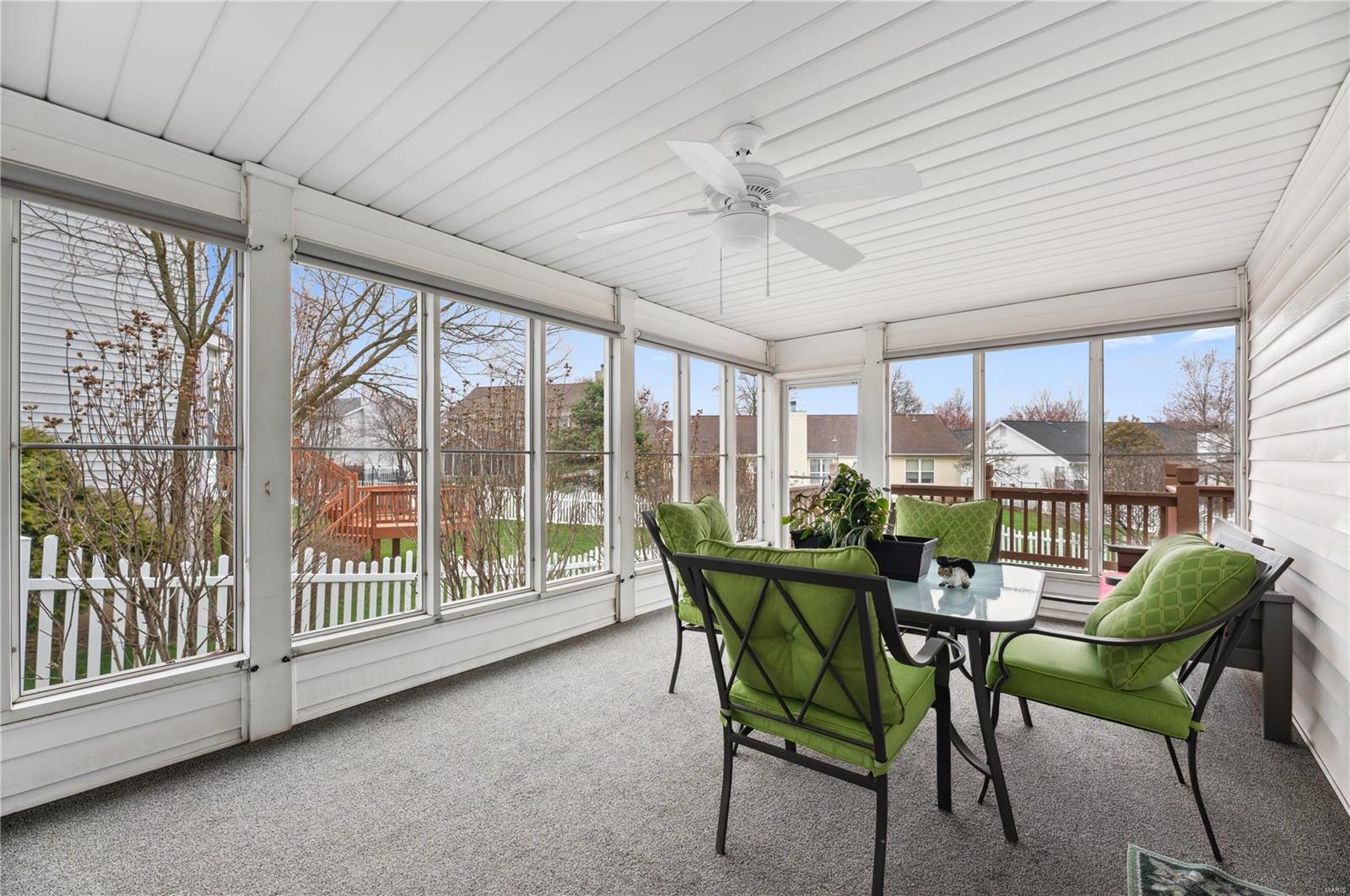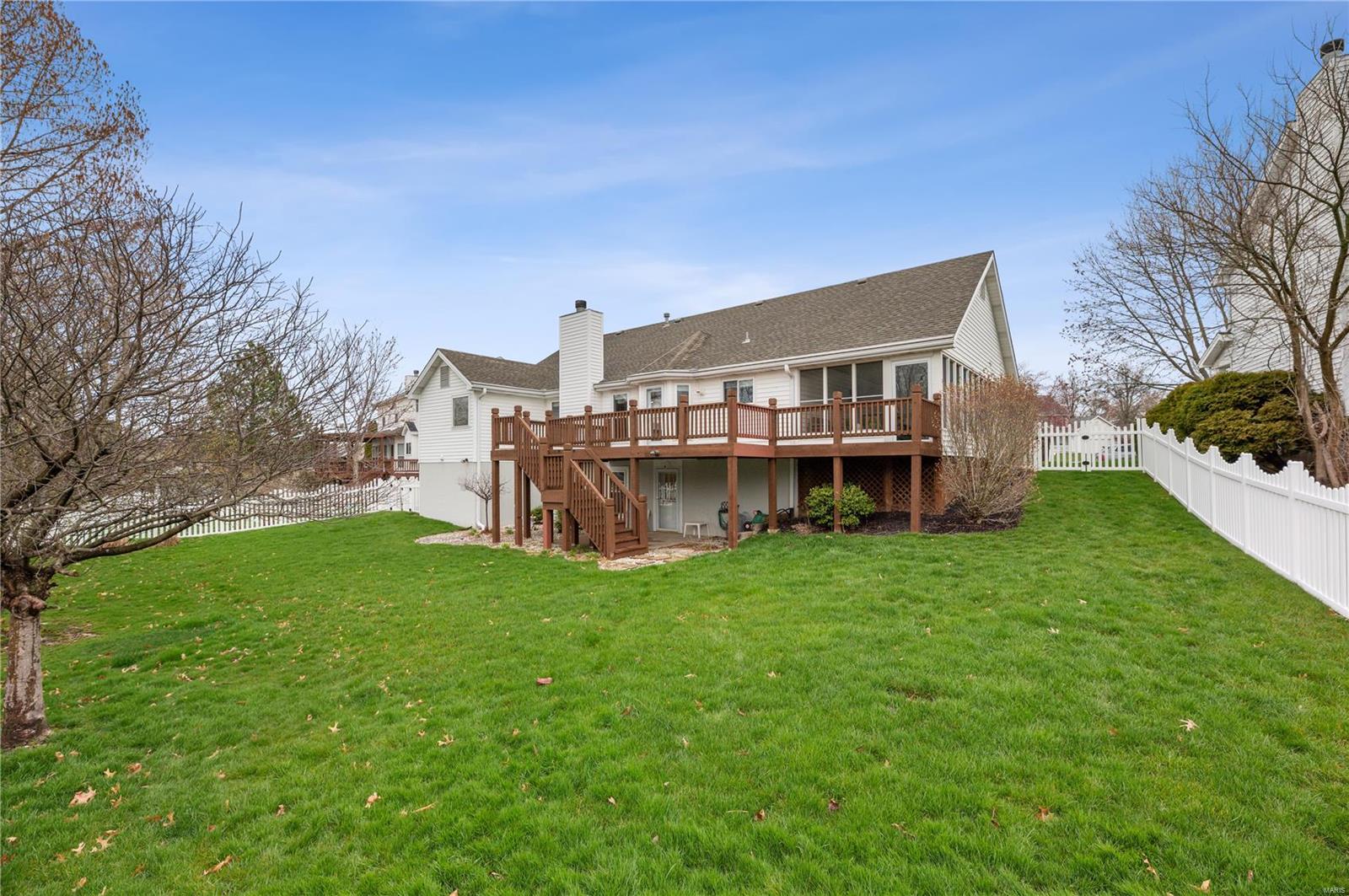 Pride of ownership in beautifully updated Huntleigh Estates ranch! Bright,open floorplan,cath. ceiling greatrm w/gas-starter fplc and wood floor. Kitchen w/granite ccountertops, glass tile backsplash, upd.appliances, cabinets w/pull-out shelves. Breakfastrm walks out to deck. Bay window and wood floor in diningrm. Spacious bedrooms feature gleaming parquet floors, ceiling fans. Mastersuite features cath. ceiling, upd. bath, double sinks, quartz countertop, new faucets, walk-in closet, sep. tub/shower, remote controlled blinds above tub! Hall bath upd. w/walk-in shower. Laundryrm completes main level! Lower level features spacious family/recrm area w/built in cabinets and storage bench, half bath, Pergo floor and walk out to patio. Plenty of storage as well! Enjoy 3 seasons in the scr. porch off kitchen, large deck with steps to beautiful white vinyl fenced backyard! Also includes sprinkler system, newer windows, upd. roof, gutters and gutter helmets, water heater, furnace.