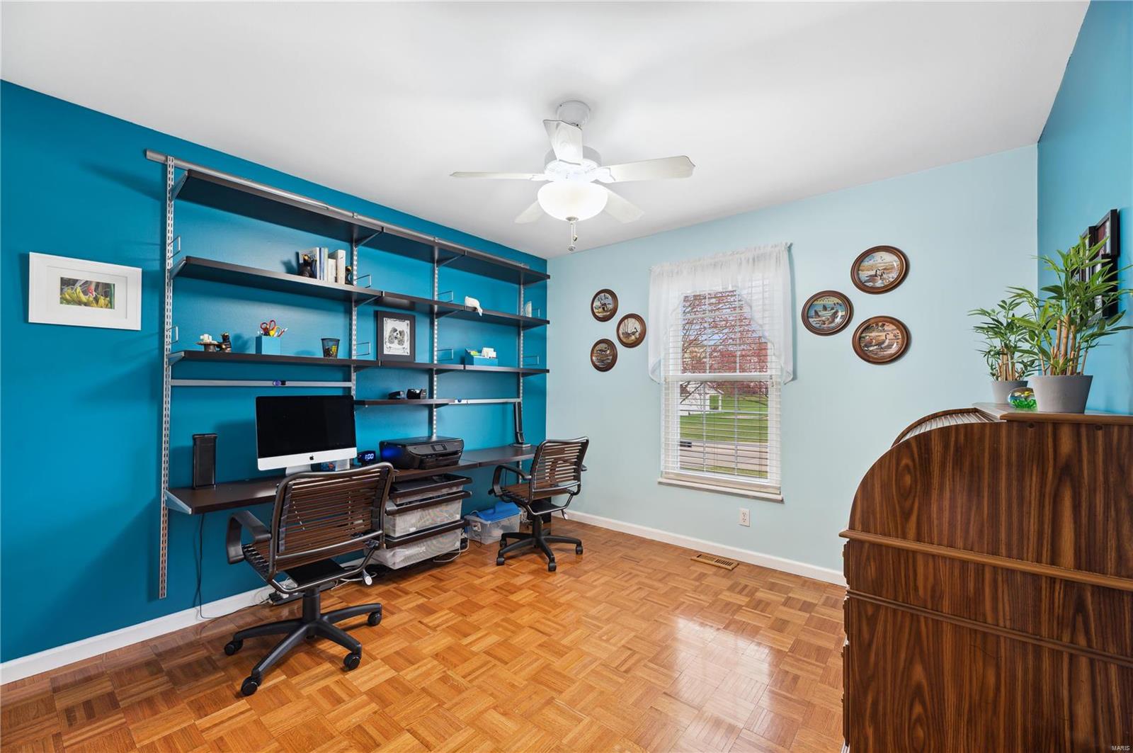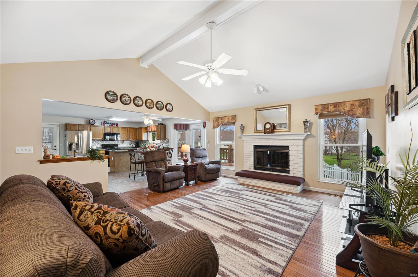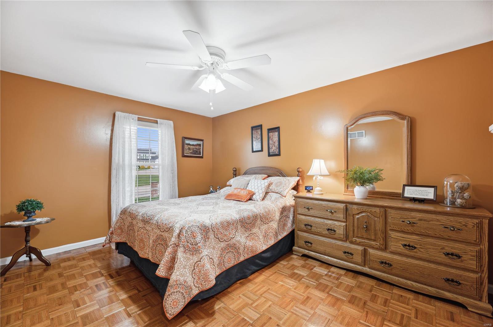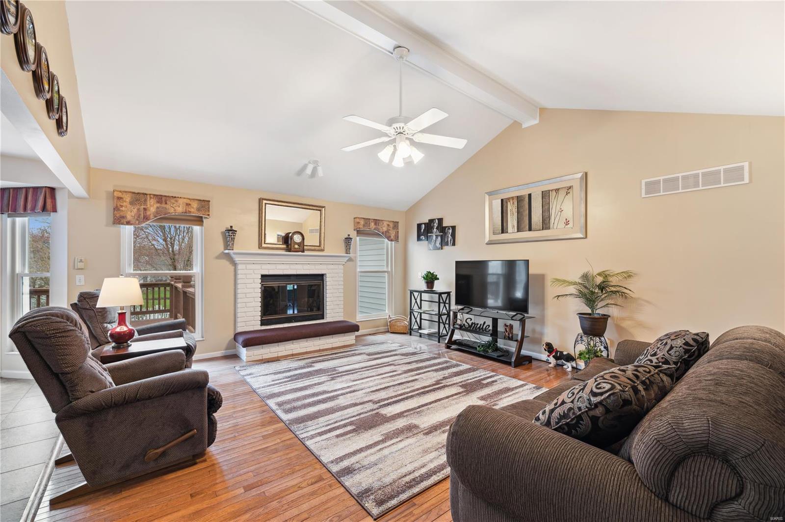 Pride of ownership in beautifully updated Huntleigh Estates ranch! Bright,open floorplan,cath. ceiling greatrm w/gas-starter fplc and wood floor. Kitchen w/granite ccountertops, glass tile backsplash, upd.appliances, cabinets w/pull-out shelves. Breakfastrm walks out to deck. Bay window and wood floor in diningrm. Spacious bedrooms feature gleaming parquet floors, ceiling fans. Mastersuite features cath. ceiling, upd. bath, double sinks, quartz countertop, new faucets, walk-in closet, sep. tub/shower, remote controlled blinds above tub! Hall bath upd. w/walk-in shower. Laundryrm completes main level! Lower level features spacious family/recrm area w/built in cabinets and storage bench, half bath, Pergo floor and walk out to patio. Plenty of storage as well! Enjoy 3 seasons in the scr. porch off kitchen, large deck with steps to beautiful white vinyl fenced backyard! Also includes sprinkler system, newer windows, upd. roof, gutters and gutter helmets, water heater, furnace.