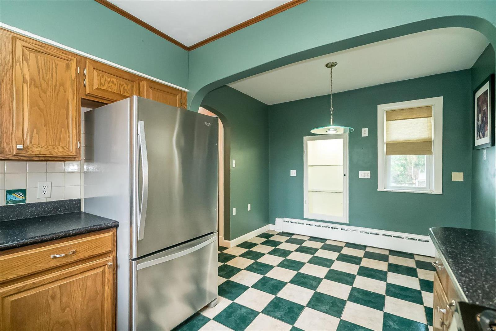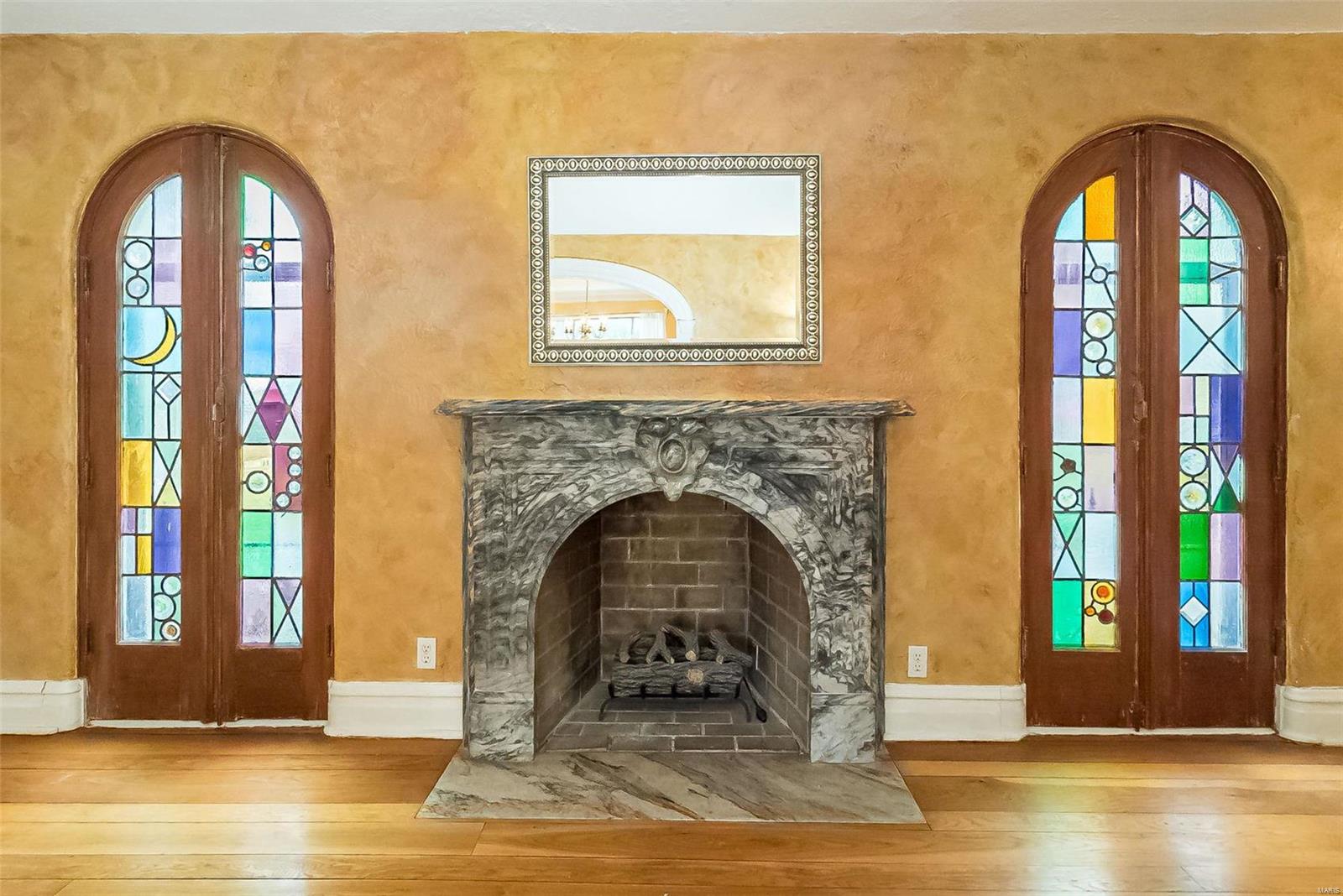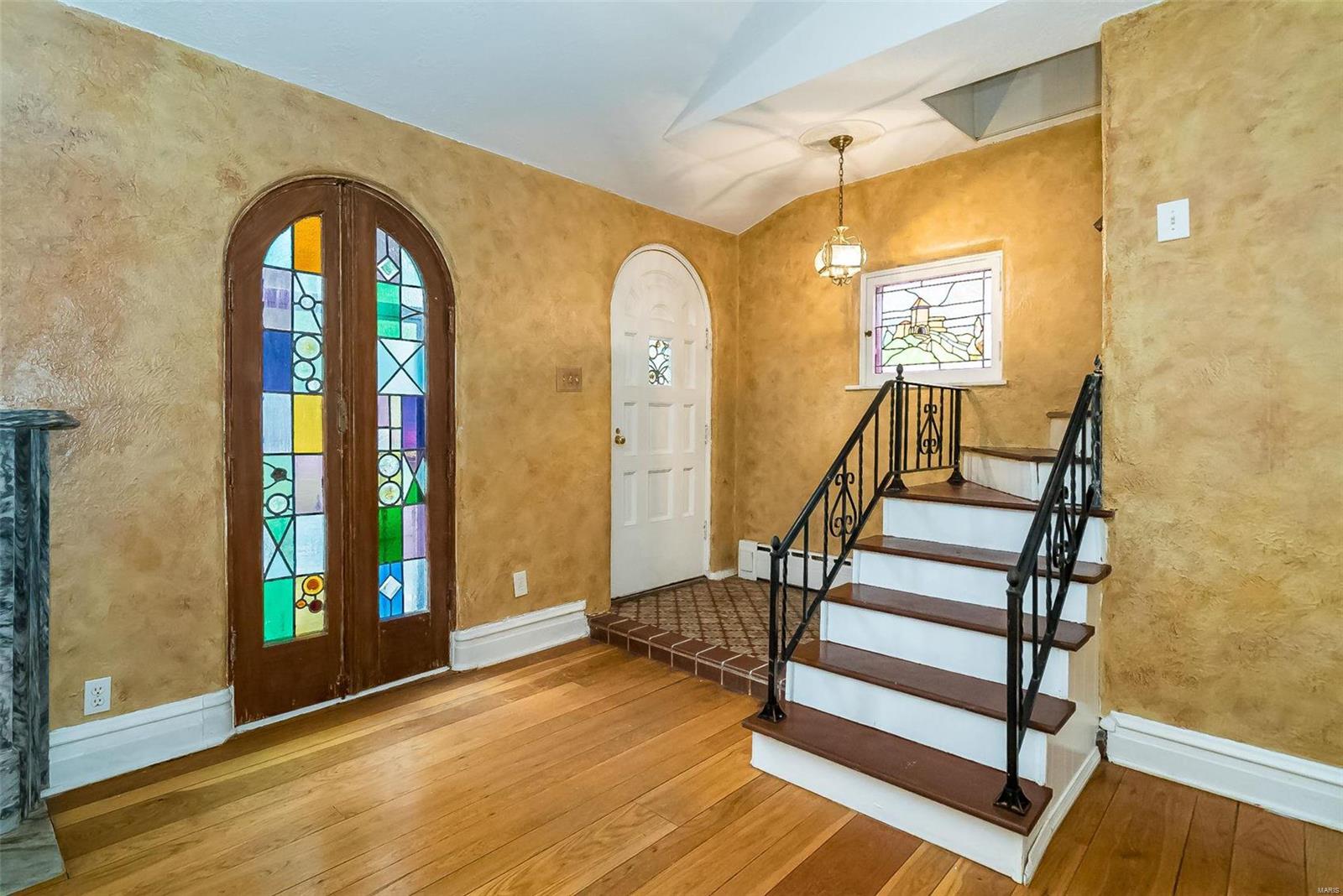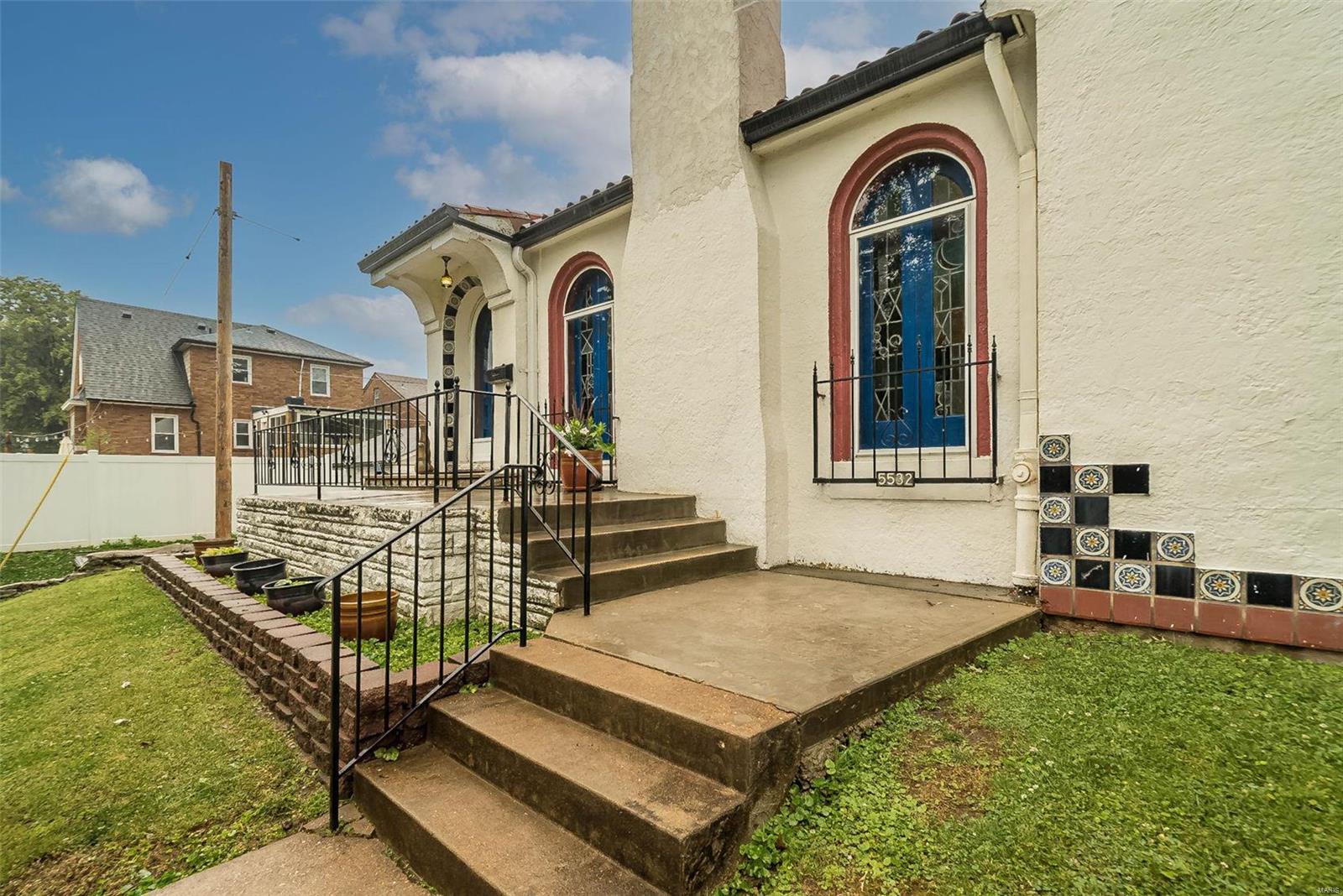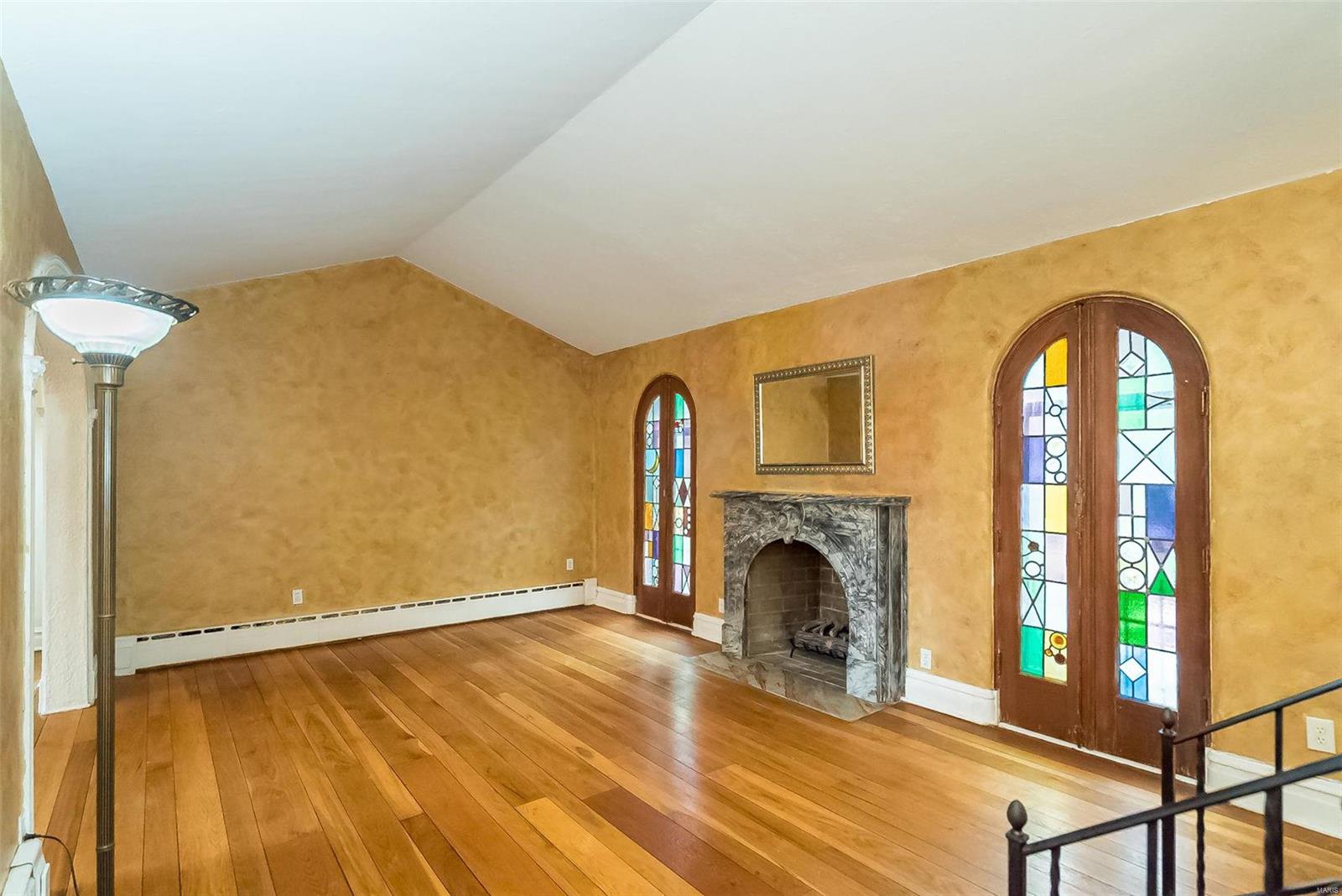 You will fall in love with this beautiful home. Enter through the beautifully arched door & be greeted with a classic open staircase, a spacious living room with its vaulted ceiling & a one-of-a-kind marble fireplace. You will also love the original Art Deco stained glass French doors. The dining room has an arched entry with original millwork. Perfect for entertaining. The kitchen has kept its original charm with oak cabinets & an eat-in breakfast area. Two spacious bedrooms & a full bath with heated flooring, complete the main level. Head upstairs to the bonus loft/office space with a decorative balcony & 3rd bedroom with custom cedar-lined closets along one wall. The lower level has a full bath, Rec room, office & laundry area. Enjoy your large private flat yard with a newer 6-foot composite fence.