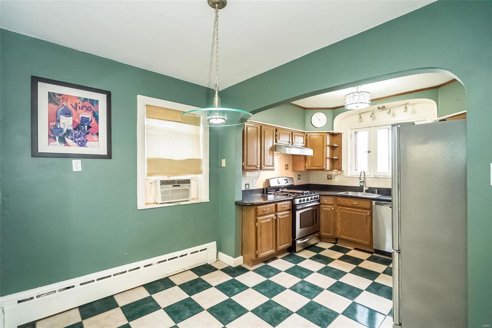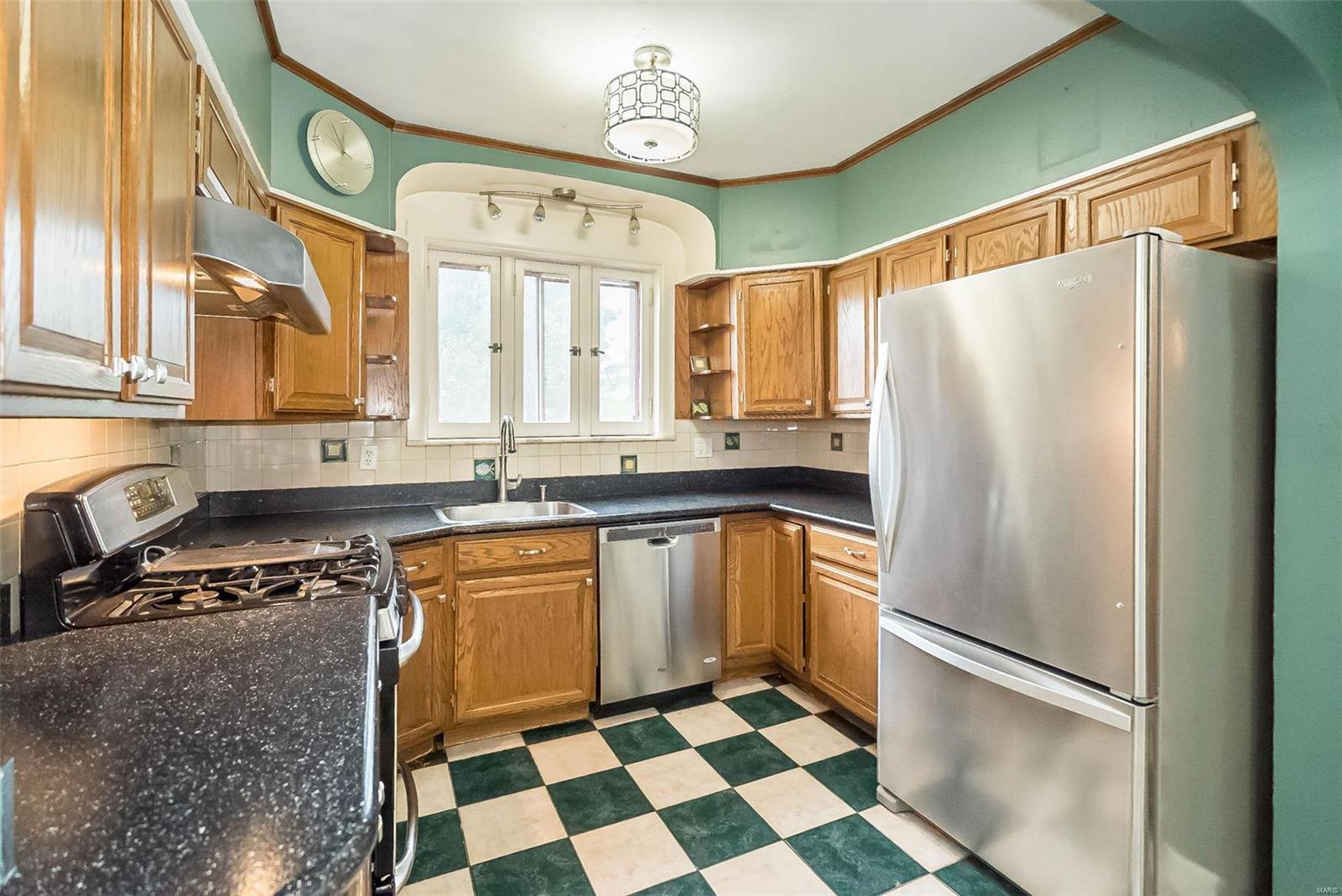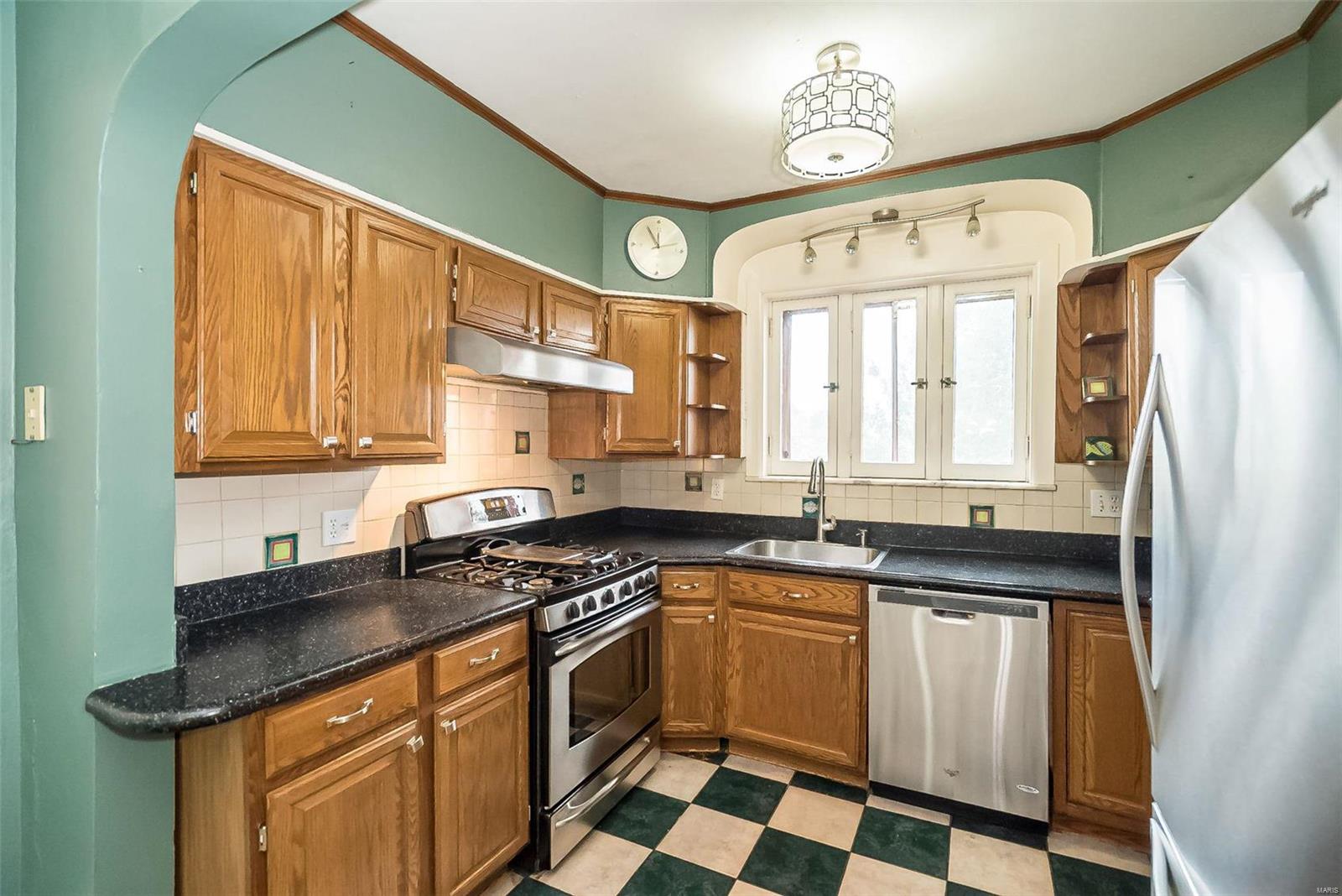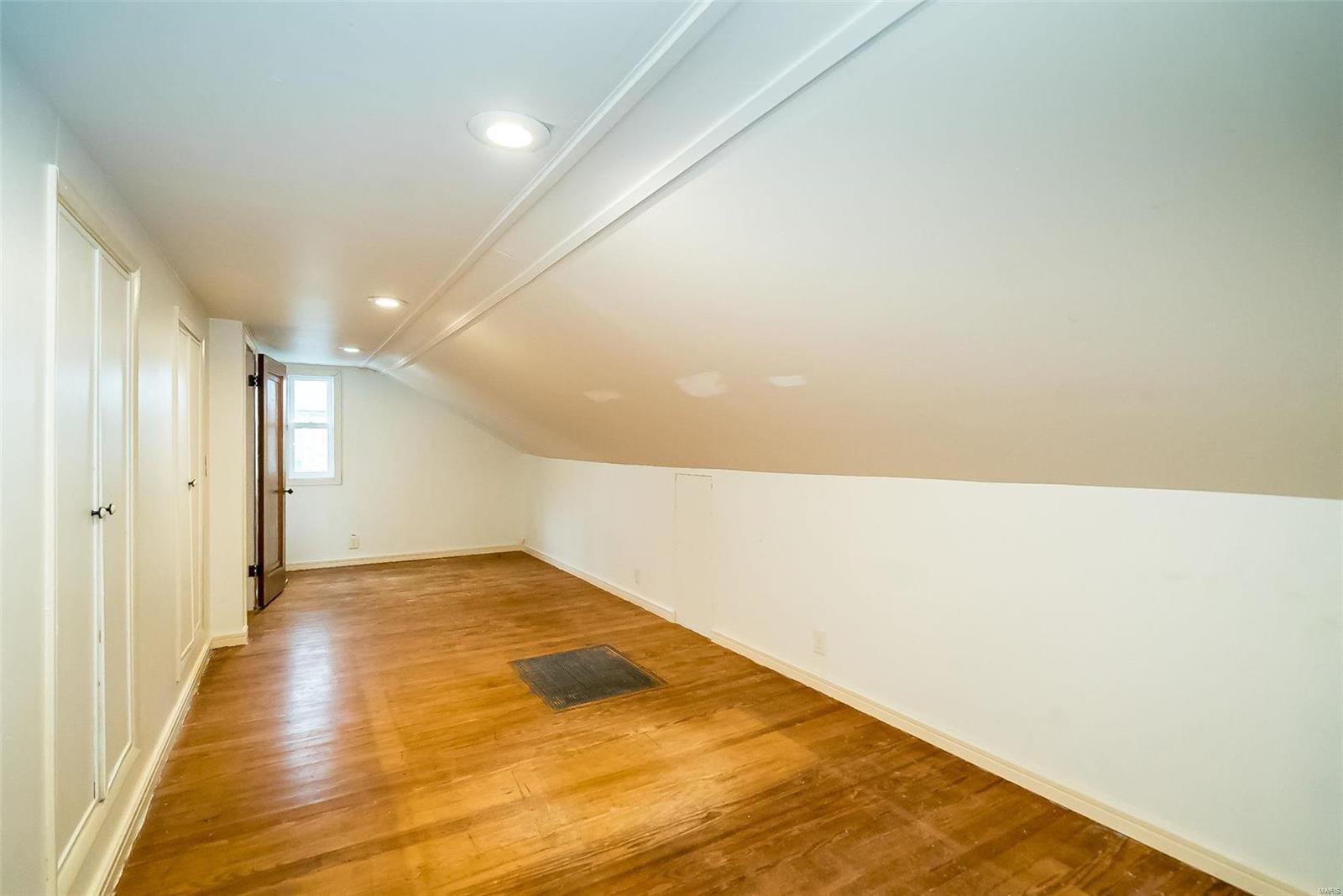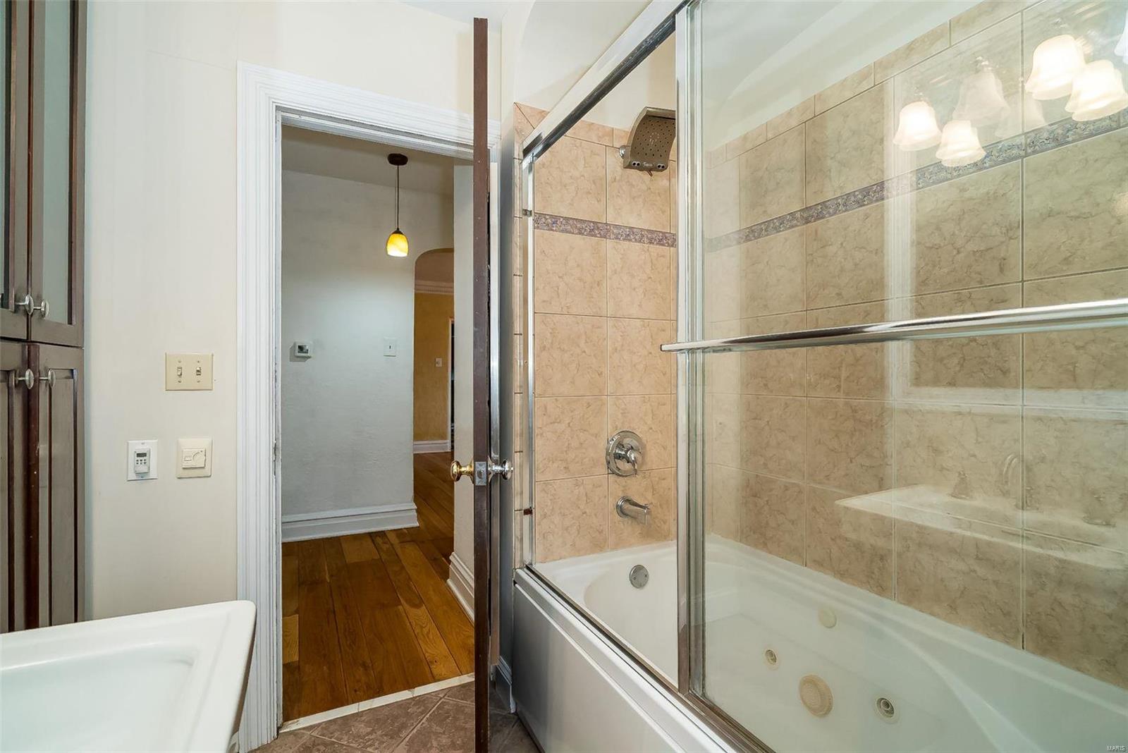 You will fall in love with this beautiful home. Enter through the beautifully arched door & be greeted with a classic open staircase, a spacious living room with its vaulted ceiling & a one-of-a-kind marble fireplace. You will also love the original Art Deco stained glass French doors. The dining room has an arched entry with original millwork. Perfect for entertaining. The kitchen has kept its original charm with oak cabinets & an eat-in breakfast area. Two spacious bedrooms & a full bath with heated flooring, complete the main level. Head upstairs to the bonus loft/office space with a decorative balcony & 3rd bedroom with custom cedar-lined closets along one wall. The lower level has a full bath, Rec room, office & laundry area. Enjoy your large private flat yard with a newer 6-foot composite fence.