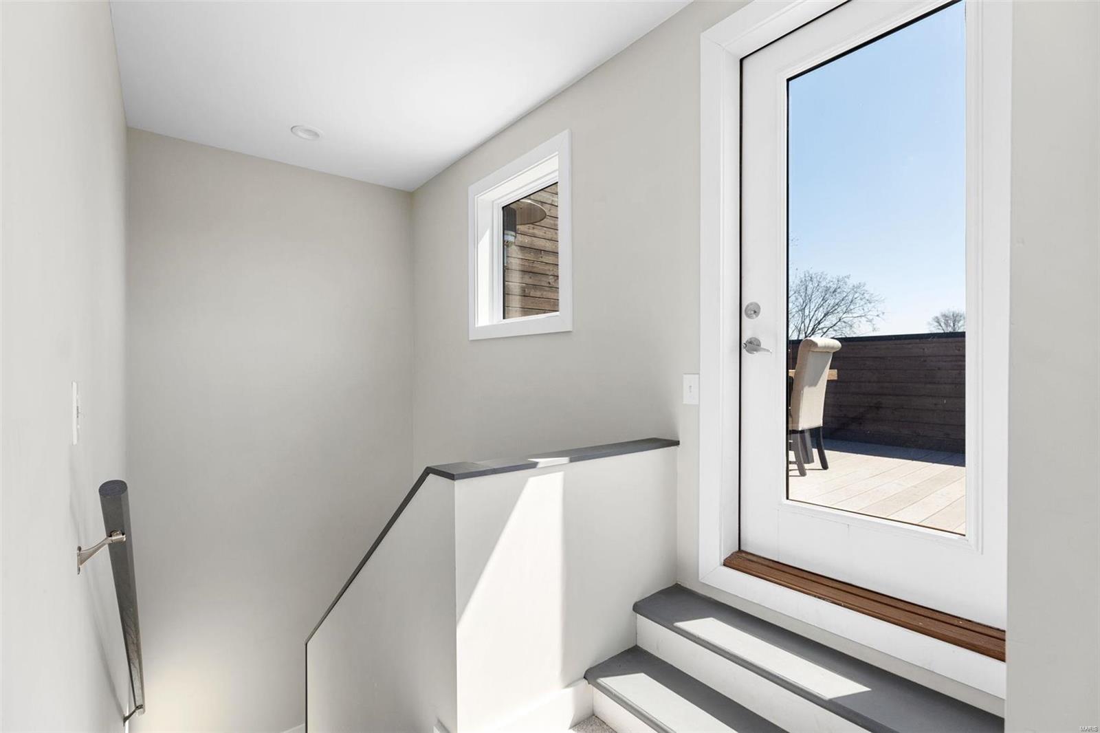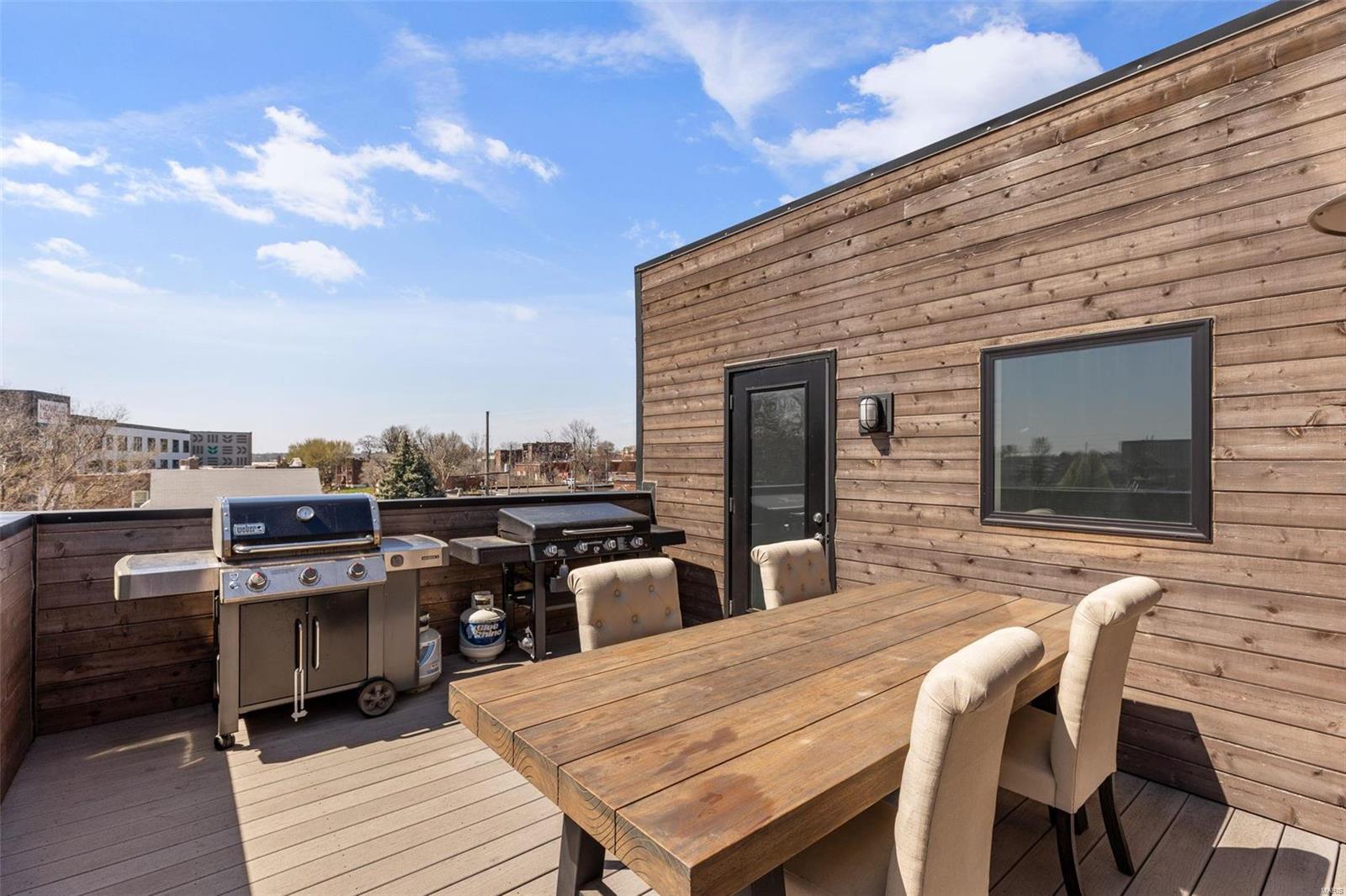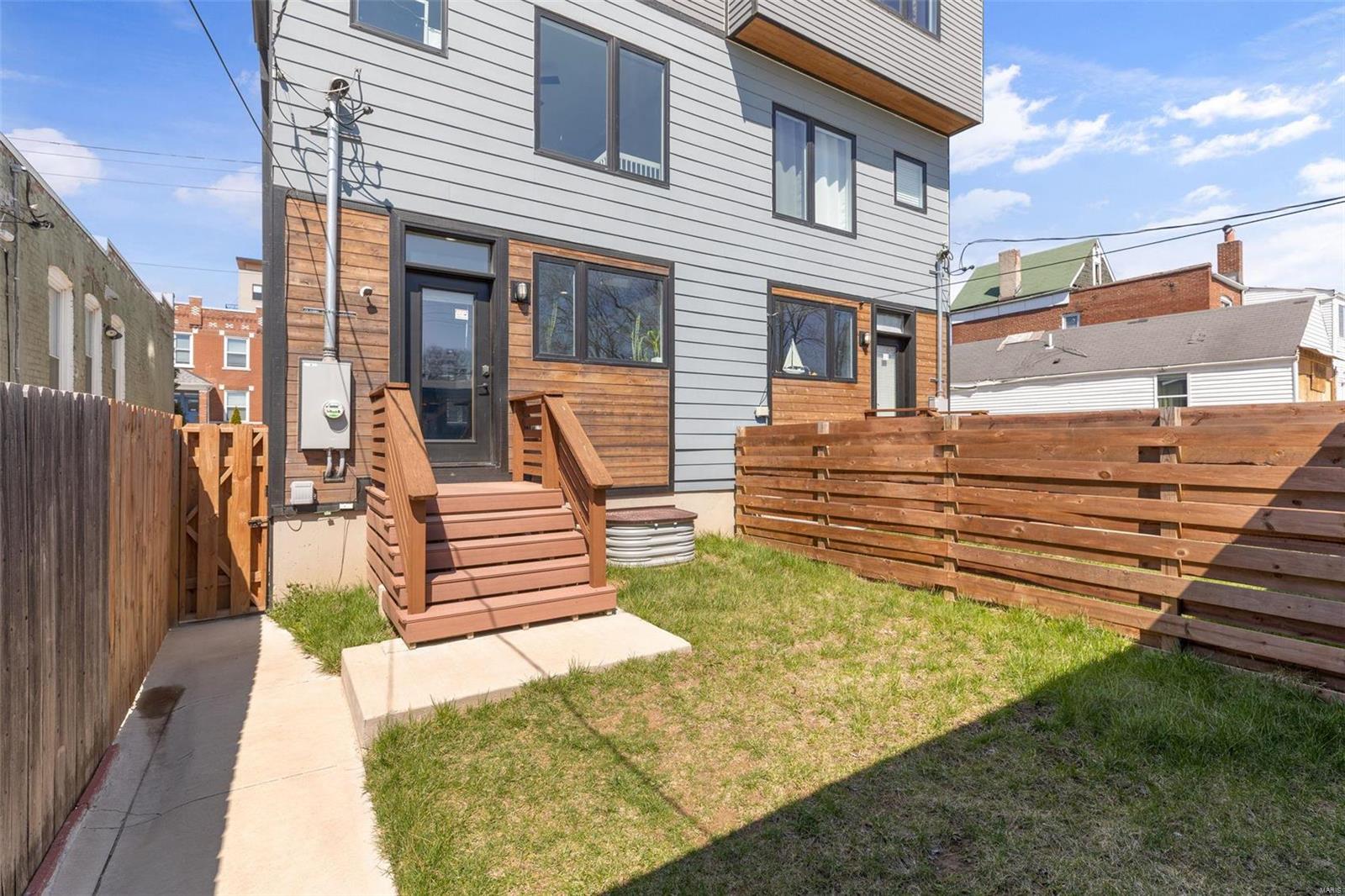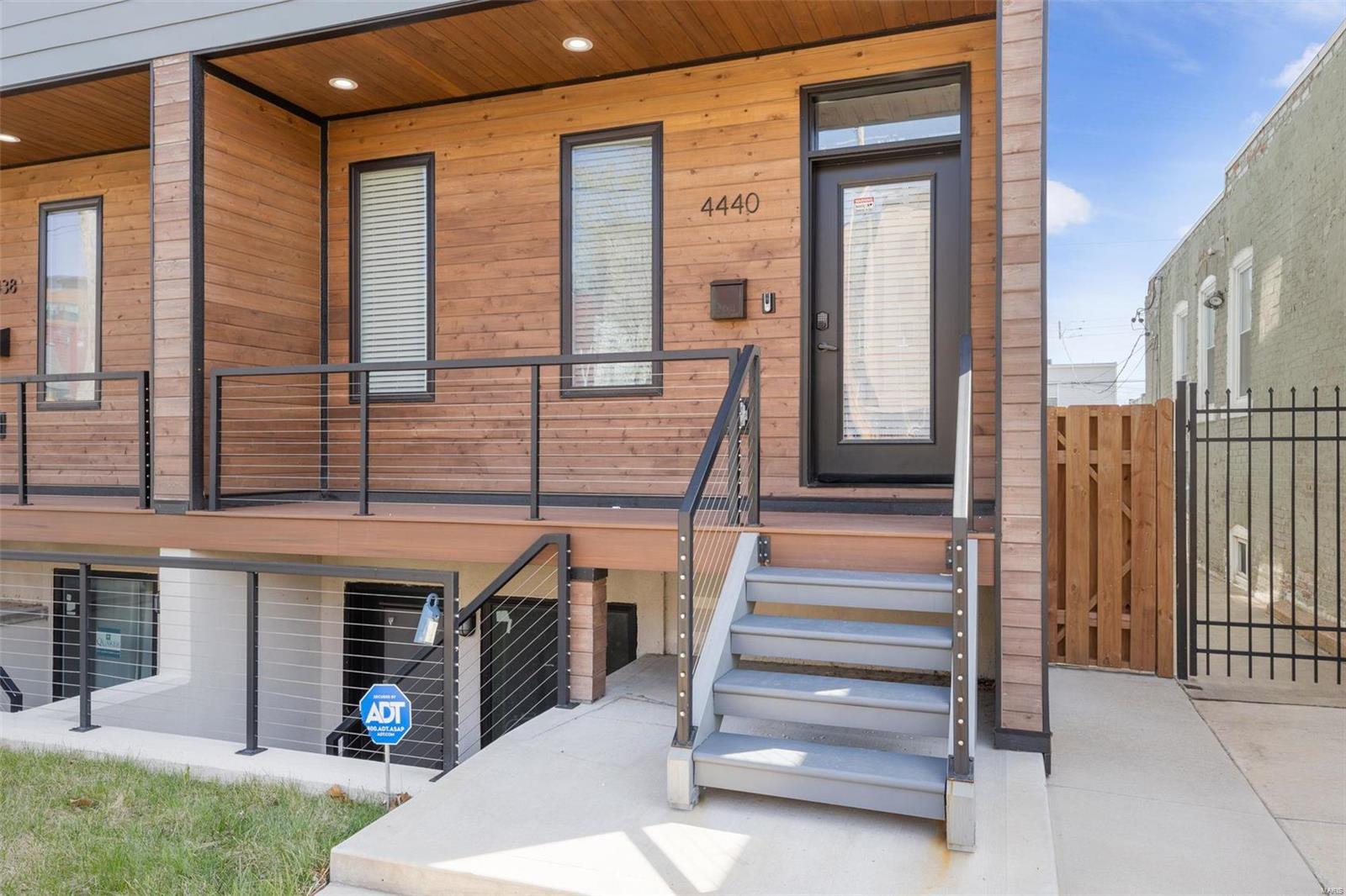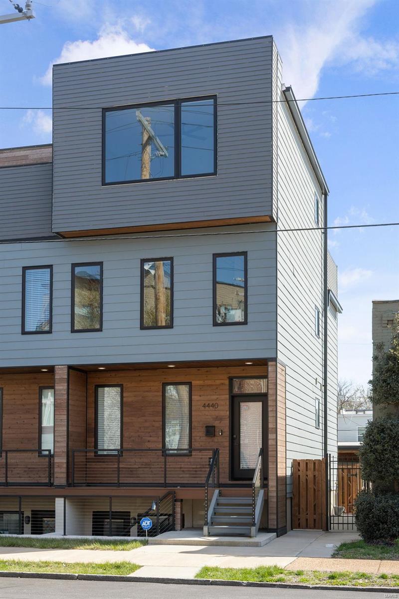 Modern townhome in the fast-growing Grove neighborhood without the wait! Within Washington University "Live Near Your Work" neighborhood. Walk or bike to Forest Park, CORTEX, & the hospitals. Just steps from the vibrant heart of the Grove strip, but located on a quiet cul-de-sac. Featuring open concept living and dining combo with chic kitchen & natural light. 2nd fl has large rooms w/ divided floorplan, full bathroom, and convenience of laundry area. 3rd floor offers a spacious primary bedroom and luxe en suite amenities. BONUS 3rd floor exclusive & private Rooftop Terrace w/ plenty of entertaining space and city views. The unfinished basement has all the rough-ins to turn it into a one-bedroom rental, home office or Airbnb--with a separate front entrance. Near-maintenance-free yard leads to covered, private, two-car parking with alley access that has been recently paved. This is one side of a two-unit building (separate owners / No HOA). It is the townhouse on the right side.