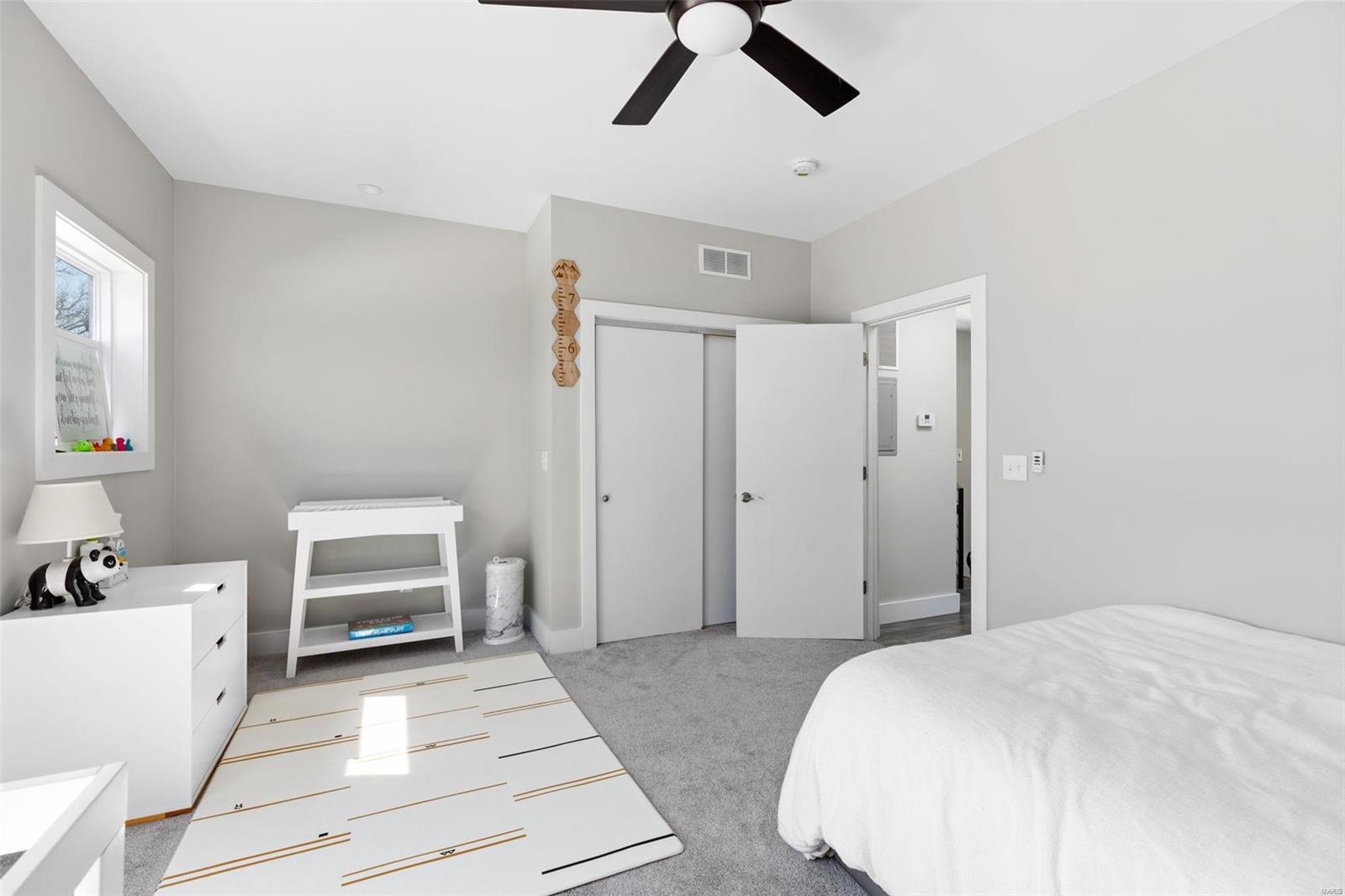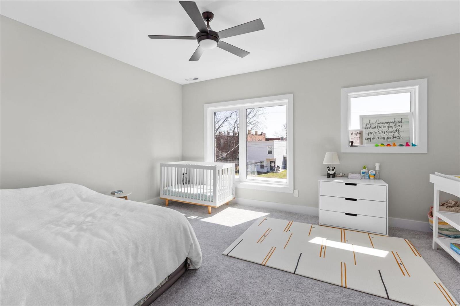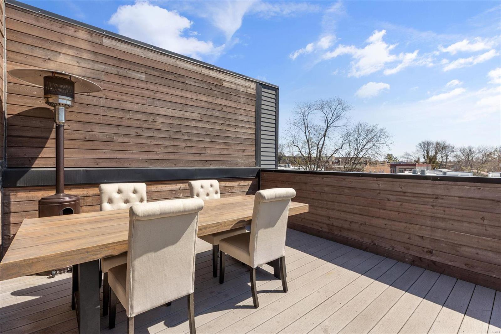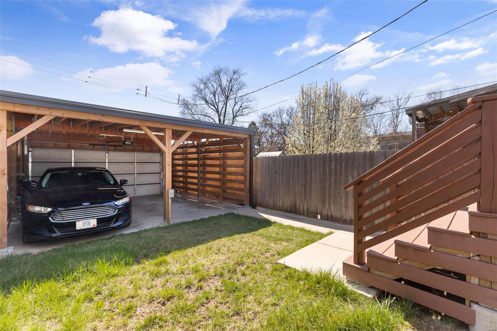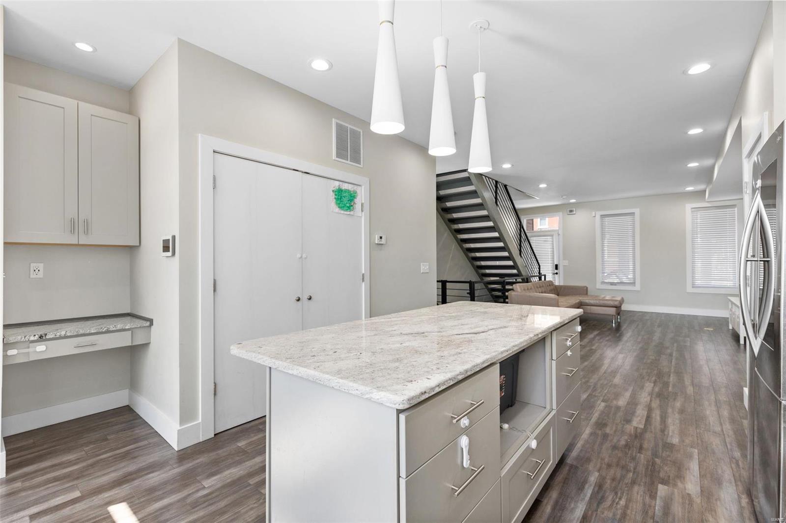 Modern townhome in the fast-growing Grove neighborhood without the wait! Within Washington University "Live Near Your Work" neighborhood. Walk or bike to Forest Park, CORTEX, & the hospitals. Just steps from the vibrant heart of the Grove strip, but located on a quiet cul-de-sac. Featuring open concept living and dining combo with chic kitchen & natural light. 2nd fl has large rooms w/ divided floorplan, full bathroom, and convenience of laundry area. 3rd floor offers a spacious primary bedroom and luxe en suite amenities. BONUS 3rd floor exclusive & private Rooftop Terrace w/ plenty of entertaining space and city views. The unfinished basement has all the rough-ins to turn it into a one-bedroom rental, home office or Airbnb--with a separate front entrance. Near-maintenance-free yard leads to covered, private, two-car parking with alley access that has been recently paved. This is one side of a two-unit building (separate owners / No HOA). It is the townhouse on the right side.
