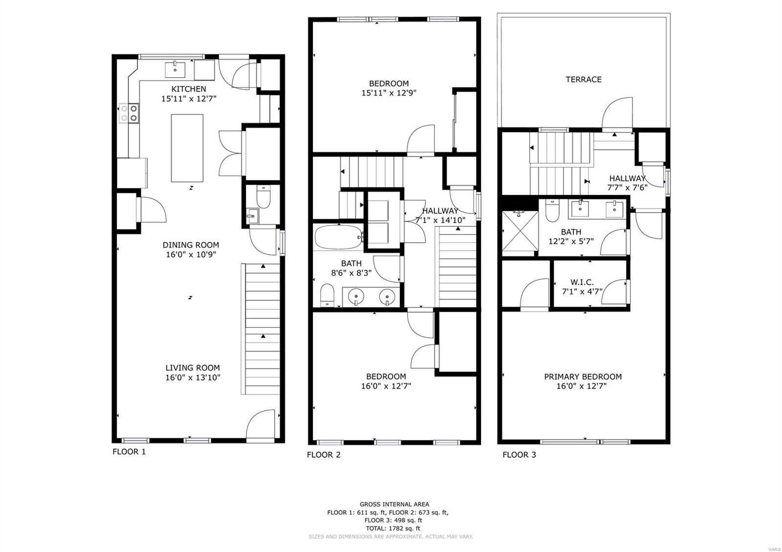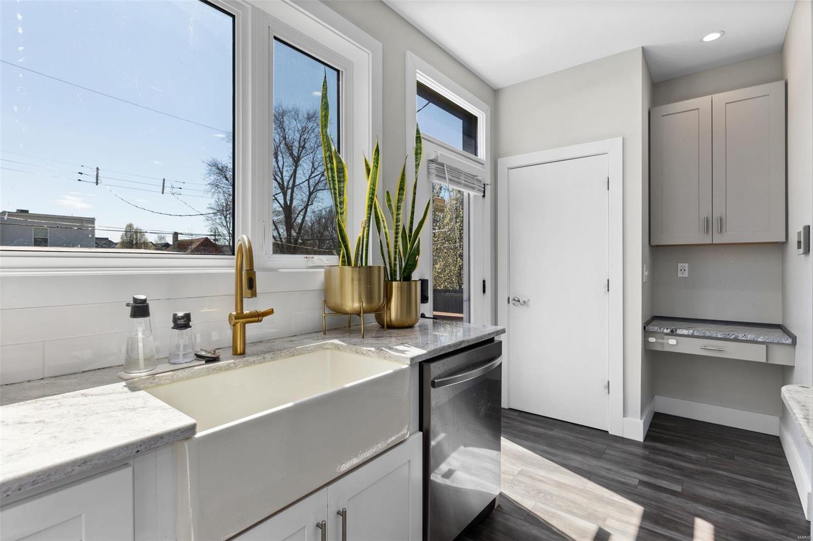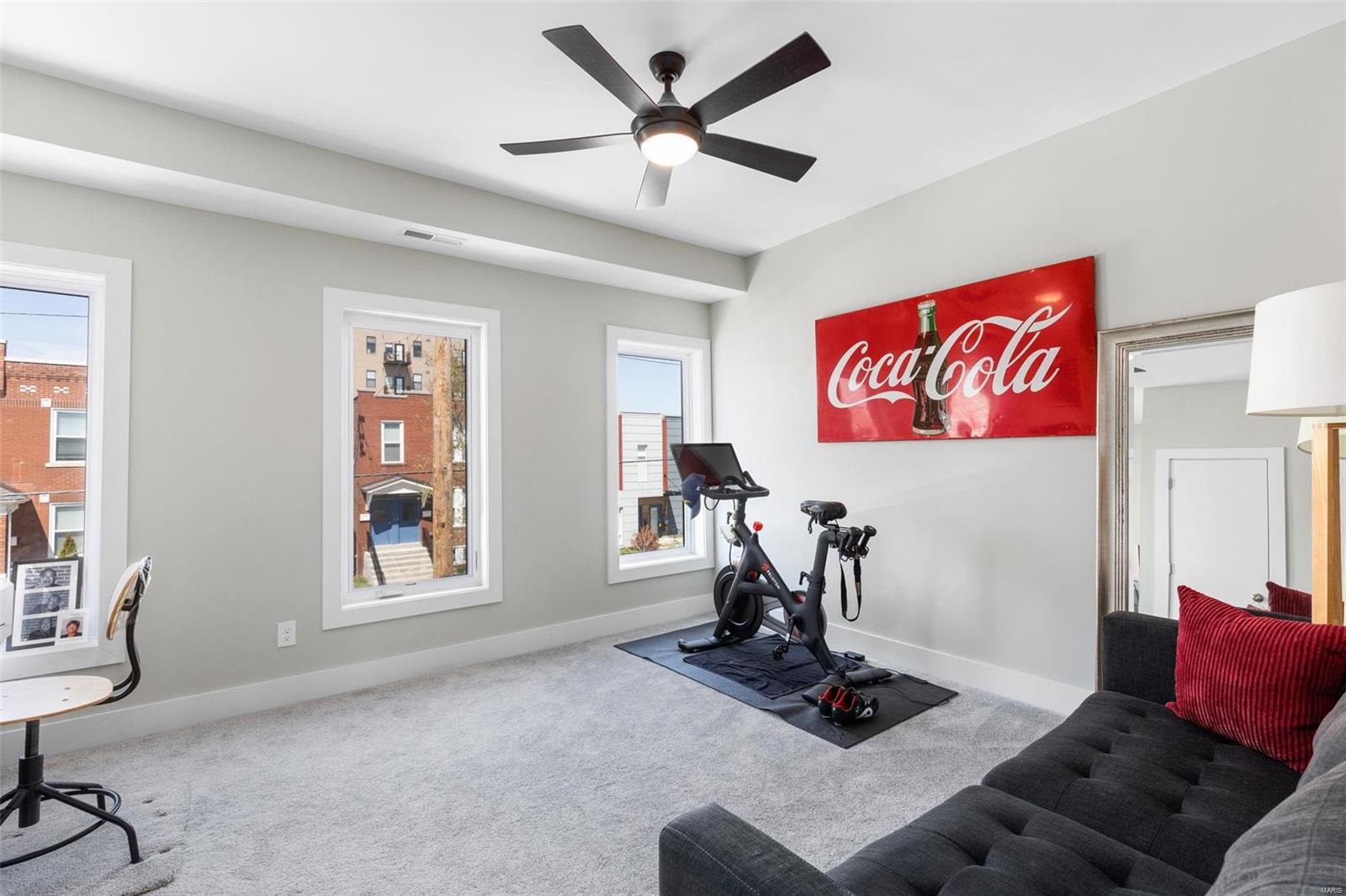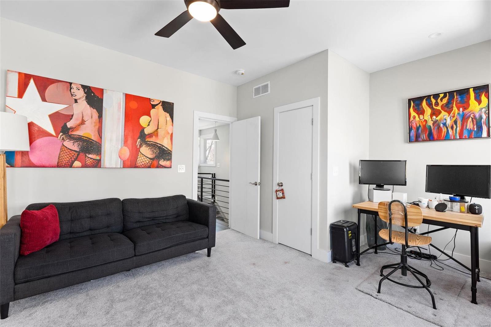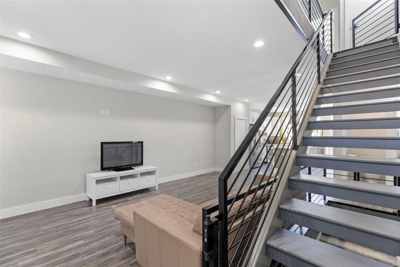 Modern townhome in the fast-growing Grove neighborhood without the wait! Within Washington University "Live Near Your Work" neighborhood. Walk or bike to Forest Park, CORTEX, & the hospitals. Just steps from the vibrant heart of the Grove strip, but located on a quiet cul-de-sac. Featuring open concept living and dining combo with chic kitchen & natural light. 2nd fl has large rooms w/ divided floorplan, full bathroom, and convenience of laundry area. 3rd floor offers a spacious primary bedroom and luxe en suite amenities. BONUS 3rd floor exclusive & private Rooftop Terrace w/ plenty of entertaining space and city views. The unfinished basement has all the rough-ins to turn it into a one-bedroom rental, home office or Airbnb--with a separate front entrance. Near-maintenance-free yard leads to covered, private, two-car parking with alley access that has been recently paved. This is one side of a two-unit building (separate owners / No HOA). It is the townhouse on the right side.