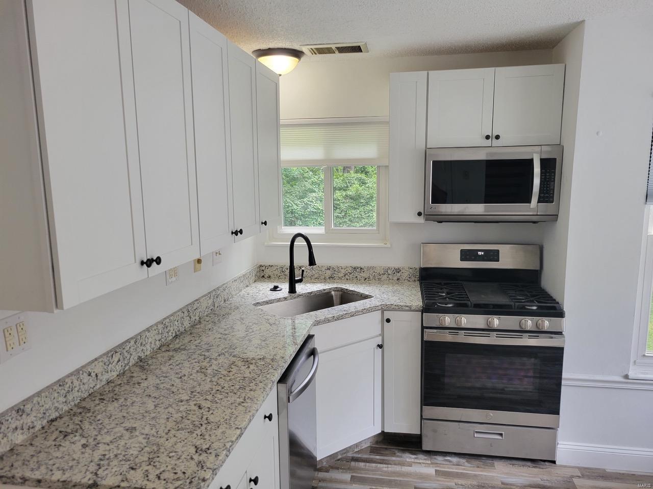 Beautiful totally remodeled home in Parkway school district. This stunning remodeled home is located in a park like setting with nearly 2000 sq ft of living finished living space. The roof has just been replaced with architectural shingles, anew trex deck with vinyl handrails, all three floors have luxury vinyl plank flooring throughout. The kitchen boosts brand-new stainless-steel appliances, granite and new white cabinets. Both bathrooms have been updated with new vanity, faucets, shower and tub. The family room/living room has a floor to ceiling fireplace that is overlooked by the loft off the second floor bedrooms. Six panel doors and new 5inch baseboard were installed in all rooms. The partially finished basemen has a walk out and is where you will find the 4th bedroom. This home backs up to woods for a private setting. This is a must see!!