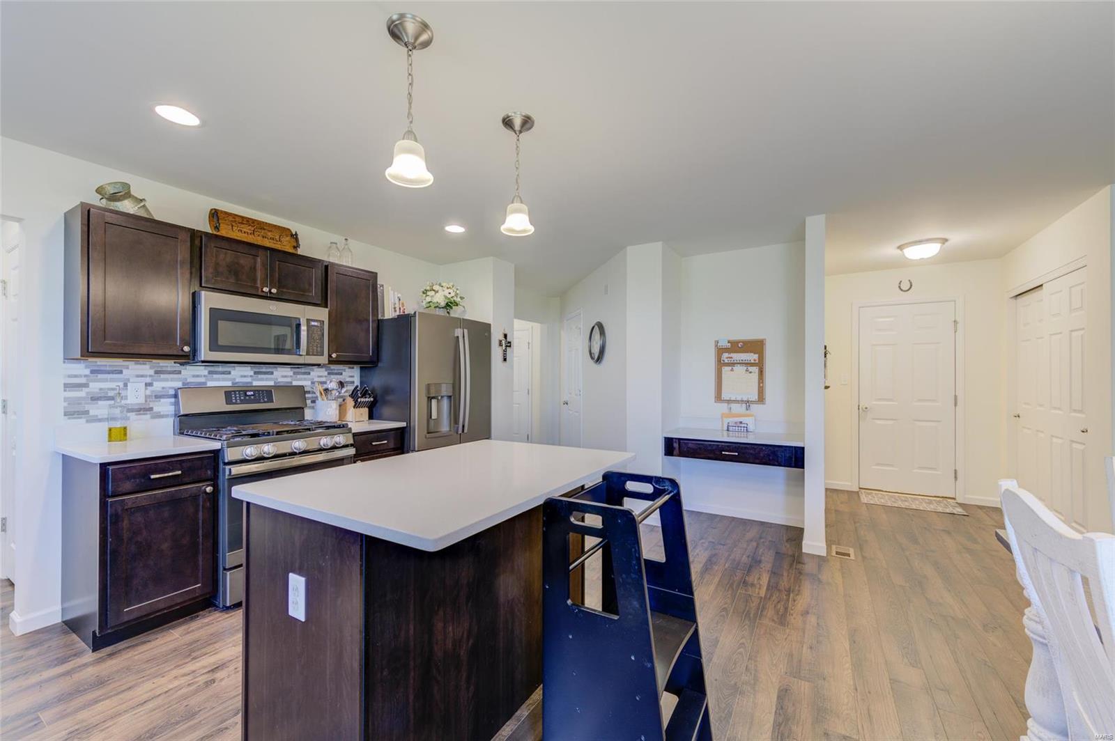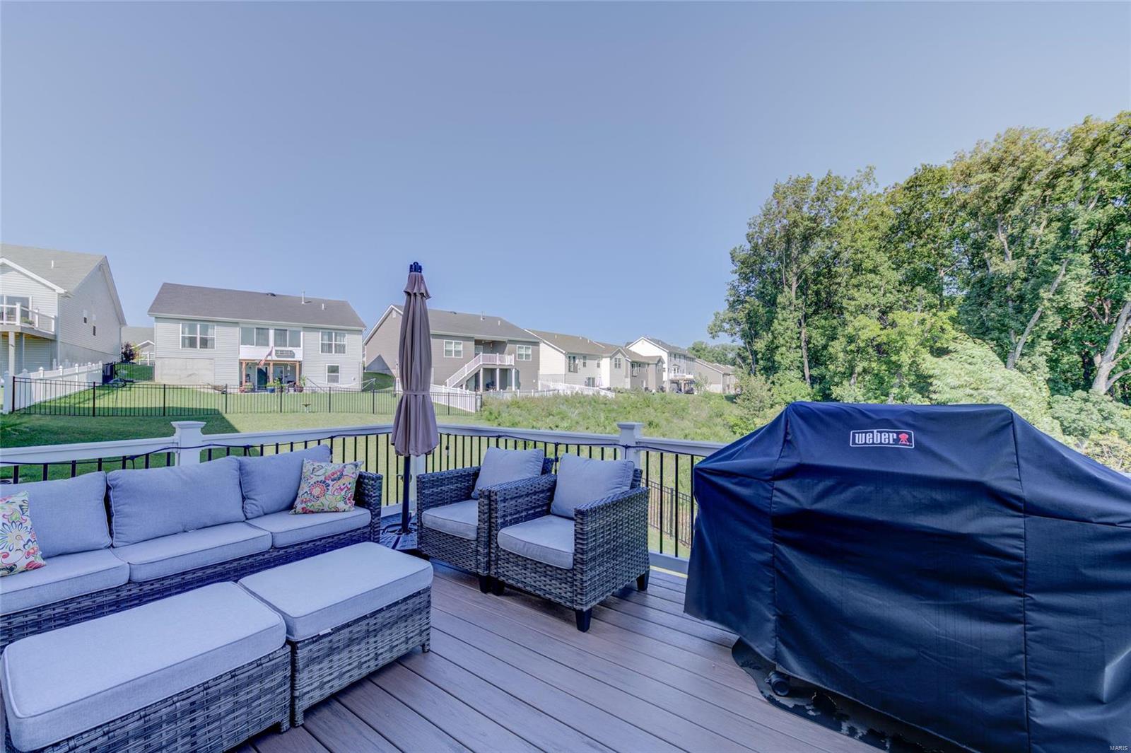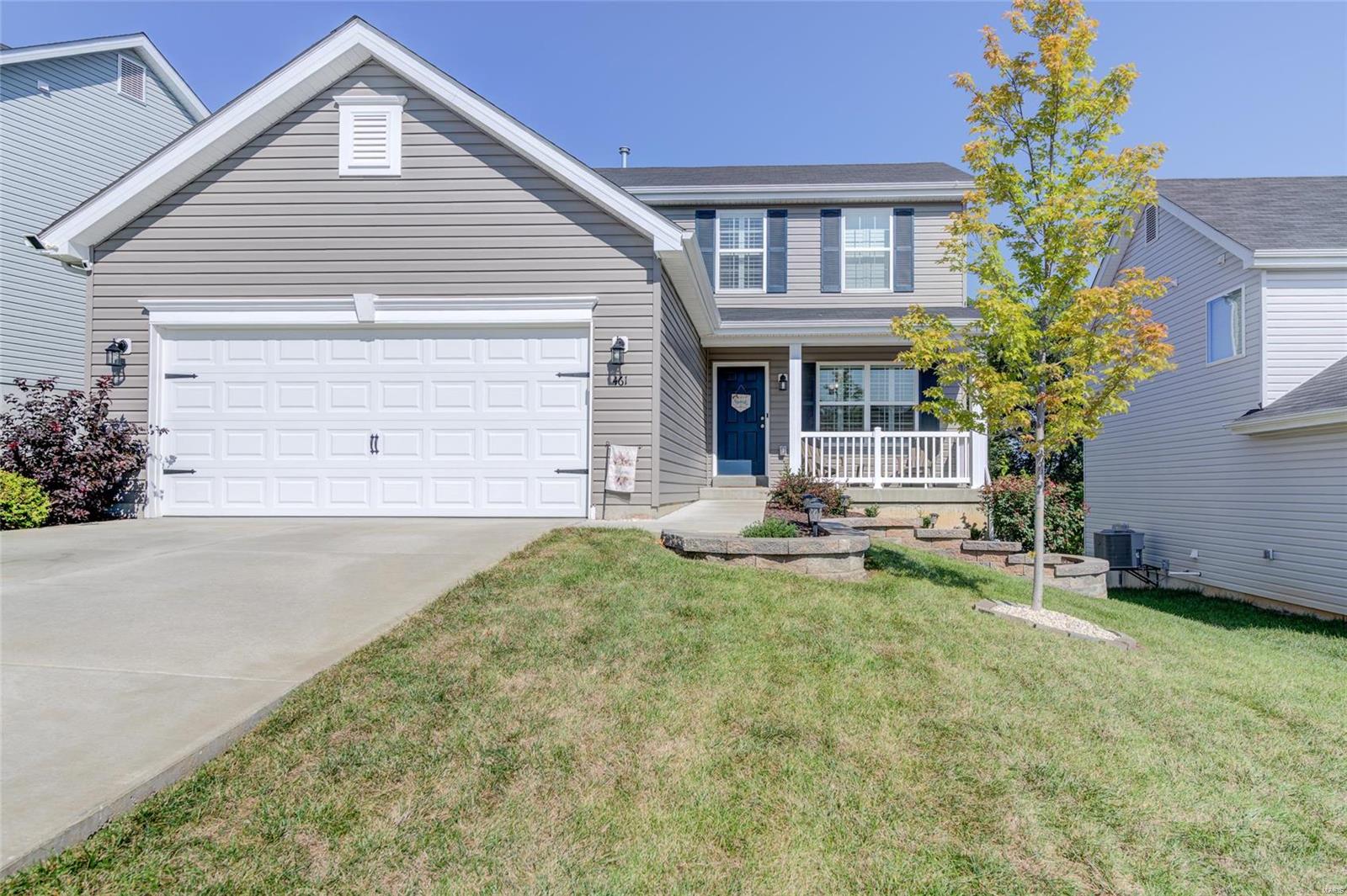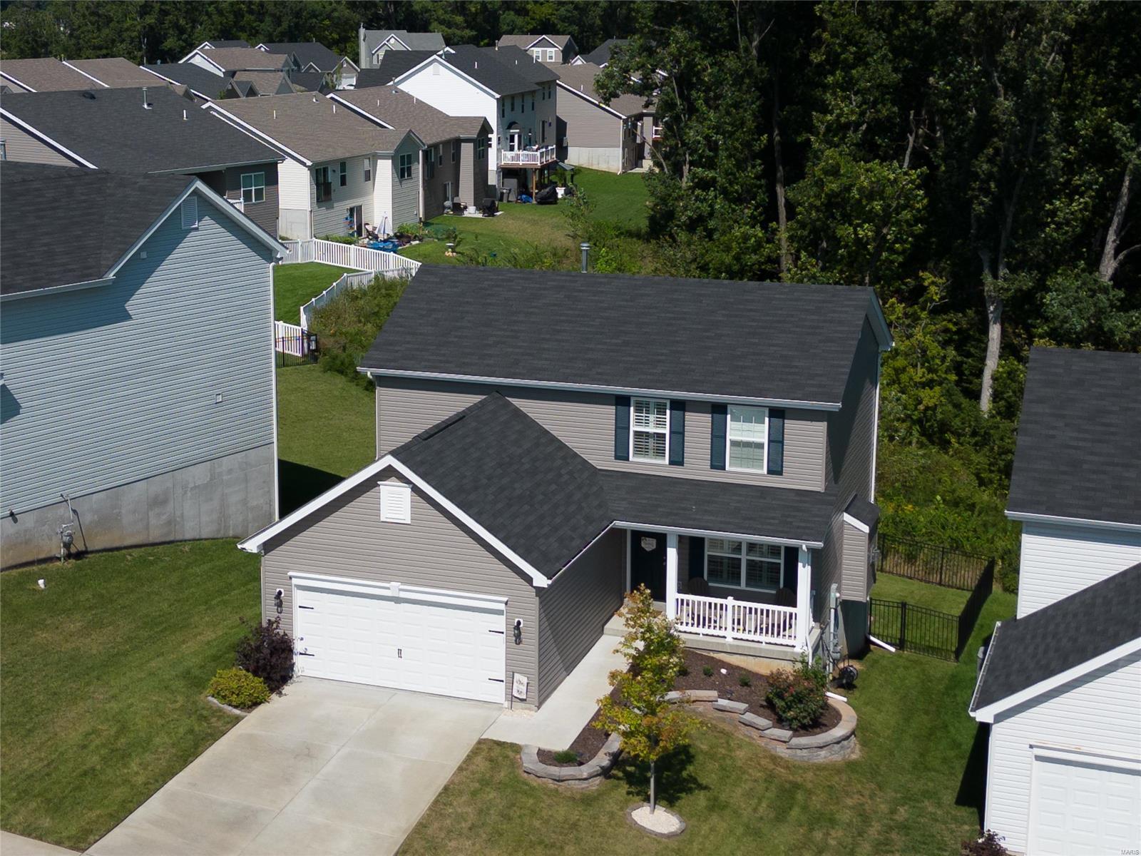 Sellers Can Do a Fast Close!! Beautiful 2 Yr Young 2 Story ready for new Homeowner, Wonderfully maintained & improved on. Pull right up to meticulously manicured lawn & landscape featuring Stone work, Large covered Front Porch adds to the great curb appeal, Once inside you feel right at home, with neutral colors throughout, warm cozy fireplace for snuggling on chilly nights, plantation shutters gives you great privacy or lets the sunshine in, your kitchen is spacious place to hang out with friends & family while cooking, wonderful features include, custom cabinets, quartz countertop, w/complimentary backsplash, gas stove, great center island, from your kitchen walk out on to your 16 x 12 Composite Deck to enjoy the fresh air backing to trees & native grass & you have a fenced yard! Deck & Aluminum Fence both installed in 2022, 2nd lvl features 3 bedrooms, 2 Full Baths, and Laundry, LL is a walk out, with full rough in & full-size window, just an opportunity for more great living space!