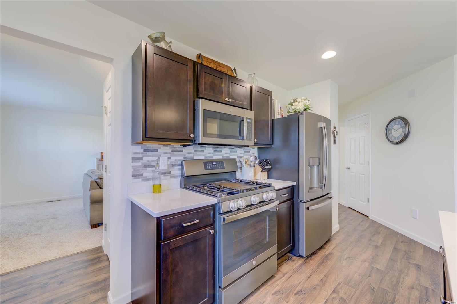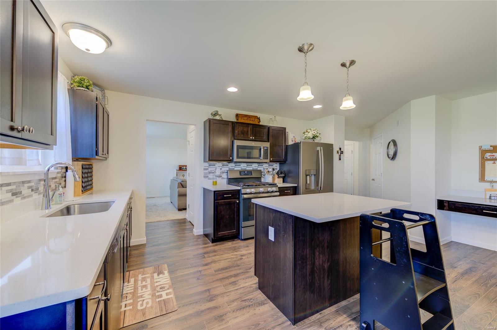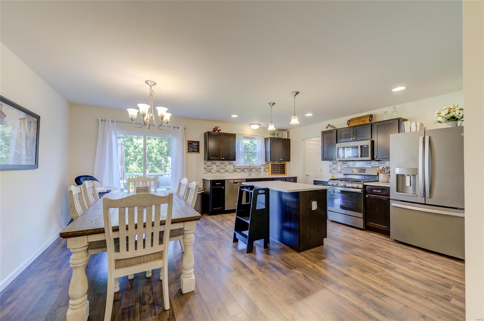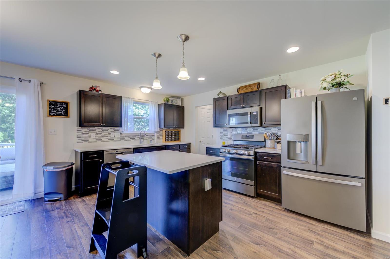 Sellers Can Do a Fast Close!! Beautiful 2 Yr Young 2 Story ready for new Homeowner, Wonderfully maintained & improved on. Pull right up to meticulously manicured lawn & landscape featuring Stone work, Large covered Front Porch adds to the great curb appeal, Once inside you feel right at home, with neutral colors throughout, warm cozy fireplace for snuggling on chilly nights, plantation shutters gives you great privacy or lets the sunshine in, your kitchen is spacious place to hang out with friends & family while cooking, wonderful features include, custom cabinets, quartz countertop, w/complimentary backsplash, gas stove, great center island, from your kitchen walk out on to your 16 x 12 Composite Deck to enjoy the fresh air backing to trees & native grass & you have a fenced yard! Deck & Aluminum Fence both installed in 2022, 2nd lvl features 3 bedrooms, 2 Full Baths, and Laundry, LL is a walk out, with full rough in & full-size window, just an opportunity for more great living space!