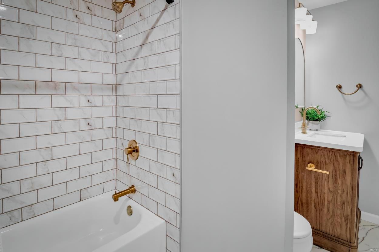 Welcome to this thoughtfully renovated, professionally designed home w/ 3200+ sqft total living area! Charming porch leads you to breathtaking interior; the care, attention to detail + stunning finishes are show-stoppers in this entertainer's paradise! Throughout: gorgeous modern fixtures/hardware, LVP, restored orig hdwd, lux carpet, custom tile, modern fresh paint, vaulted ceilings, custom details. Entry foyer leads to open floor plan: office behind glass French doors on the L, great room ahead, DR on the R. Custom kitchen: quartz counters, butcher block island, custom-built hood vent, pullout drawers in custom cabs +more! Custom shiplap domed ceiling in brkfst room. Great room: gas FP w/ stone hearth, custom shelves, ceramic tile, dry bar niche! MFL w/ storage. Custom primary suite w/ spa-like bath. NEW LL (1100+ sf finished): rec room, 2 true bedrooms, lg bath, add'l ofc. Tons of storage + irr system. See complete list of updates in MLS docs.