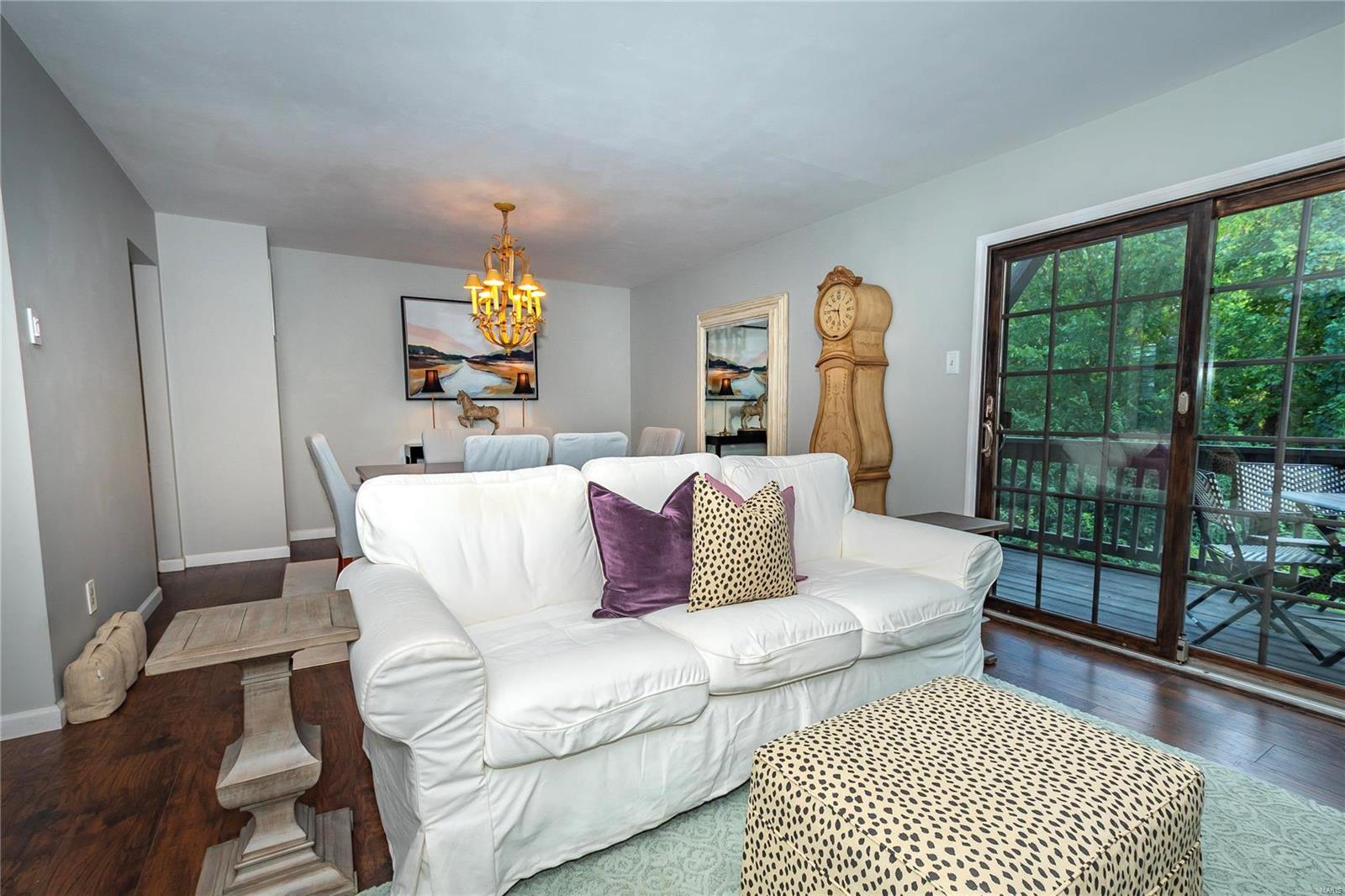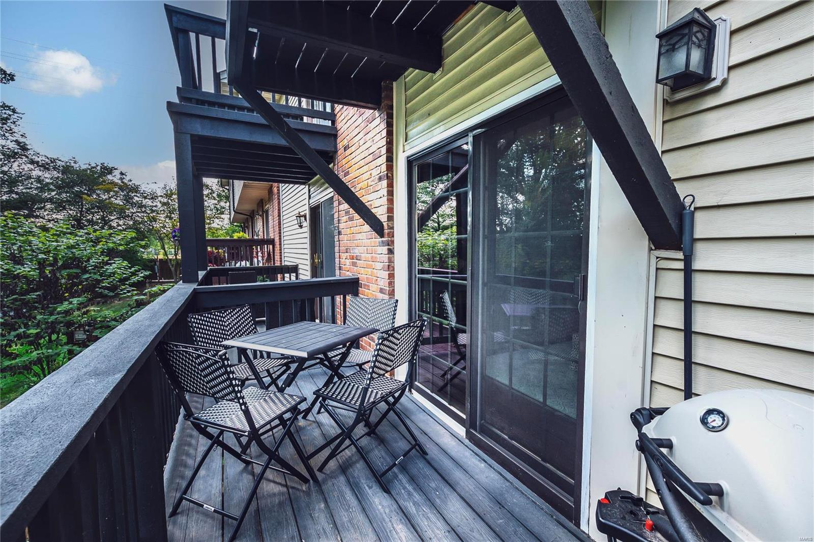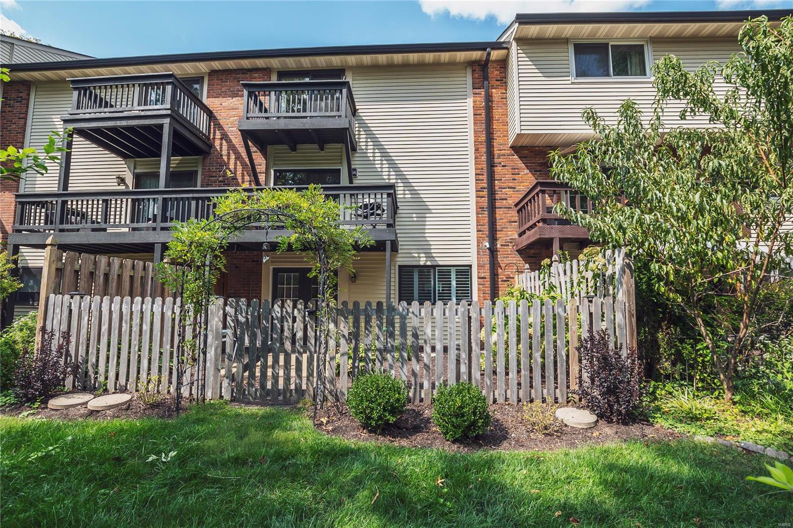 Welcome to this incredible 2-story townhouse with quality updates, loads of charm, and plenty of natural light in the heart of Chesterfield. 2 BD, 1 Full BA & 2 Half BA condo features updated Kitchen with 42” white cabinets, granite counters & SS appliances (2021 all remain). Spacious Dining & Living Room leads to updated deck. Updated Powder Room (2021) & beautiful newer floors throughout! Main Bedroom has large walk-in closet & custom organizers plus its own updated deck. 2nd BD also has large walk-in closet! Finished LL offers more living space w/plenty of natural light and walkout to private patio and fenced yard for your green thumb or fur baby. Other highlights: new 3-inch white plantation blinds (2023), new Lenox furnace (2022), windows (2021), light fixtures (2021), newer interior/exterior doors, remodeled staircase (2021) and more. Unit includes detached 1-car garage & 1 assigned outdoor parking spot. Easy access to grocery stores, restaurants, I-64. Parkway School District.