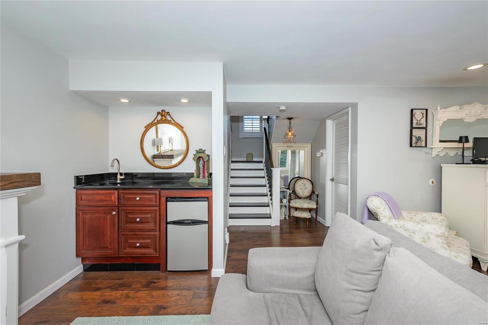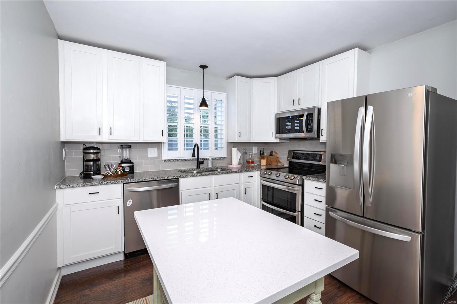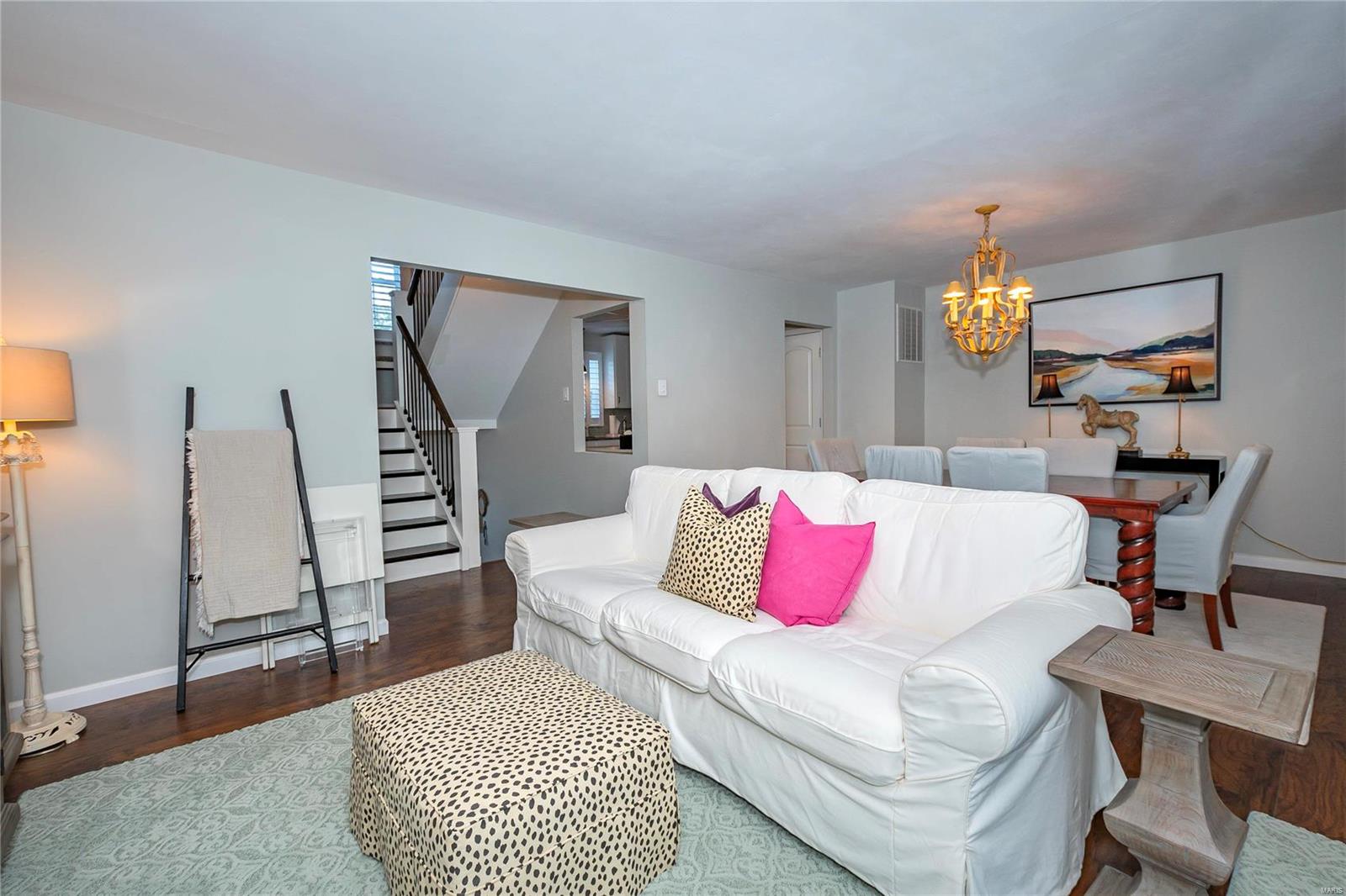 Welcome to this incredible 2-story townhouse with quality updates, loads of charm, and plenty of natural light in the heart of Chesterfield. 2 BD, 1 Full BA & 2 Half BA condo features updated Kitchen with 42” white cabinets, granite counters & SS appliances (2021 all remain). Spacious Dining & Living Room leads to updated deck. Updated Powder Room (2021) & beautiful newer floors throughout! Main Bedroom has large walk-in closet & custom organizers plus its own updated deck. 2nd BD also has large walk-in closet! Finished LL offers more living space w/plenty of natural light and walkout to private patio and fenced yard for your green thumb or fur baby. Other highlights: new 3-inch white plantation blinds (2023), new Lenox furnace (2022), windows (2021), light fixtures (2021), newer interior/exterior doors, remodeled staircase (2021) and more. Unit includes detached 1-car garage & 1 assigned outdoor parking spot. Easy access to grocery stores, restaurants, I-64. Parkway School District.