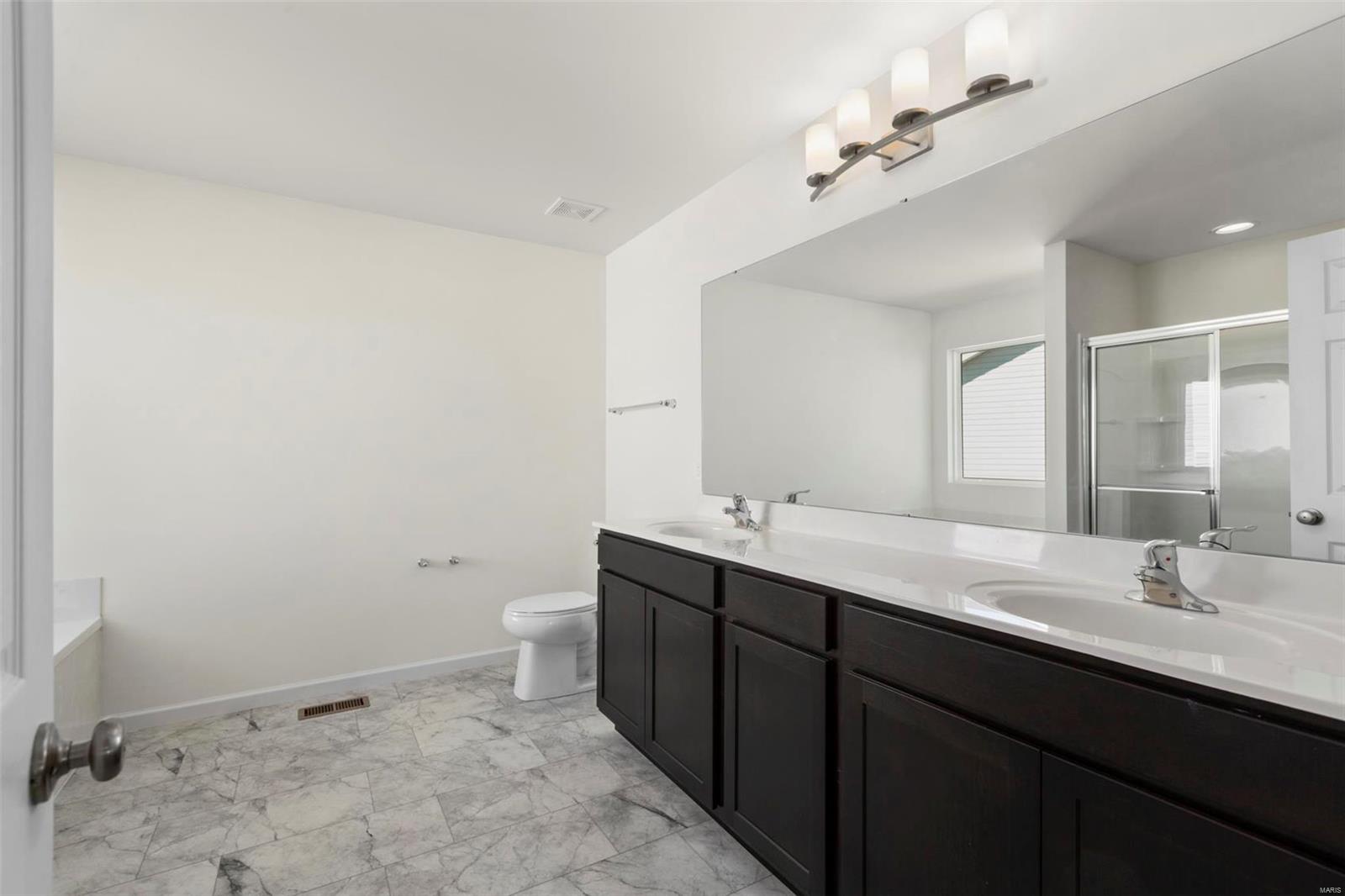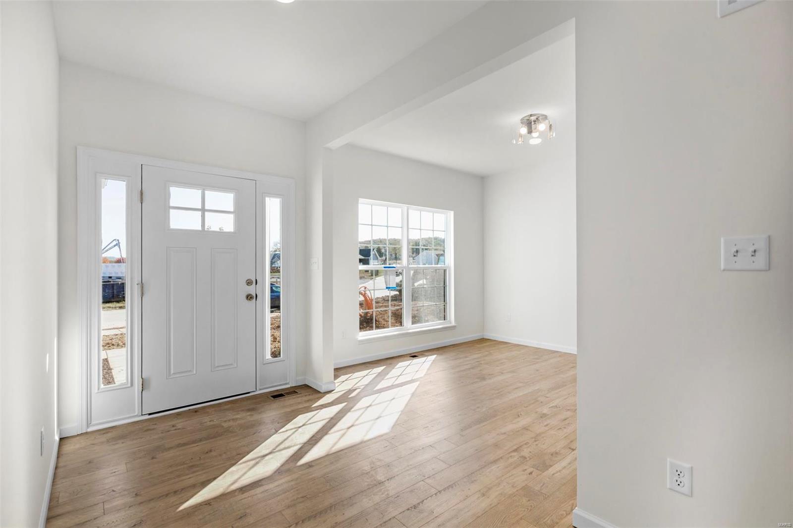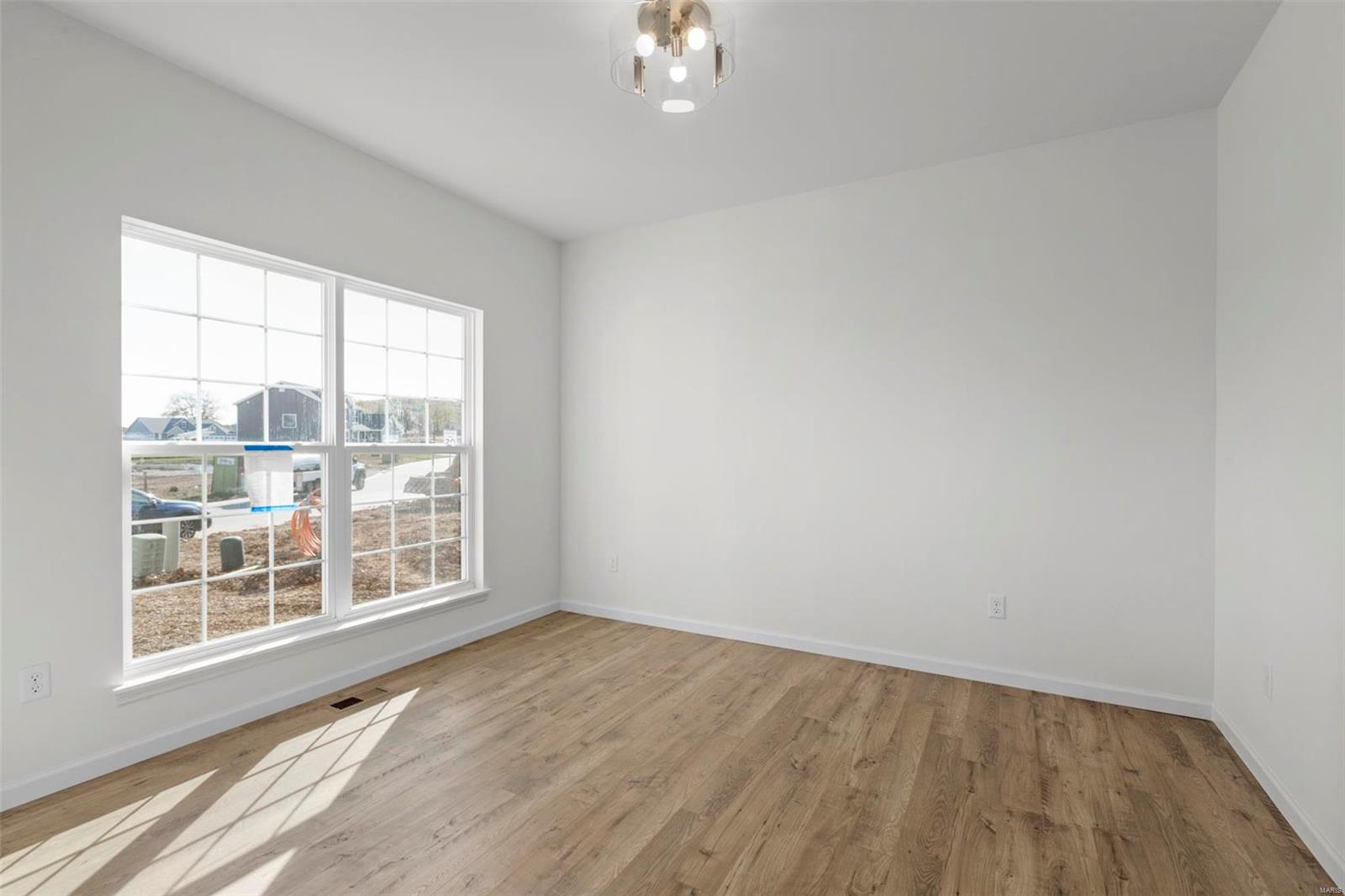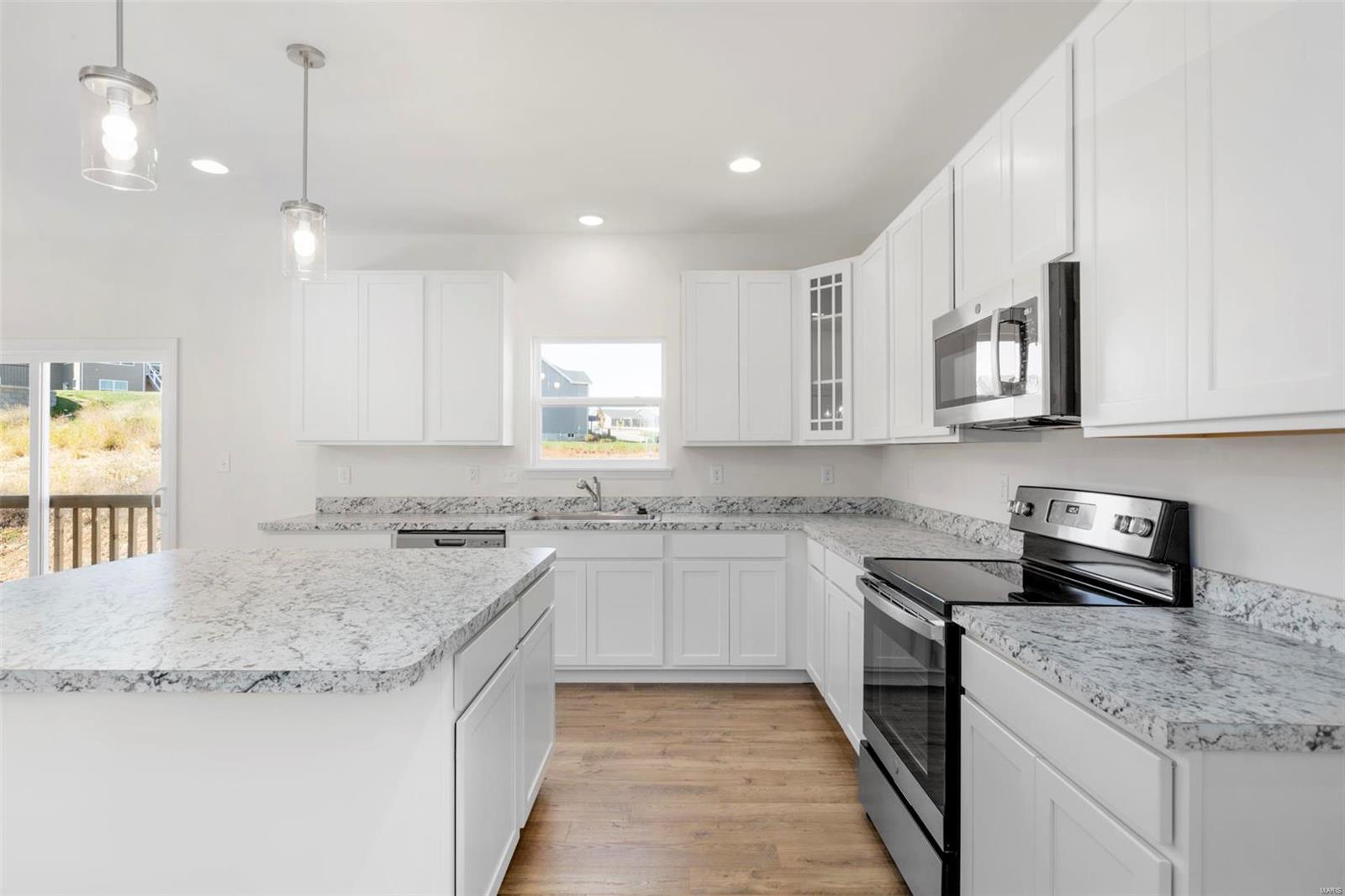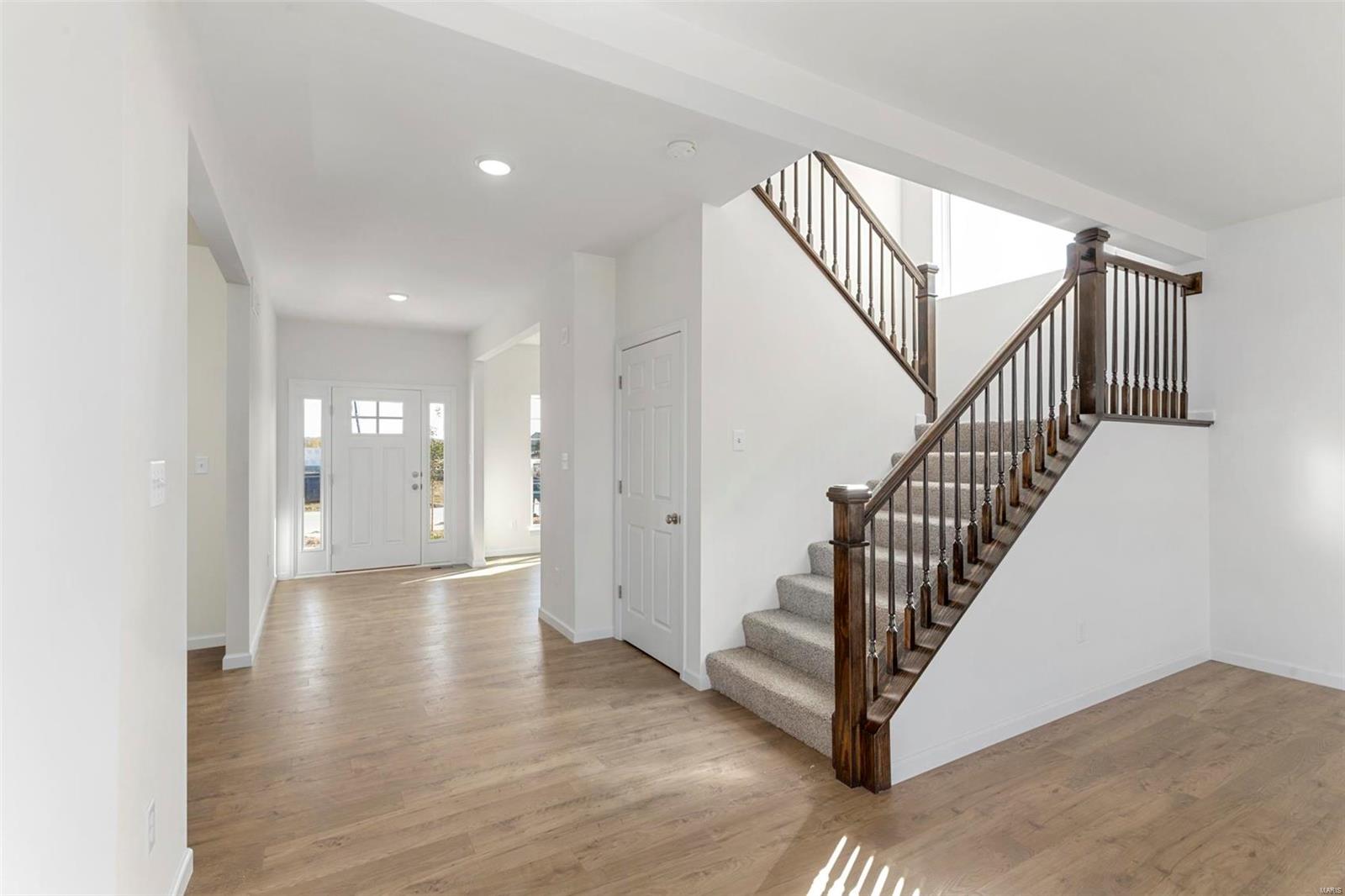 New Nottingham 2-story home by McBride Homes, w/4BR, 2.5BA, is ready NOW! This stunning home is a walkout & features a 3 CAR GARAGE, 9ft ceilings, 6ft windows plus upgraded wood laminate flooring throughout the main floor. The kitchen is equipped with quartz countertops, beautiful white 42” wall cabinets, center island with a breakfast bar, & stainless-steel GE appliances. Additionally, there is a spacious great room with a window wall, plus a formal living room and dining room. Upstairs you’ll find the master suite which offers a spacious walk-in closet, separate shower, and large tub, with three additional bedrooms and a laundry room. Dual zone HVAC. Polo Grounds offers a barn-style clubhouse, playground, pickleball court, fire pit, scenic lake w/fountain & more. Located in Eureka near Highway 109/Hwy FF, in the Rockwood School District. Enjoy peace of mind with McBride Homes’ 10 year builders warranty and incredible customer service! Similar photos shown. Similar photos shown.