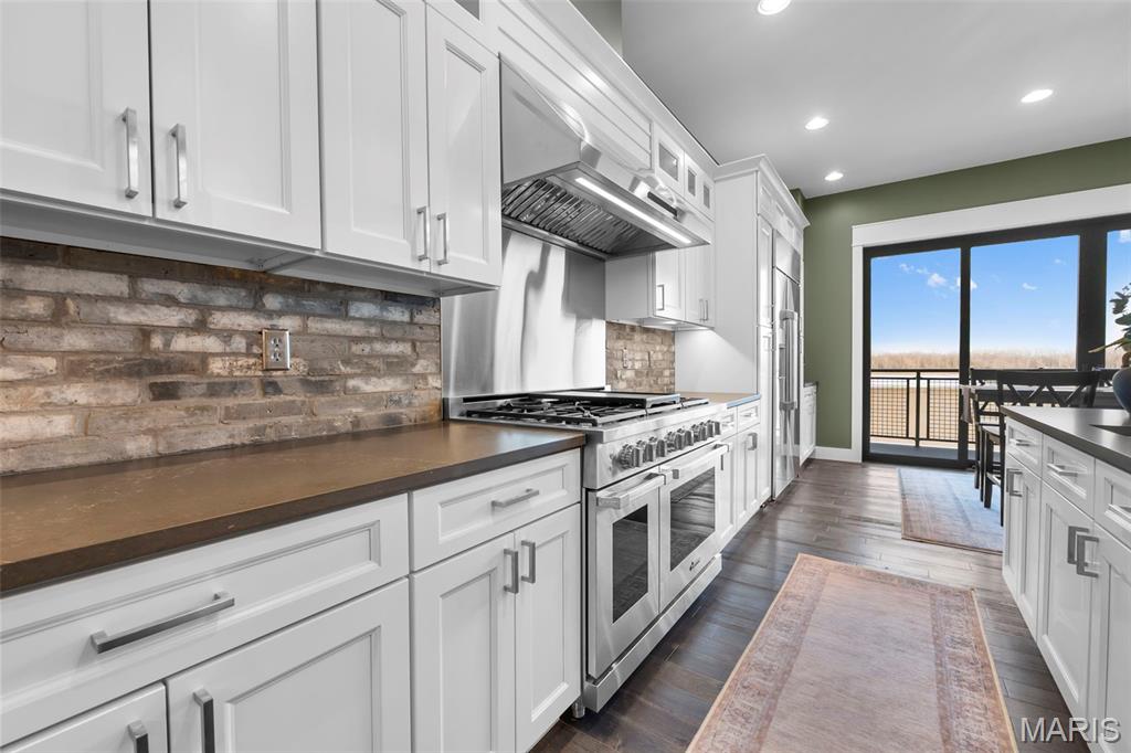 Welcome to the River's Edge Townhomes - where luxurious finishes are shared with modern conveniences. Featuring free panoramic views of the Mississippi River from every level, this 4 story townhome features a private elevator, green space for those little pets, high end appliances, 2 kitchens, and 4 decks, with one deck being on the roof-top level with a kitchenette and private bath for guests. You'll find mostly wood floors throughout, high ceilings, custom moldings, and not a detail missed throughout. The master suite features a private deck, separate jacuzzi/shower, spacious walk in closet and wood floors. Come take a peek at this nearly finished townhome! Same floor plan as our model home, but completely different decor and finishes inside.
