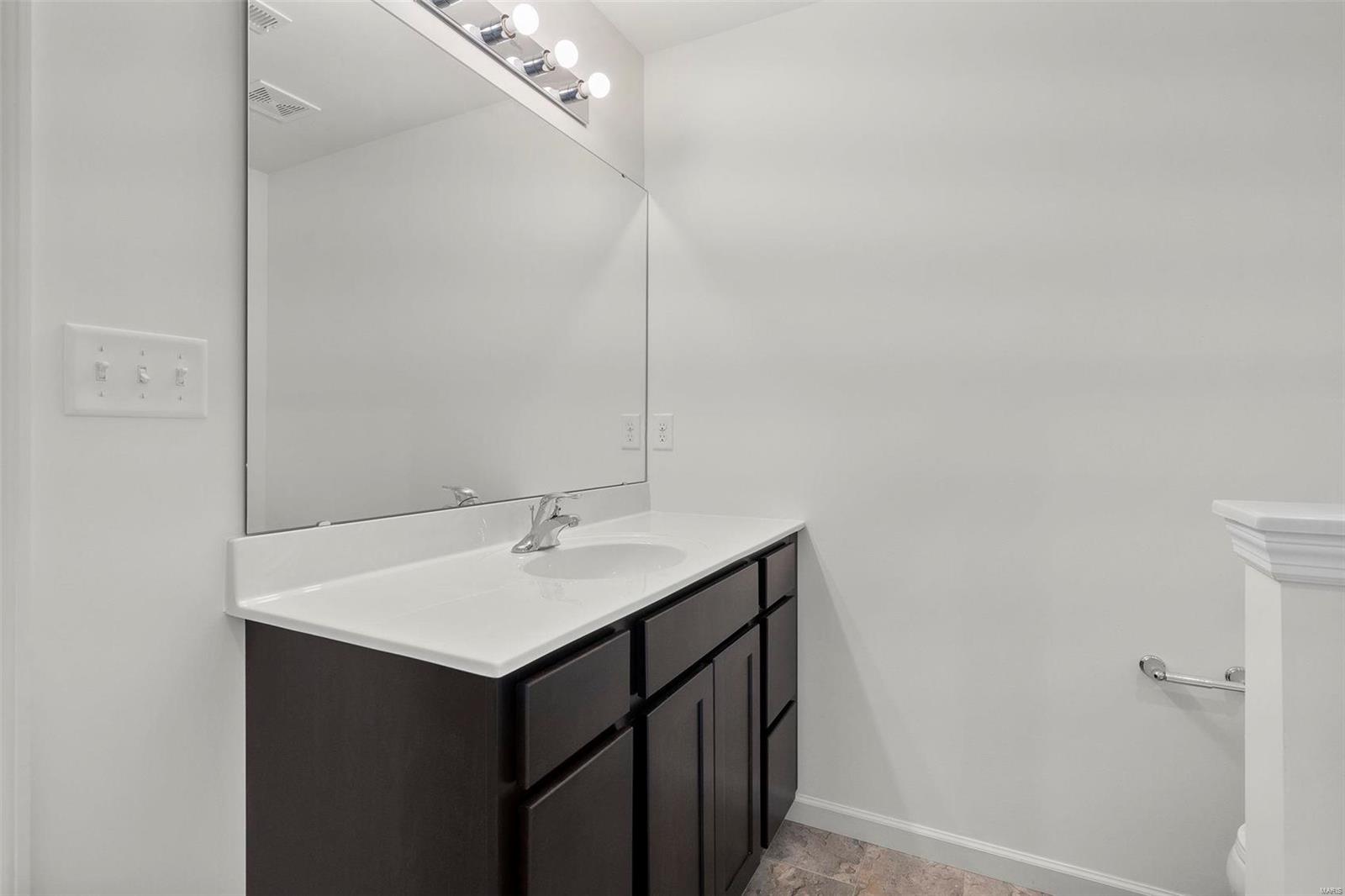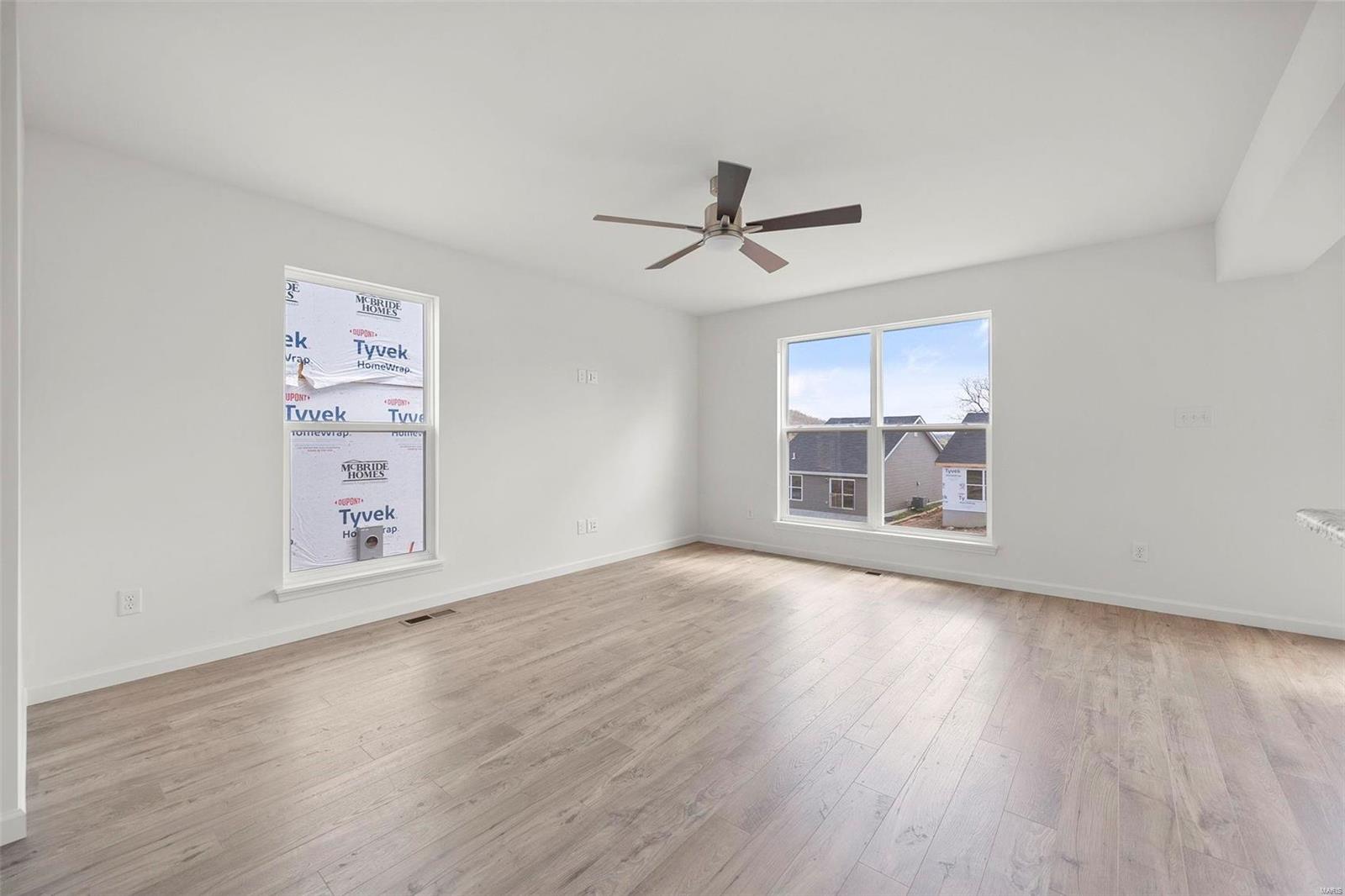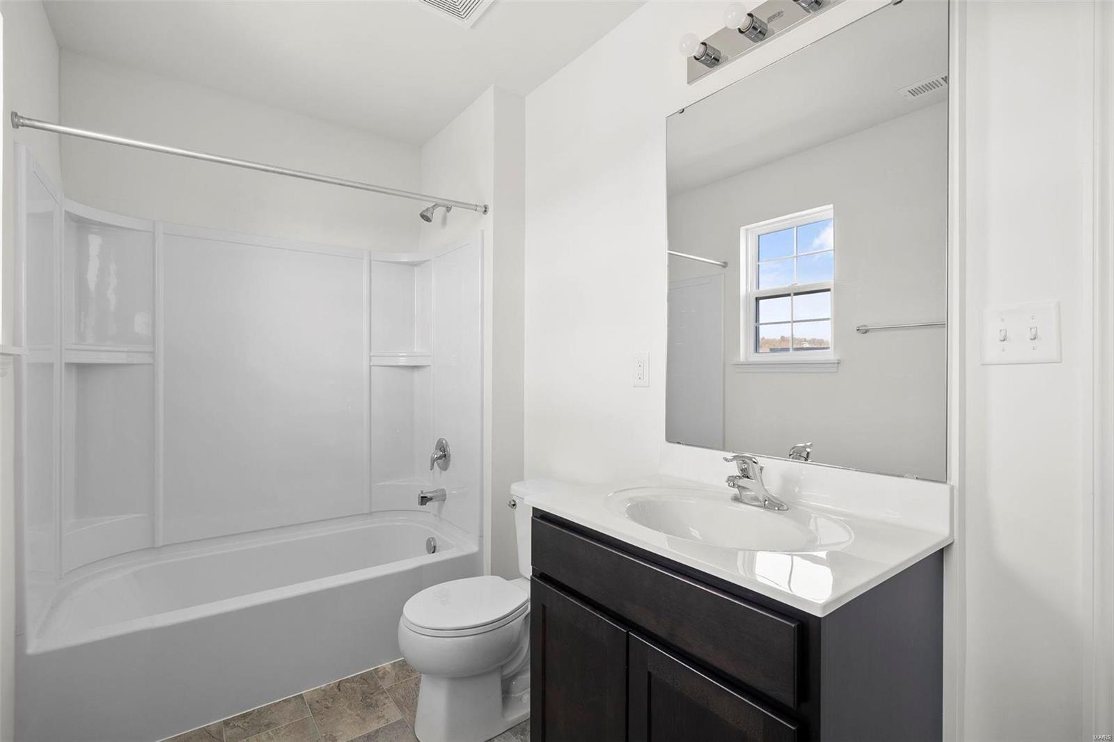 New McBride Homes St. James 2-story 3 BR, 2.5 BA is ready NOW! Perfect for entertaining with open floor plan! Enjoy 6ft windows & wood laminate flooring throughout main floor. Spacious family room with tons of natural light. Kitchen features level 4 painted white 42” cabinets, breakfast bar, quartz countertops, & stainless GE appliances. Dining area offers sliding glass doors leading to the backyard. Upstairs is the master suite with walk in closet and private bathroom. Two additional bedrooms, full bath, and upstairs laundry area. One car garage with coach lights, upgraded lighting with ceiling fan prewires, main floor powder room, white two panel interior doors, and more! The lower level includes ¾ bath rough-in for future finish. Located in House Springs, this community features 263 homesites off Bear Creek Road, just east of Gravois Road and Carol Park Road. Enjoy peace of mind with McBride Homes’ 10-year builders warranty and incredible customer service! Similar photos shown.