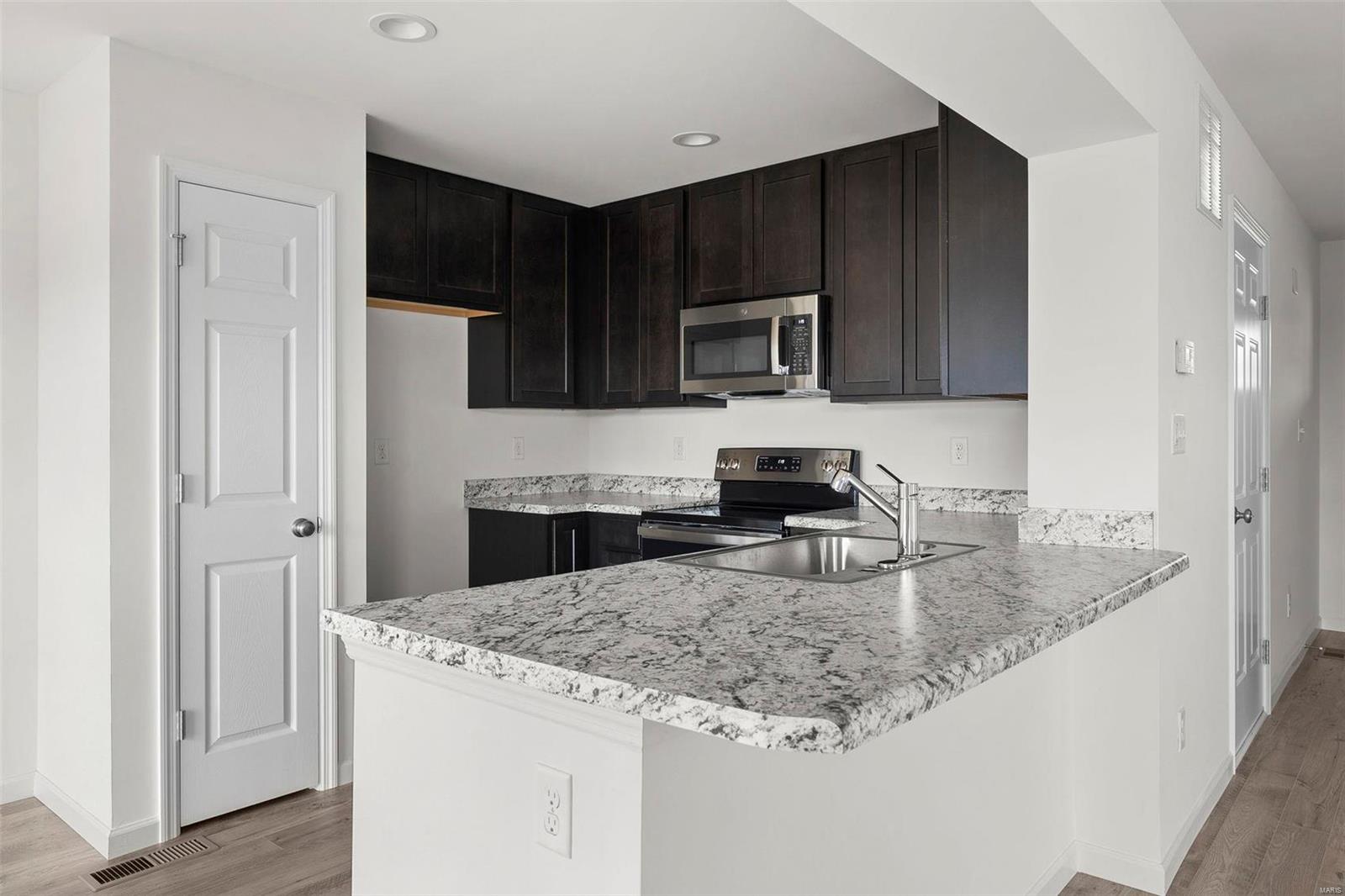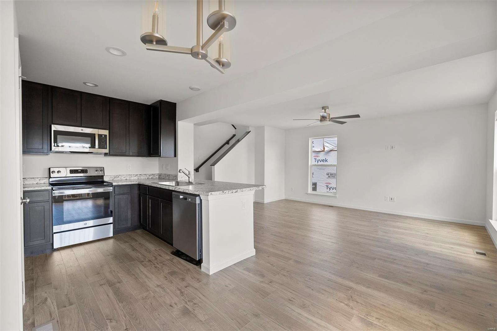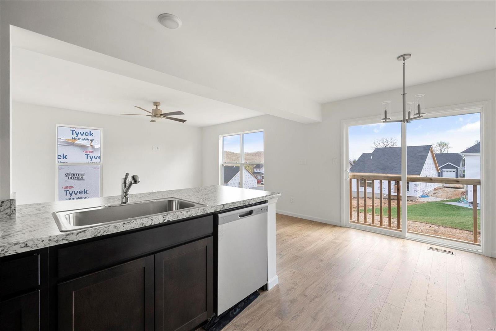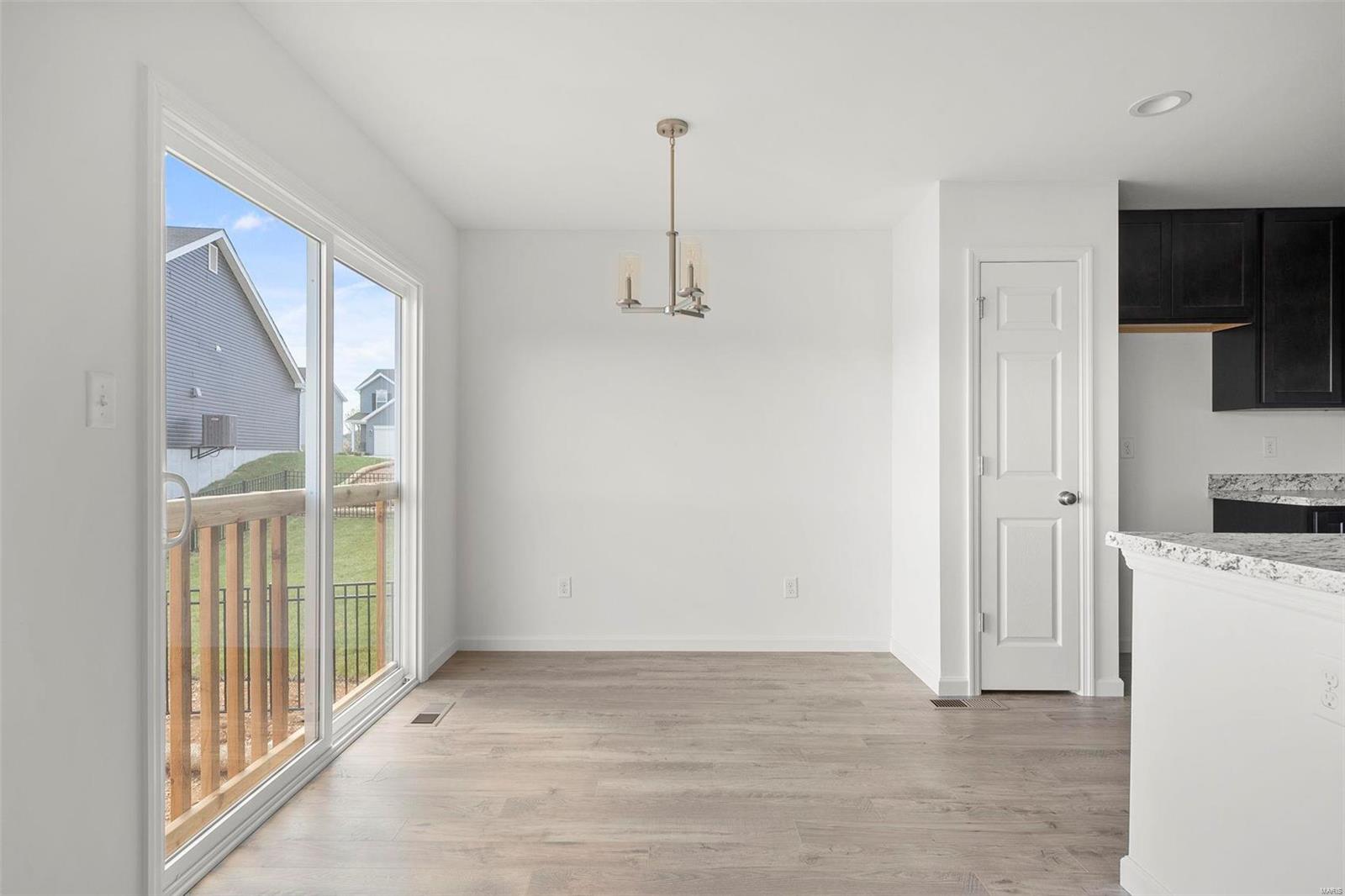 New McBride Homes St. James 2-story 3 BR, 2.5 BA is ready NOW! Perfect for entertaining with open floor plan! Enjoy 6ft windows & wood laminate flooring throughout main floor. Spacious family room with tons of natural light. Kitchen features level 4 painted white 42” cabinets, breakfast bar, quartz countertops, & stainless GE appliances. Dining area offers sliding glass doors leading to the backyard. Upstairs is the master suite with walk in closet and private bathroom. Two additional bedrooms, full bath, and upstairs laundry area. One car garage with coach lights, upgraded lighting with ceiling fan prewires, main floor powder room, white two panel interior doors, and more! The lower level includes ¾ bath rough-in for future finish. Located in House Springs, this community features 263 homesites off Bear Creek Road, just east of Gravois Road and Carol Park Road. Enjoy peace of mind with McBride Homes’ 10-year builders warranty and incredible customer service! Similar photos shown.