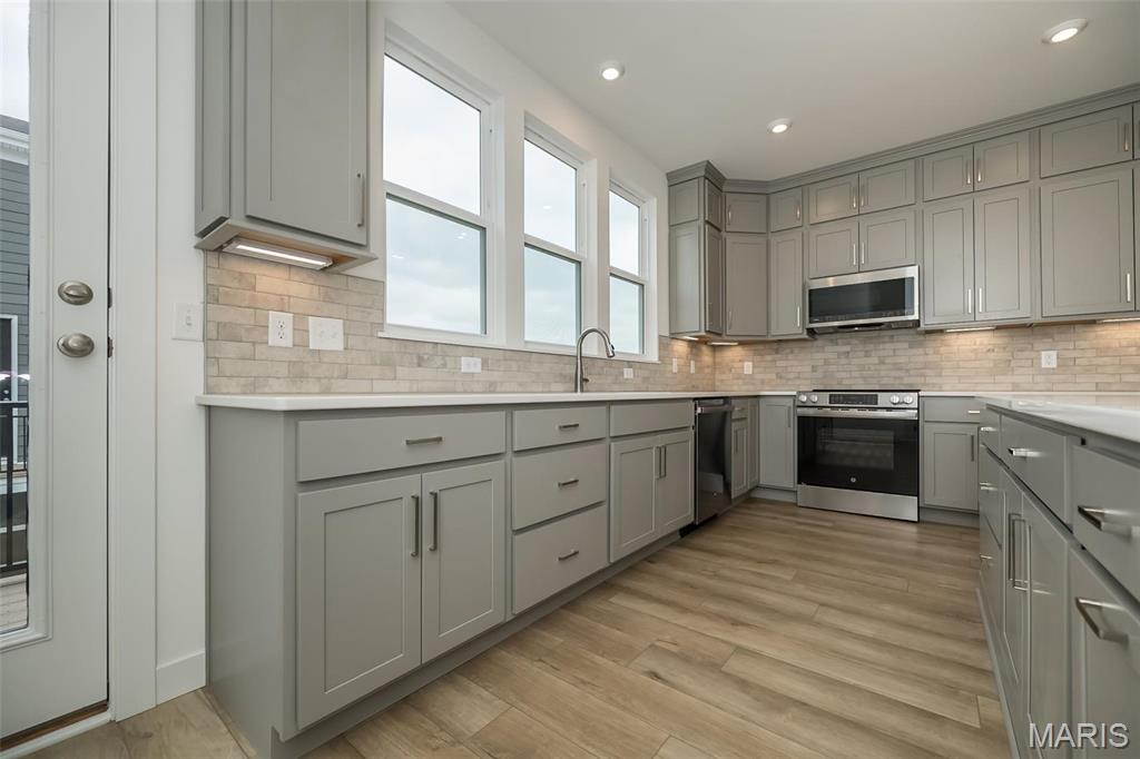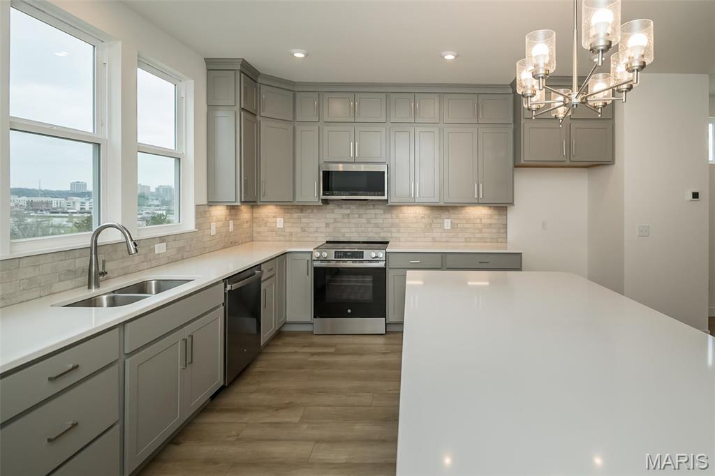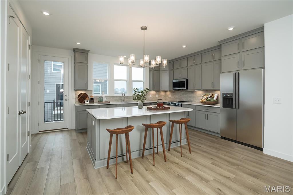 Gorgeous new Tustin plan by Fischer Homes in beautiful Gateway Heights featuring a rec room with full bathroom on the 1st floor. The 2nd level featuring the main living area with a spacious family room that leads into the dining which then leads into the HUGE island kitchen stunning with stainless steel appliances, upgraded cabinetry with soft close hinges, upgraded counters, pantry and walk-out access to the deck. The 3rd floor has the large primary suite with an en suite with a double bowl vanity, walk-in shower and walk-in closet. There are 2 additional bedrooms, hall bath and convenient 2nd floor laundry closet. 2 bay garage. Some photos have been virtually staged.