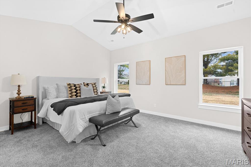 Interior Decor Ceiling Fan(s),Custom Cabinetry,Double Vanity,High Ceilings,Kitchen Island,Kitchen/Dining Room Combo,Lever Faucets,Open Floorplan,Solid Surface Countertop(s),Vaulted Ceiling(s),Walk-In Closet(s)