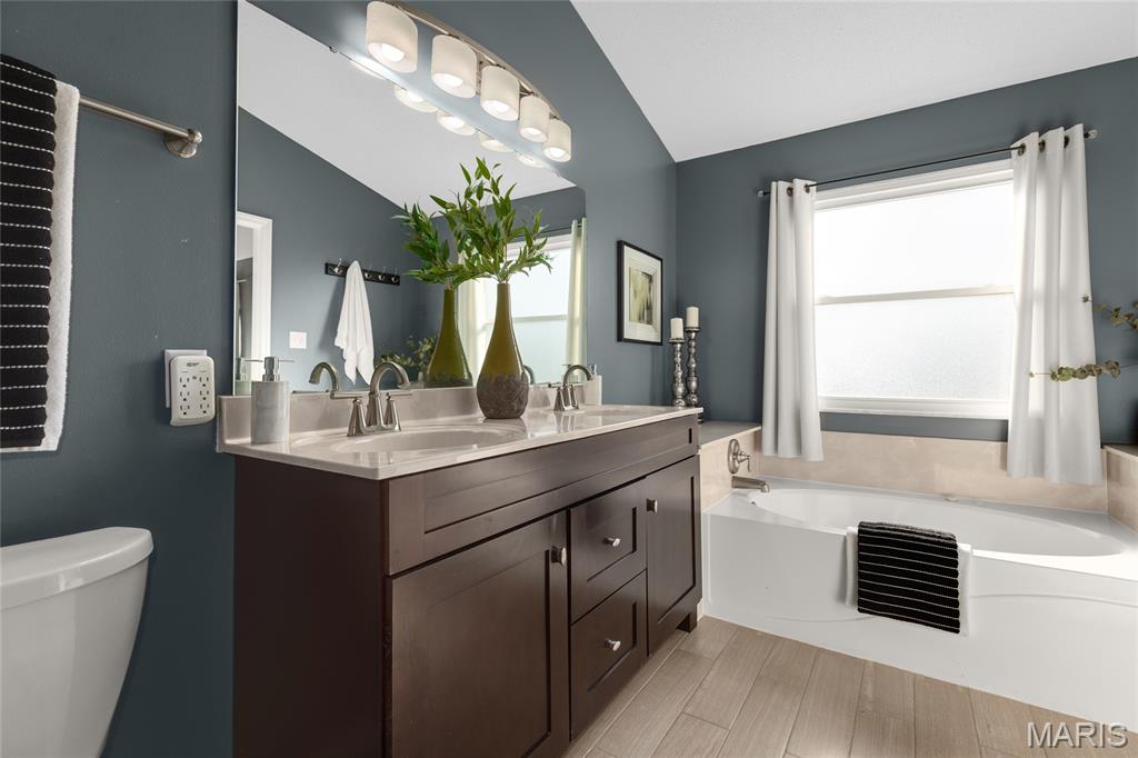 Open Sun 12/14, 1-3 PM. An inviting, updated home where an airy open floor plan is enhanced by vaulted ceilings in both the main living area and the spacious primary suite. The primary bathroom offers a relaxing retreat with a double-sink vanity, separate tub, and a walk-in shower. The finished lower level extends the home’s versatility with an awesome rec room including bar/kitchen area suited for guests or gatherings. a comfortable sleeping area, and a full bathroom. A fully fenced yard creates a sense of privacy outdoors, while the three-car garage adds everyday convenience. This home blends comfort, function, and thoughtful design throughout!