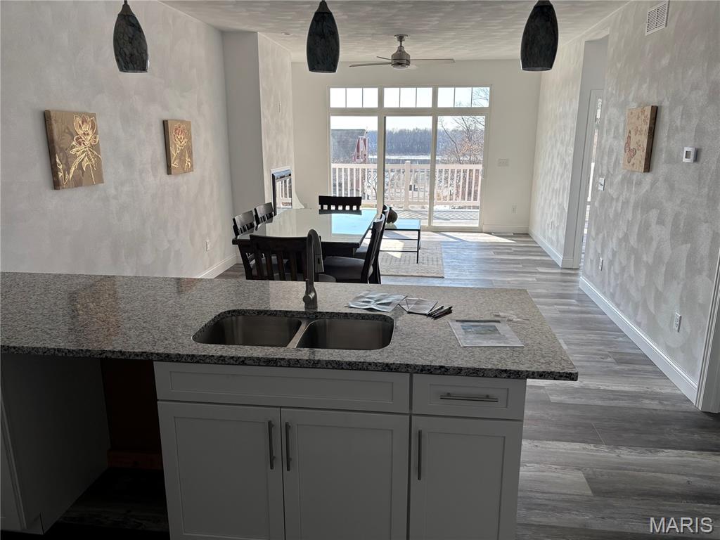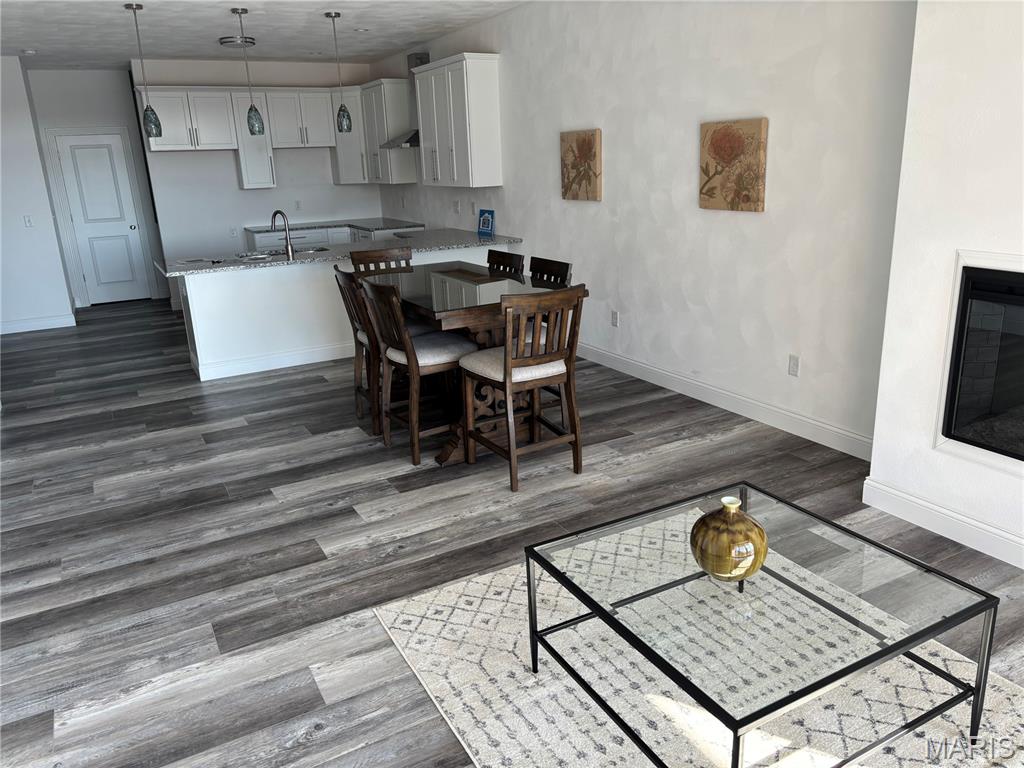 "Don't miss this opportunity to have as your NEW home in Grafton (at the Moorings in Grafton), the LAST NEW Condo For Sale with a Great River View". NOW PARTIALLY FURNISHED! 2 Bedroom, 2.5 Bath RIVERVIEW Condo located in the much-desired center of the Historic Grafton Illinois. Within walking distance to wineries, eateries, quaint shops, a marina, many water-related activities, and many other sporting and outdoor activities. This newly completed condo features 1700 square feet of high-quality workmanship. On a Large Corner Lot! Enjoy the beautiful river view from the Large Open Great Room, the Main Bedroom, and the deck. Has 2 walk-in closets. The kitchen has custom-upgraded self-closing cabinets and self-closing drawers, along with Granite countertops. Pantry. Has a hood over the range area. Flooring throughout is Luxury Vinyl Plank, except the bathroom floors are Porcelain Tile. Has an Electric fireplace in the main floor living room. Main floor laundry with sink. Large Main bedroom bath has bidet & toilet, double sinks. The 2 other bathrooms have ONYX countertops. Lower level large 22' x 13' Family Room (Bonus Room), a half bath, a closet, a utility room (with HVAC and water heater) / storage area. (Storm shelter). 2 Intentionally separated garages with each having a security camera. City water and sewer. (All furnishings as shown will remain with the property).