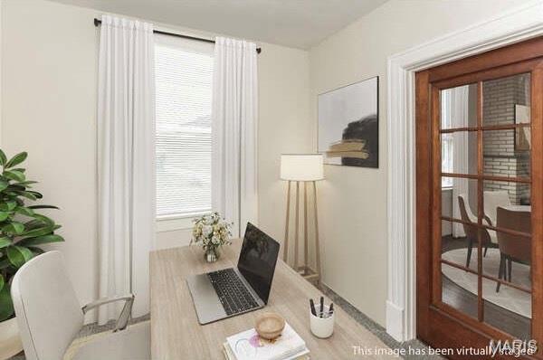 Darling, move in ready, home in the Hancock Place school district. Enjoy sitting on the covered front porch with your morning coffee or evening cocktail. The spacious living room is light filled with two windows and real hardwood floors. The spacious dining room also has real hardwood floors. There is a first floor office, if you work from home or the kids have homework. The generous primary bedroom is on the first floor. There is a full bathroom on the first floor. The second floor has two large bedrooms and a half bath. There is a large eat-in kitchen full of light (two windows), laminate floor and the refrigerator stays. Huge pantry. Both bathrooms are updated. A convenient rear entry door is located off the kitchen and leads to the backyard. There is a full basement and the washer and dryer stay. The backyard is level and fenced for the kids and pets. This is a great South County location close to shopping and restaurants. A 2-10 Home Warranty is included. St. Louis Louis County Occupancy will be provided. Supra is on the front door.