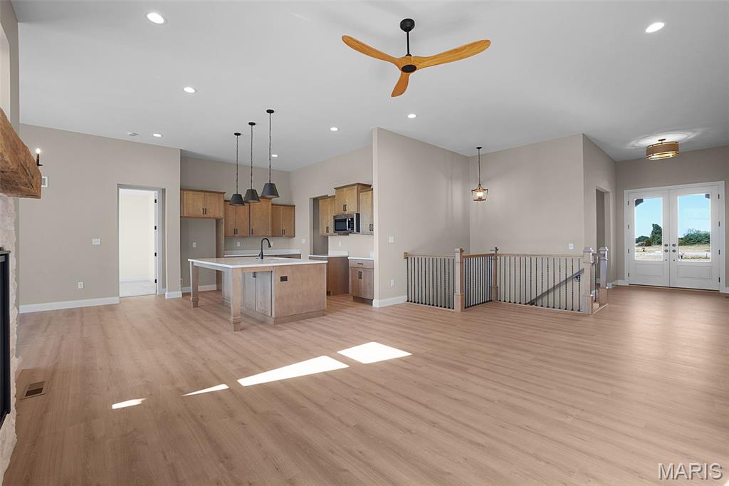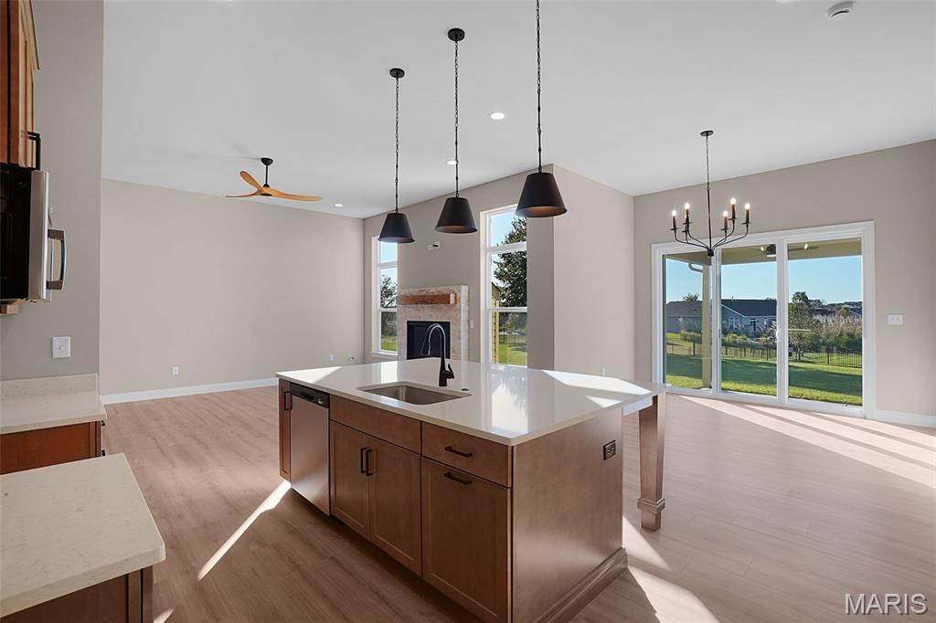 This completed 3 Bedroom Ranch Home has a 2 Car Side Entry Garage & a 2 Car Front Entry Garage with a 2' extension & Carriage Style, 8' Tall, Insulated Garage Doors. Features Include 11' Ceilings in the Foyer, Great Rm, Kitchen & Breakfast Rm. Off the Foyer is an Office w/ Laminate Floors. The Great Rm has 6' Tall Windows with 2' Transoms above, a Gas Fireplace with Stone, Can Lighting & Laminate Floors. The Kitchen has a Huge Island, Quartz Countertops, 42" Tall Soft Close, Maple, Staggered Cabinets w/ Crown Molding, Double Trash Drawer, Stainless Appliances, Can Lighting, Under Cabinet Lighting & Laminate Floors. The Breakfast Room has a Triple 8' Tall Slider that takes you to the Covered Patio. The Primary Bath has a Marble Shower w/ Heavy Glass Swing Door w/ Separate Free Standing Tub, Double Bowl, Adult Height Vanities, Upgraded Counters, Matte Black Moen Faucets & a Linen Closet. Other Features Include 8' Tall Doors, 5 1/4" Base, 3 1/4" Door Casing, Custom Paint, Iron Spindles, Rough In Plumbing & a Fully Sodded & Landscaped Yard.