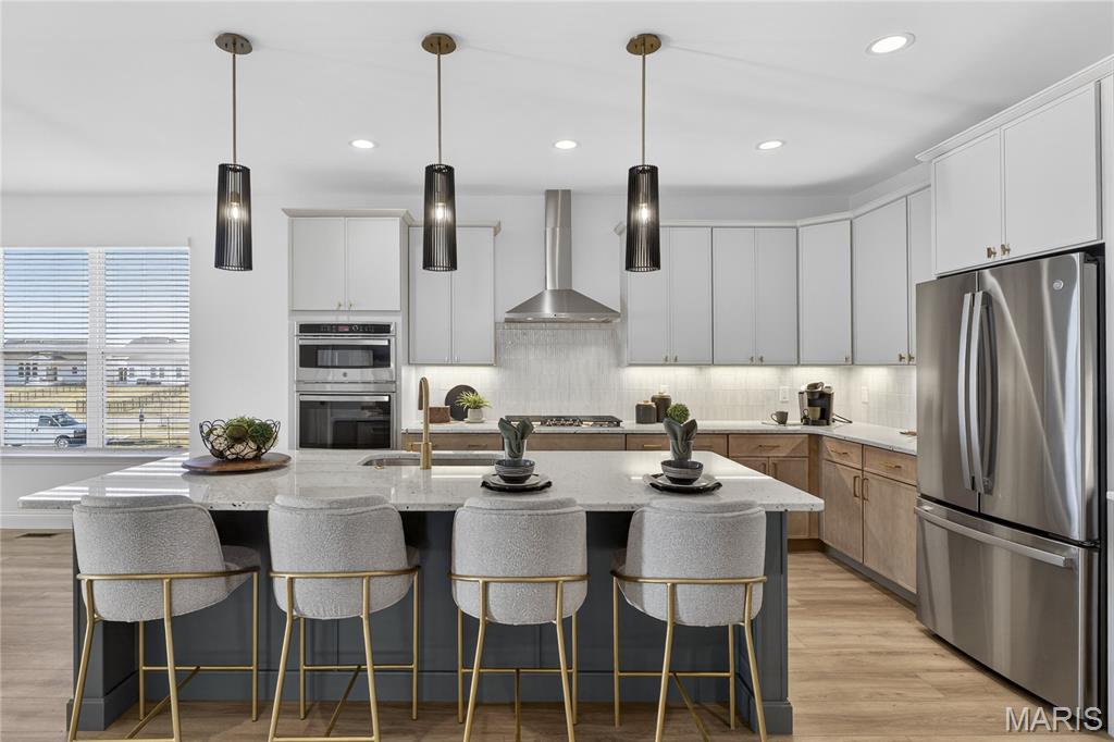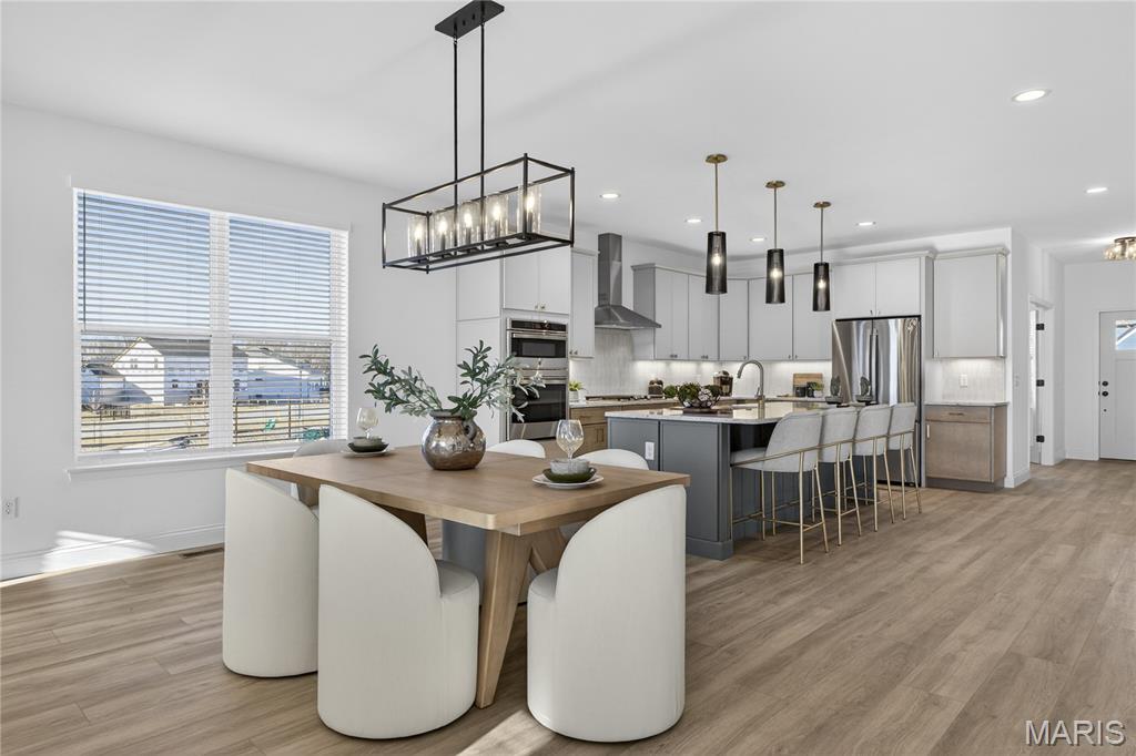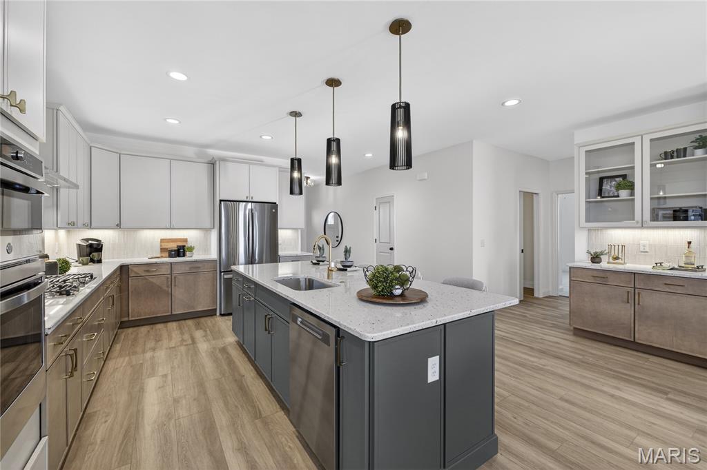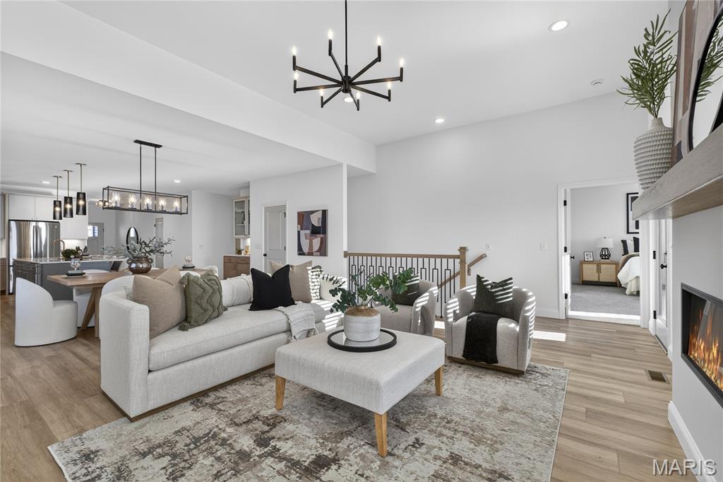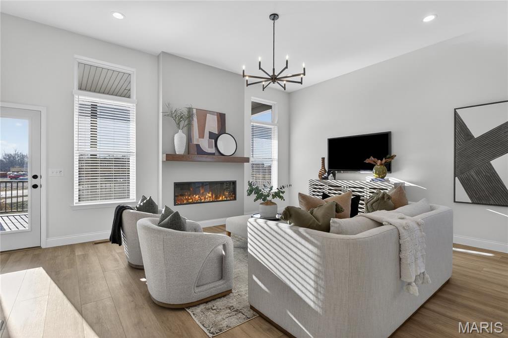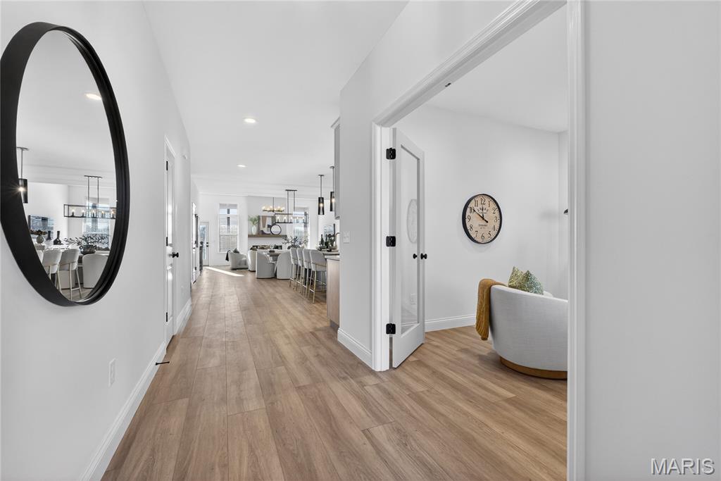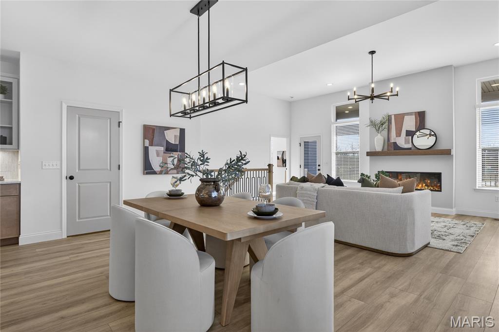 Move-in ready now on homesite 86! Welcome to this stunning ranch-style home nestled in the highly sought-after Cottleville Trails community—where nature meets convenience, and residents enjoy serene walking trails and a picturesque lake just steps from home. Located within the acclaimed Francis Howell School District, this thoughtfully designed residence offers a blend of style, comfort, and everyday functionality. From the moment you step inside, you're welcomed by a spacious open floor plan bathed in natural light, with soaring 11-foot ceilings and bonus windows that highlight the home's earthy palette and warm soft neutrals. The interiors reflect a trendy yet timeless, curated design, combining classic finishes with modern elegance—perfectly suited for both entertaining and peaceful day-to-day living. The heart of the home is a beautifully appointed gourmet kitchen, featuring an expansive quartz island with generous seating, abundant storage, and refined details. Retreat to the luxurious owner’s suite, where a spa-like walk-in shower and serene ambiance create a true sanctuary. Every room exudes a quiet sophistication, with textures and tones chosen to reflect a natural, grounded beauty. Step outside to the expanded covered deck, ideal for hosting gatherings or enjoying tranquil mornings, and take in the spacious walkout backyard. With easy access to Downtown Cottleville’s charming shops and dining, and major highways - this home is as convenient as it is beautiful. Don’t miss the chance to experience this warm, inviting, and impeccably designed home—schedule your private tour today!