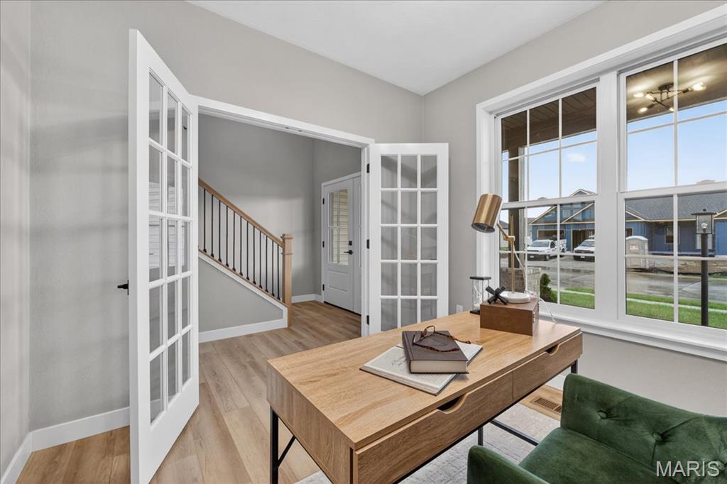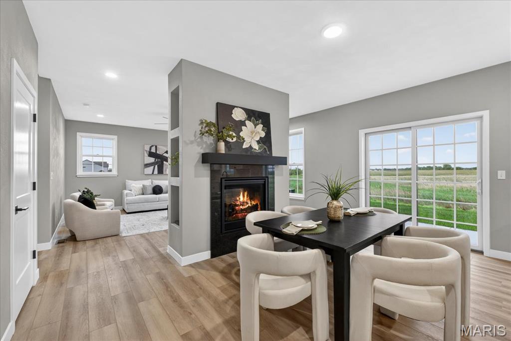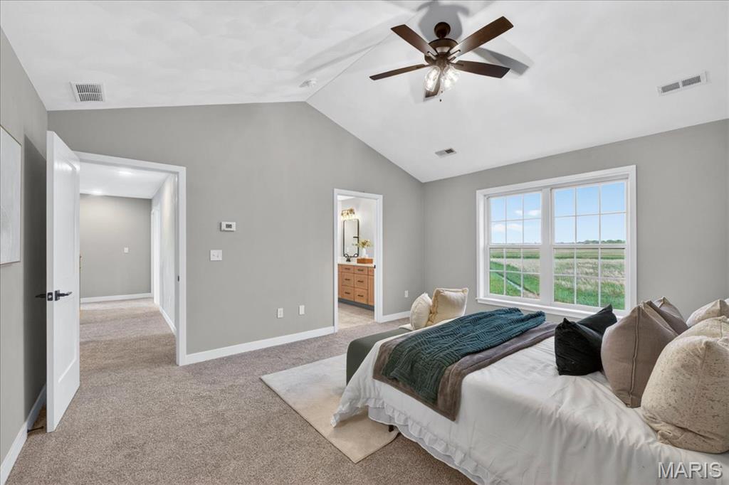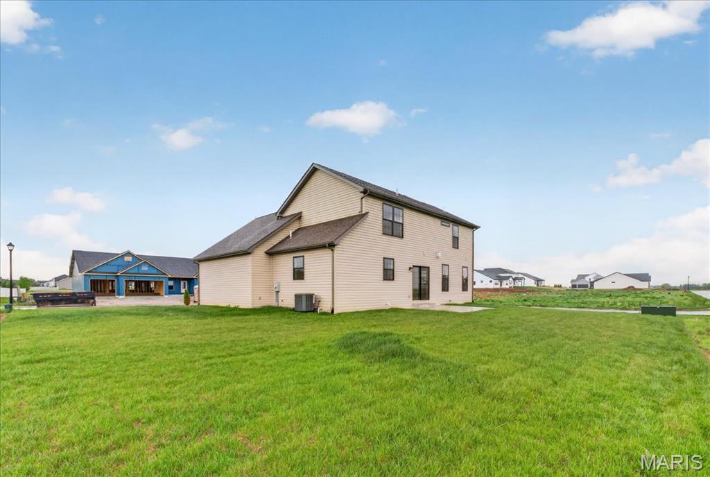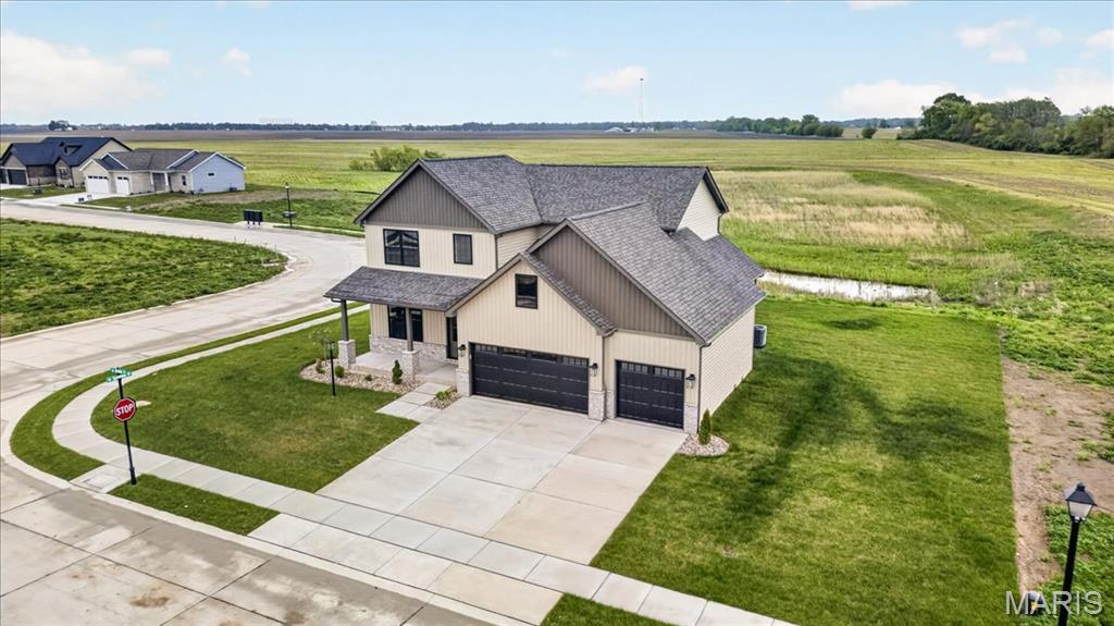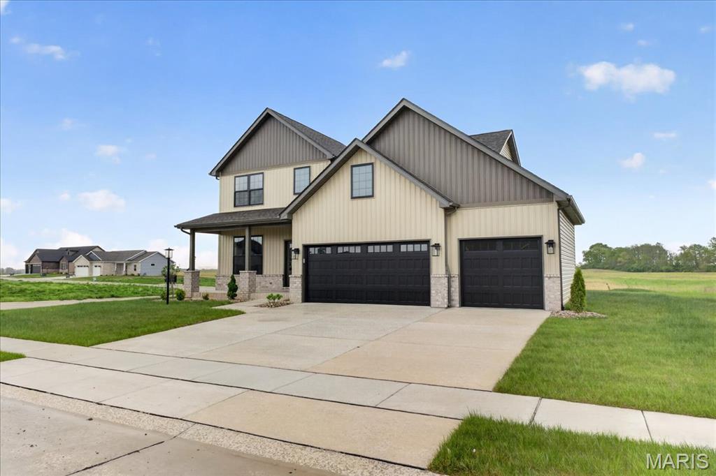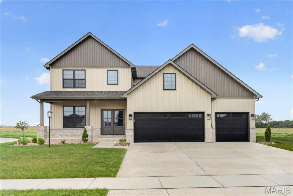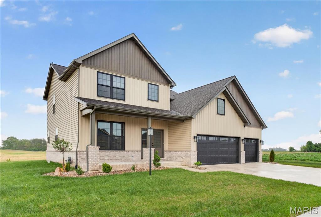 Move-in ready high-end new construction in Glen Carbon’s Savannah Crossing – 3 bedrooms, 2.5 bathrooms, 3-car garage, executive office, designer finishes, gourmet kitchen, walk-through pantry, and patio. Welcome to The Banker by premier builder HBD Homes, offered for the first time in Edwardsville School District’s most popular neighborhood, showcases elevated design, exceptional craftsmanship, and premium materials for above-and-beyond energy efficiency and carefree living. This is not your average new construction. A gorgeous double front door ushers you into a two-story foyer, graced by French doors to the private office. The main living space features a see-through fireplace separating the living and dining rooms, creating warmth and definition. The gourmet kitchen boasts granite countertops, custom cabinetry, a center island, and a premium stainless steel appliance package. The star of the space is the incredible walk-through pantry—both beautiful and practical, with abundant storage. A designer powder room and mudroom with drop zone complete the main level. Upstairs, the luxurious primary suite includes dual vanities, a walk-in shower, a private water closet, and a custom designed walk-in closet. Two additional bedrooms, a full bath, and an upstairs laundry room make everyday living effortless. The unfinished basement includes an egress window and rough-in for a future bath, with builder finish options available. Located on a corner lot just steps from the MCT Bike Trail. Call today for extensive list of features and a private tour.