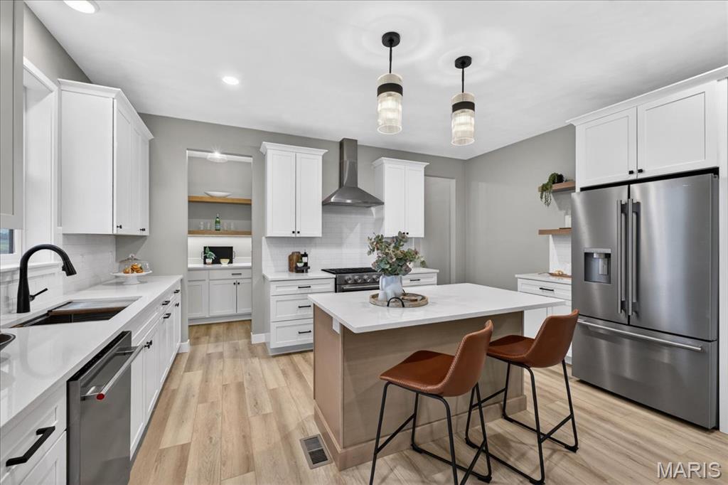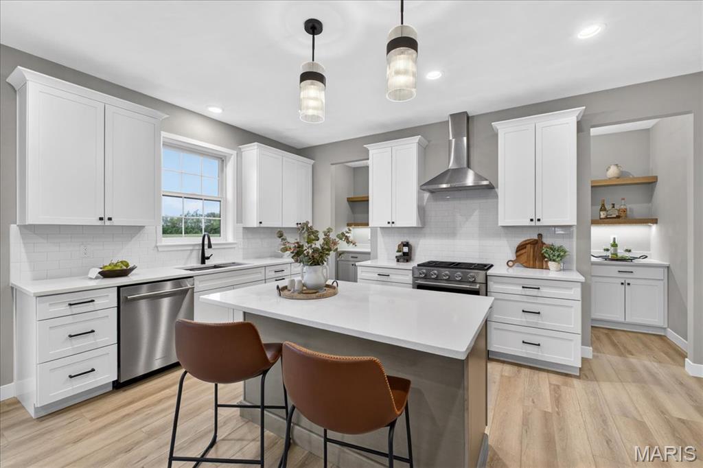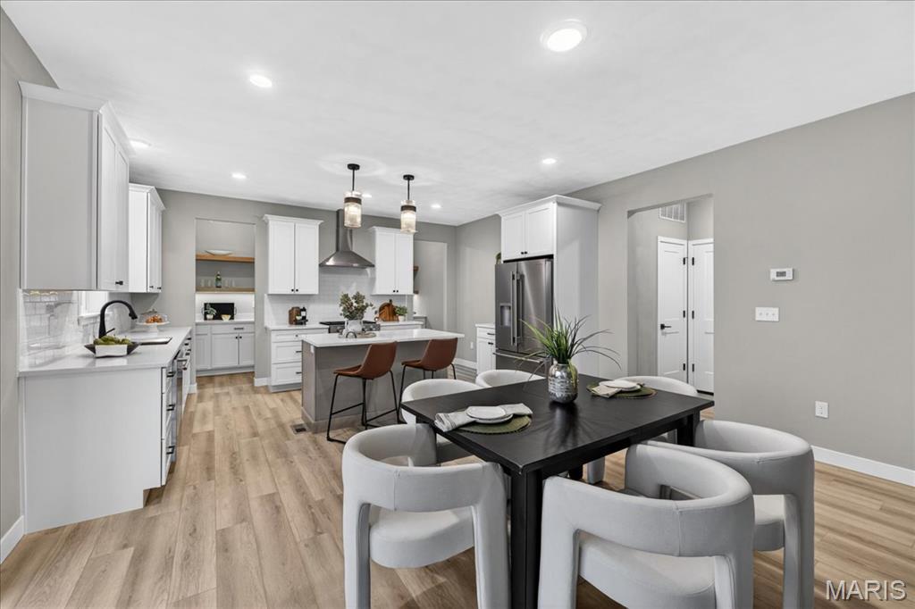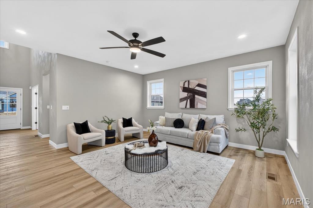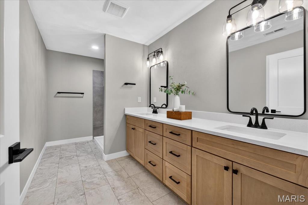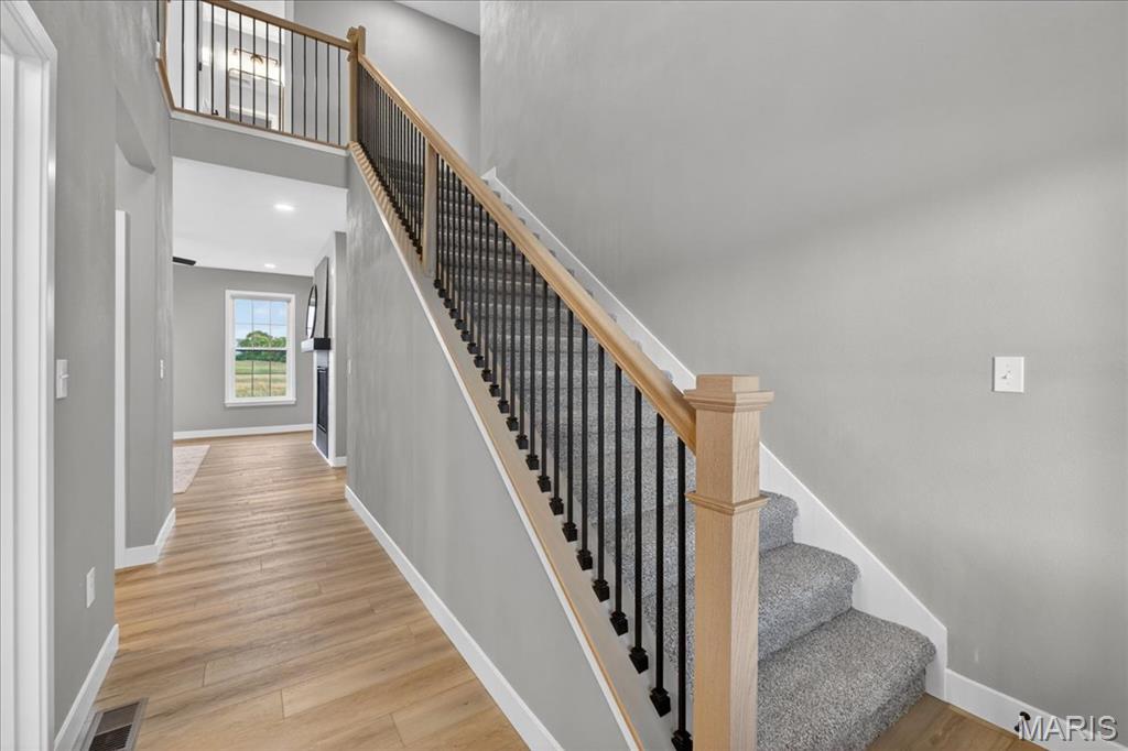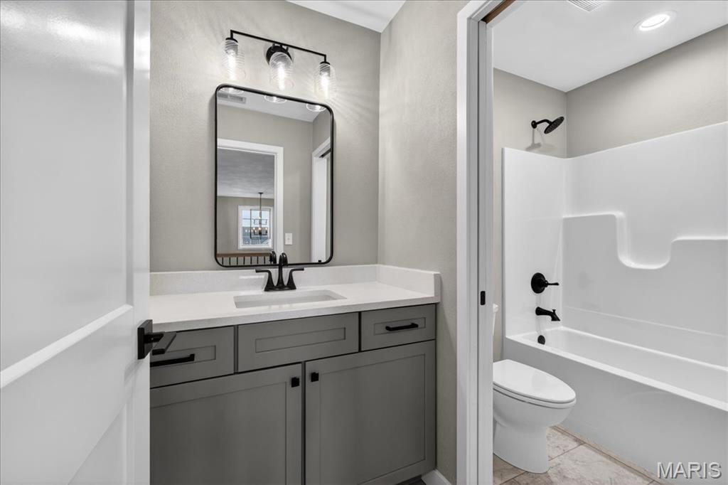 Move-in ready high-end new construction in Glen Carbon’s Savannah Crossing – 3 bedrooms, 2.5 bathrooms, 3-car garage, executive office, designer finishes, gourmet kitchen, walk-through pantry, and patio. Welcome to The Banker by premier builder HBD Homes, offered for the first time in Edwardsville School District’s most popular neighborhood, showcases elevated design, exceptional craftsmanship, and premium materials for above-and-beyond energy efficiency and carefree living. This is not your average new construction. A gorgeous double front door ushers you into a two-story foyer, graced by French doors to the private office. The main living space features a see-through fireplace separating the living and dining rooms, creating warmth and definition. The gourmet kitchen boasts granite countertops, custom cabinetry, a center island, and a premium stainless steel appliance package. The star of the space is the incredible walk-through pantry—both beautiful and practical, with abundant storage. A designer powder room and mudroom with drop zone complete the main level. Upstairs, the luxurious primary suite includes dual vanities, a walk-in shower, a private water closet, and a custom designed walk-in closet. Two additional bedrooms, a full bath, and an upstairs laundry room make everyday living effortless. The unfinished basement includes an egress window and rough-in for a future bath, with builder finish options available. Located on a corner lot just steps from the MCT Bike Trail. Call today for extensive list of features and a private tour.