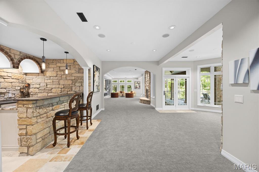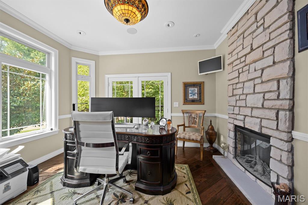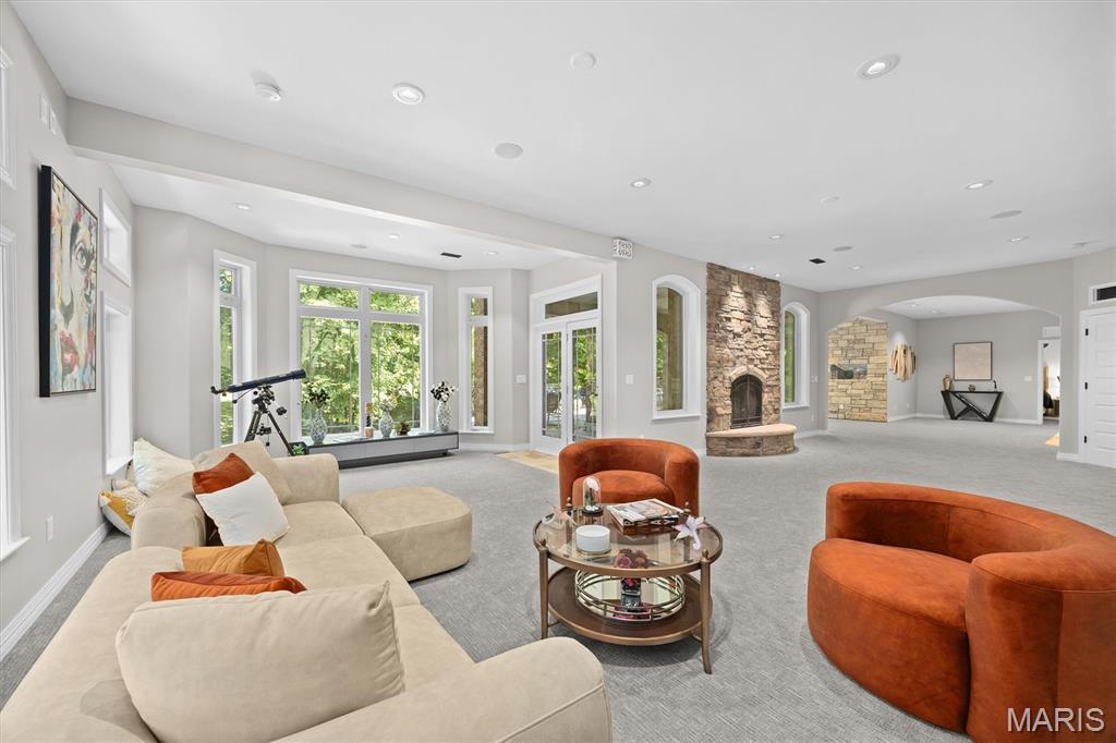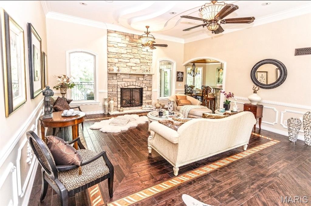 Welcome to a Mediterranean jewel where timeless craftsmanship meets modern refinement.Nestled on .82 acres, this estate offers more than 5000 sq. ft of luxurious living framed by stone and brick architecture. Recent enhancements include$90K in updates! Renewal of the private pond with stone-scaping and barrier liner, a fully rebuilt retaining wall, and a new roof installed in 2025. The LL completed in late 2024, creates an entertainment retreat with a custom bar, theater, wine cellar, and walkout to stone terraces overlooking the pond. Inside, soaring ceilings and 7 fireplaces complement finishes of mahogany, pine, and oak woods paired with granite, marble, and travertine. Barely lived in, the home glows with natural light morning sun brightens the back while golden sunsets grace the front. A 3 car garage $20,000.00 car lifts included. Expansive grounds and refined details throughout this residence presents a rare opportunity for those who value elegance and extraordinary living.