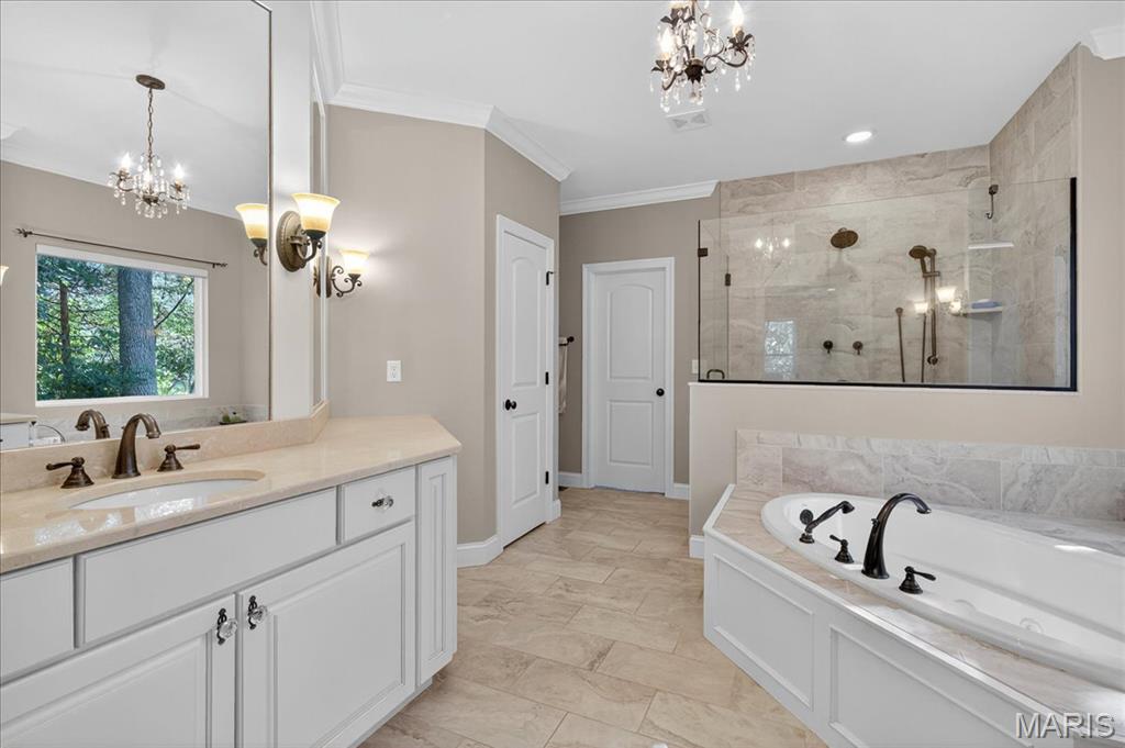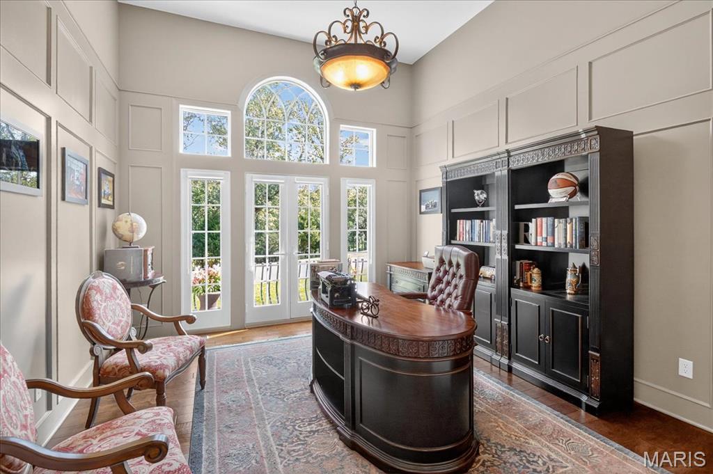 This residence is an elite, custom-crafted masterpiece—in prestigious Meridien. Poised on a 2.37-acre lot, this 10-year-new 1.5-story exudes grandeur through intricate, rich millwork, soaring architectural ceilings & floor-to-ceiling windows that wrap the interiors in natural light—features rare & irreplaceable in today’s era of conventional, quick builds. Expert, robust construction by Greg Sommerhof partnered with Nick Godat’s timeless architecture design deliver an exquisite and sophisticated living experience. The great room is a gallery of breathtaking views, framing the private, peaceful pool and backyard while the gourmet kitchen showcases a grand island, high-end stainless appliances & seamless, open flow to the elegant great room, hearth room, breakfast nook & screened porch. The main-floor primary suite is a private sanctuary, featuring a comforting fire place, sculpted cove ceiling & spa-inspired bath. A striking study, with soaring ceilings, French doors & Juliet balcony, spans primary & upper levels. Upstairs are 3 large bedrooms—plus a bonus room. The finished walkout lower level offers a vast rec room, 5th bedroom, wet bar, full bath & dramatic indoor gym crowned by lofty ceilings & an indoor basketball hoop—all opening directly to the lush pool terrace, outdoor fireplace & patio. The oversized 4.5-car garage fits 5 vehicles, catering to car enthusiasts. All this in Award-winning Rockwood Schools. Truly a rare and exceptional opportunity!