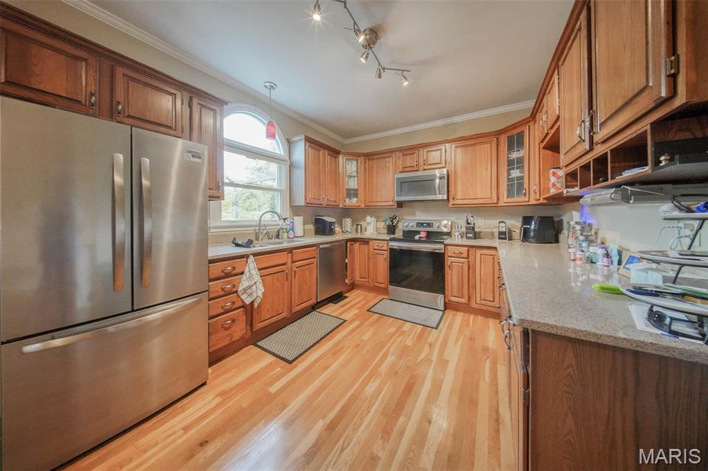 Exceptional 5-Bedroom, 3.5-Bath Home on Over 1.3 Acres in Peaceful College Hills - nestled on 1.363 acres m/l just outside the Rolla City Limits! Boasting over 3,400 sq ft of beautifully designed living space, this property offers space, comfort, & style. The main level greets you with a striking entryway & grand staircase. Enjoy a spacious dining room, an expansive family room, & a chef’s kitchen complete with granite countertops, a large pantry, stainless steel appliances—including newer refrigerator & dishwasher—& a charming breakfast room. A bright sunroom opens to a large back deck, ideal for entertaining or relaxing. The main-level primary suite offers a peaceful retreat with a walk-in closet & a luxurious en-suite featuring a freestanding soaker tub, custom tile shower, & double vanity. A shared sitting room upstairs leads to 3 spacious bedrooms & a full bathroom. Downstairs recreation room, office space, the 5th bedroom, & a full bathroom complete the layout. New siding offers easy maintenance and peace of mind. Don't miss this opportunity, schedule your private showing today!