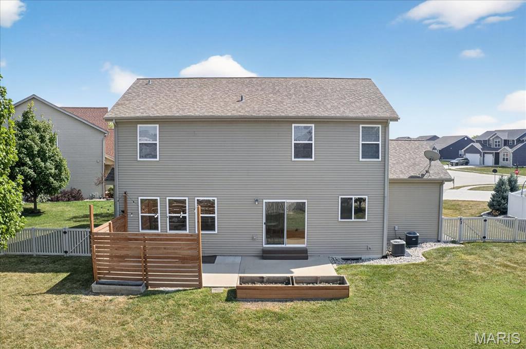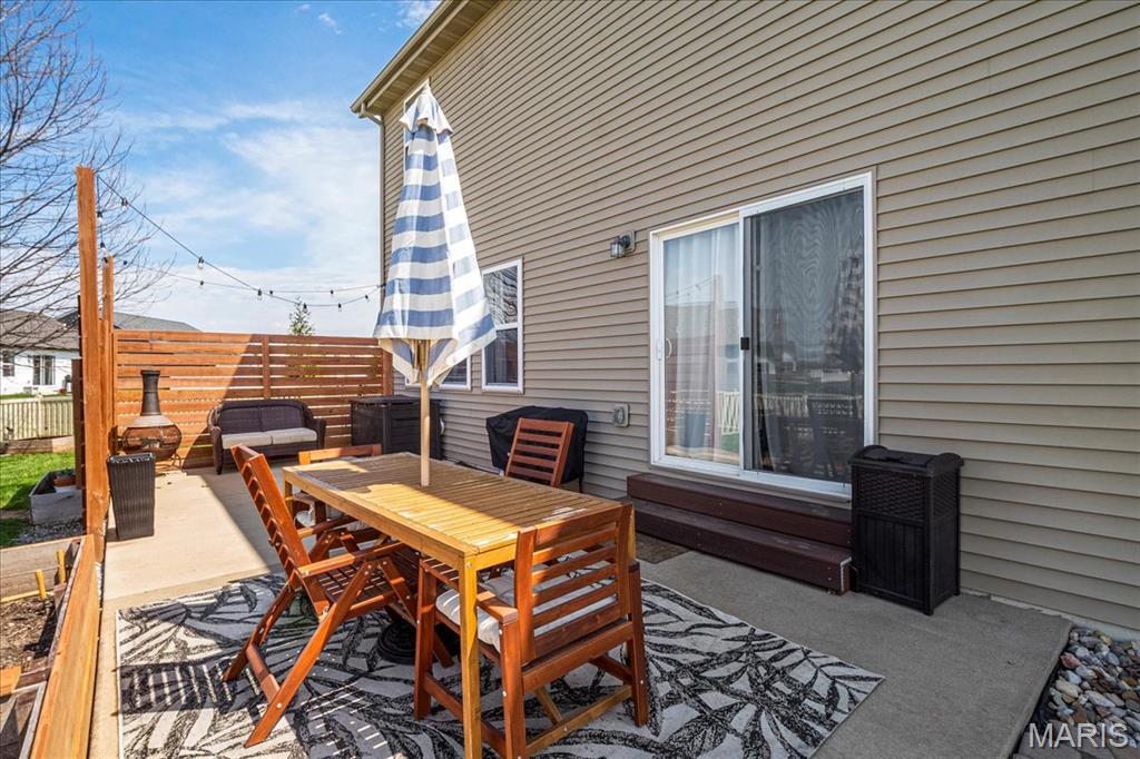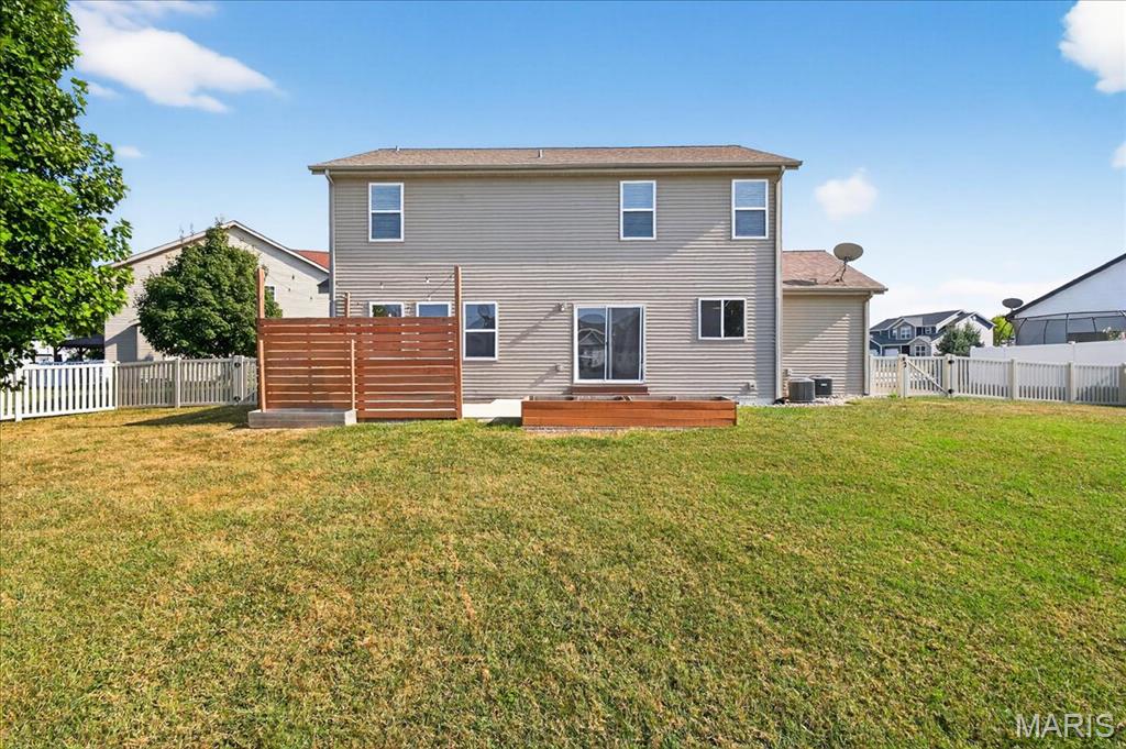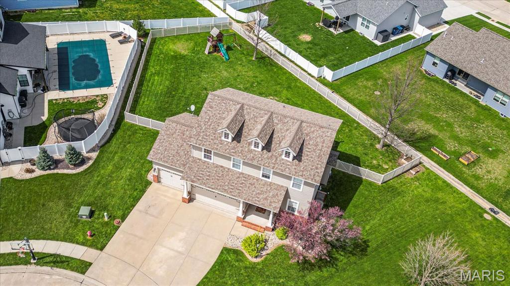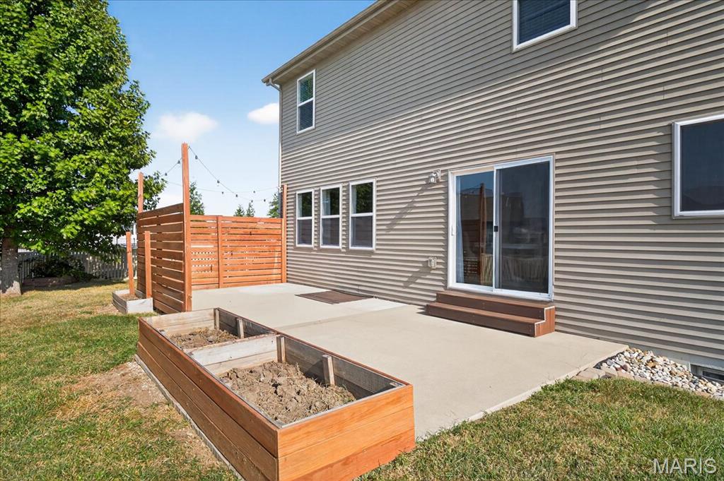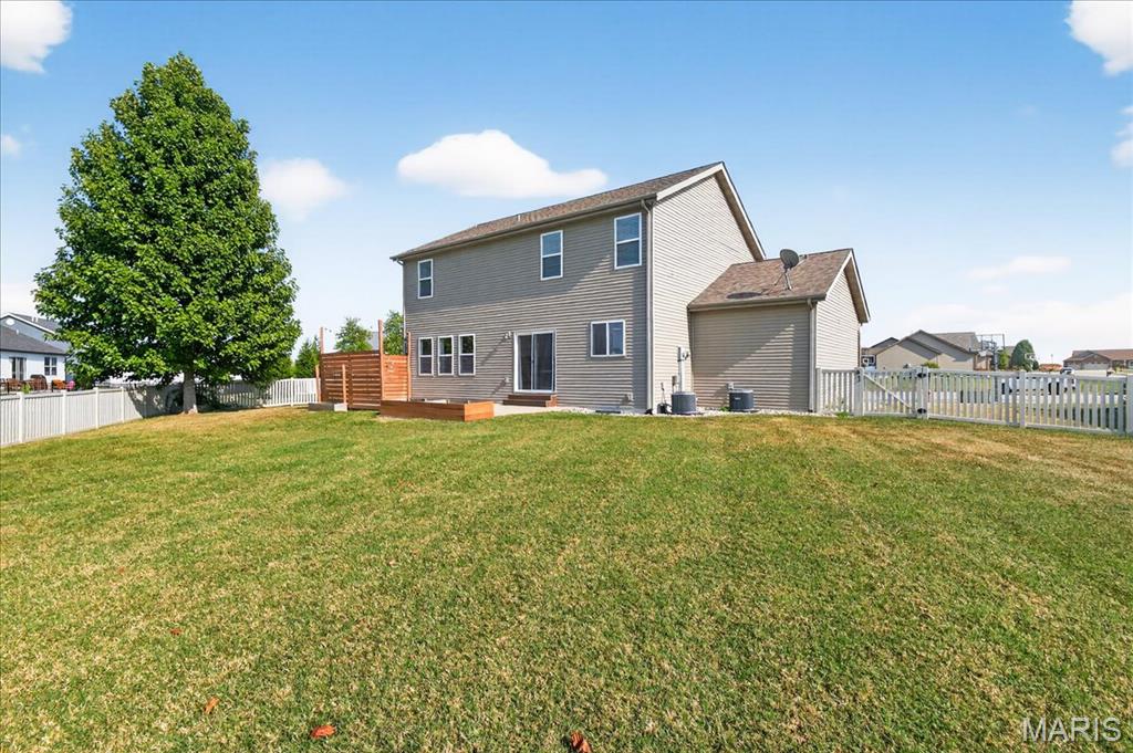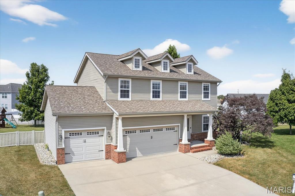 Welcome to your dream home! This beautifully maintained 3-bedroom, 4-bathroom, 3-car garage home is nestled on a spacious, well-landscaped lot in a peaceful cul-de-sac. From the charming curb appeal to the thoughtfully updated interiors, this home is truly move-in ready. The kitchen has granite countertops, stainless steel appliances, an island with seating. Adjacent is a cozy outdoor patio with privacy fencing and string lights, ideal for dining al fresco or relaxing by a chiminea on cool evenings. This beauty features 3 bedrooms and 4 bathrooms, with a bright foyer that leads to an eat-in kitchen equipped with stainless steel appliances, granite countertops, and views of the fenced-in backyard. Upstairs, you'll find bedrooms with walk-in closets, including a master suite with a tray ceiling along with an updated bathroom featuring heated tile floors, a modern freestanding soaking tub, a glass-enclosed walk-in shower with herringbone tile detail, and dual vanities with elegant fixtures and lighting. The laundry room is conveniently located on the second-floor!! The partially finished basement offers a play area along with a bonus (office) room and additional storage. Enjoy the fantastic location of this home—don't miss your chance! Conveniently located near shopping and Madison County bike trails and Scott afb . Contact your favorite agent today to schedule a showing.