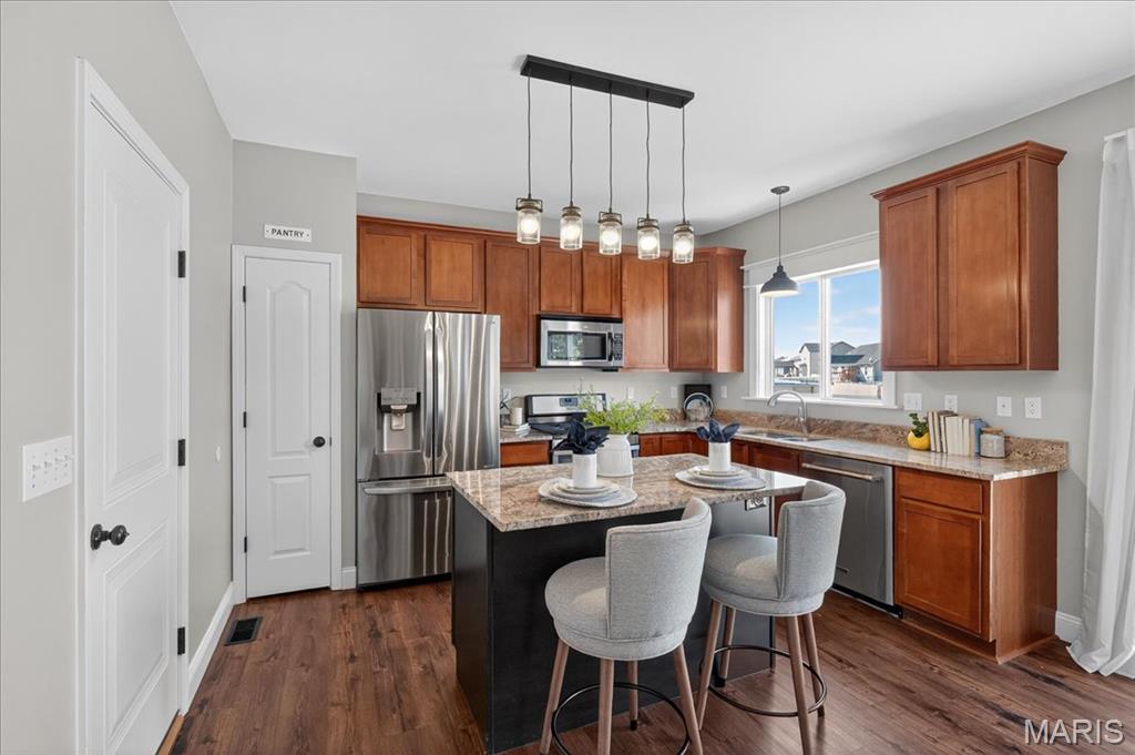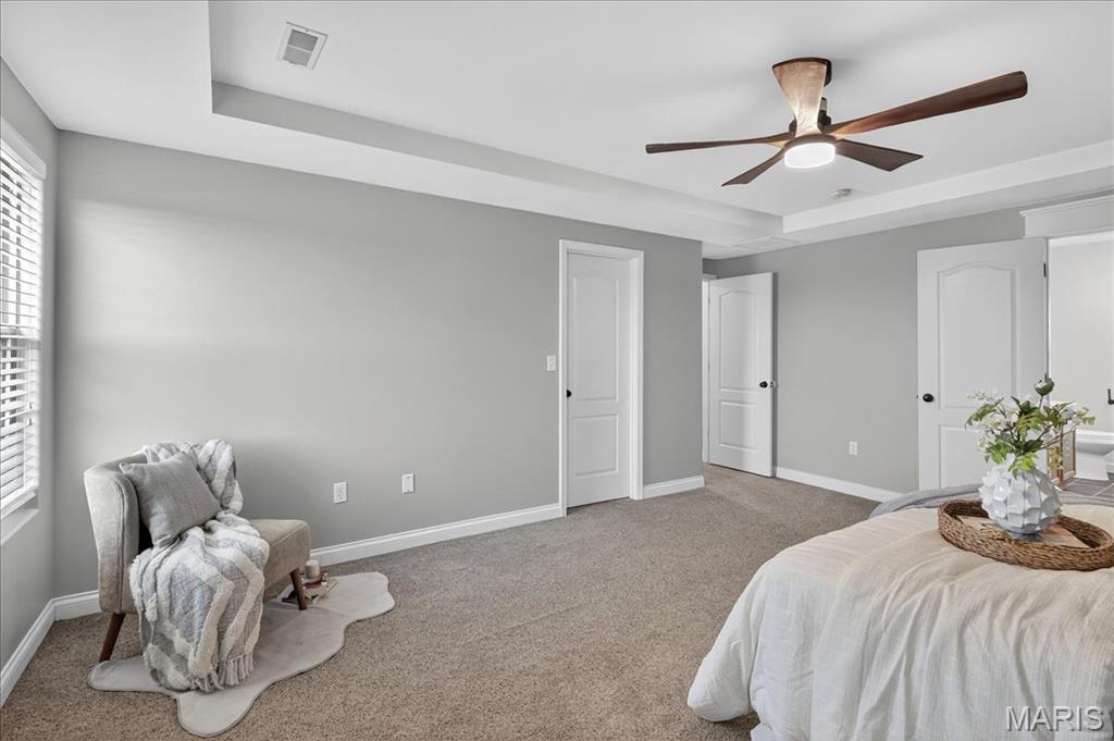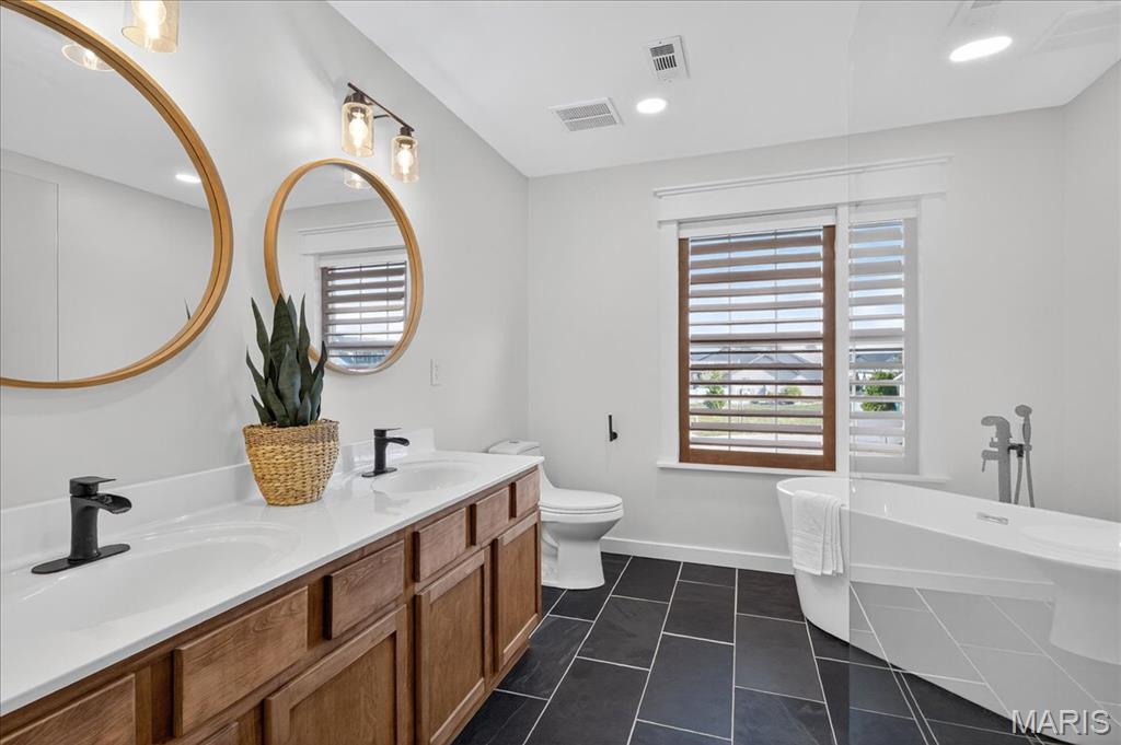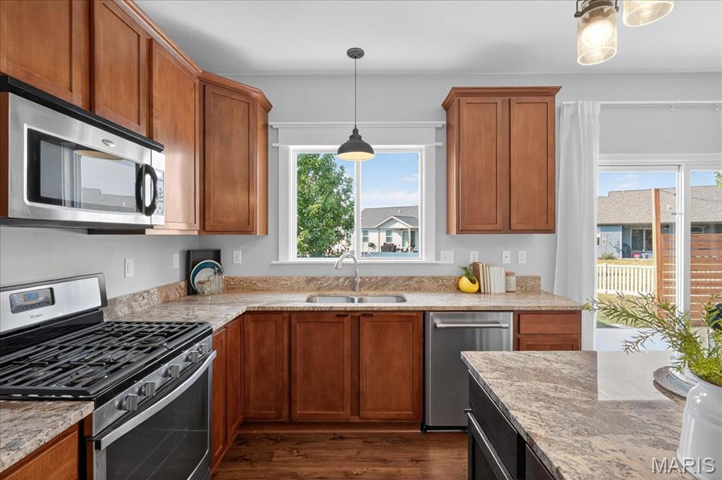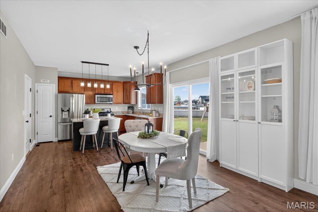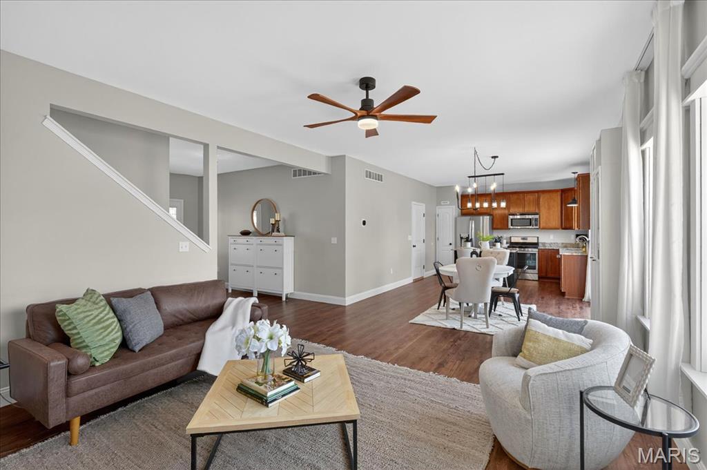 Welcome to your dream home! This beautifully maintained 3-bedroom, 4-bathroom, 3-car garage home is nestled on a spacious, well-landscaped lot in a peaceful cul-de-sac. From the charming curb appeal to the thoughtfully updated interiors, this home is truly move-in ready. The kitchen has granite countertops, stainless steel appliances, an island with seating. Adjacent is a cozy outdoor patio with privacy fencing and string lights, ideal for dining al fresco or relaxing by a chiminea on cool evenings. This beauty features 3 bedrooms and 4 bathrooms, with a bright foyer that leads to an eat-in kitchen equipped with stainless steel appliances, granite countertops, and views of the fenced-in backyard. Upstairs, you'll find bedrooms with walk-in closets, including a master suite with a tray ceiling along with an updated bathroom featuring heated tile floors, a modern freestanding soaking tub, a glass-enclosed walk-in shower with herringbone tile detail, and dual vanities with elegant fixtures and lighting. The laundry room is conveniently located on the second-floor!! The partially finished basement offers a play area along with a bonus (office) room and additional storage. Enjoy the fantastic location of this home—don't miss your chance! Conveniently located near shopping and Madison County bike trails and Scott afb . Contact your favorite agent today to schedule a showing.