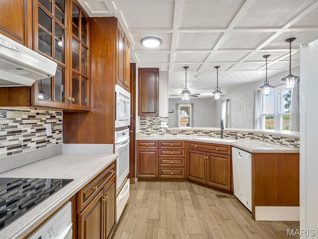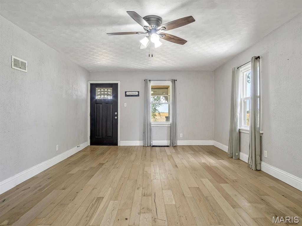 Welcome to this charming country home just outside Okawville! This 2 bedroom, 1 bathroom property offers a blend of modern updates and small-town comfort. Step inside to a bright open living area with updated flooring, neutral paint, and ceiling fans throughout. The kitchen features custom cabinetry, tile backsplash, breakfast bar seating, and matching appliances. Bedrooms are spacious with natural light, and the full bath includes updated vanity and storage. The basement provides great potential with partially finished rooms, mechanical updates, and extra storage. Outdoors you’ll find mature trees, a patio for entertaining, and an additional shed at the back of the property — perfect for storage. A 2-car attached garage and extended driveway complete the package. Conveniently located near I-64 for easy commutes while enjoying the peace of rural living. Move-in ready and waiting for you!