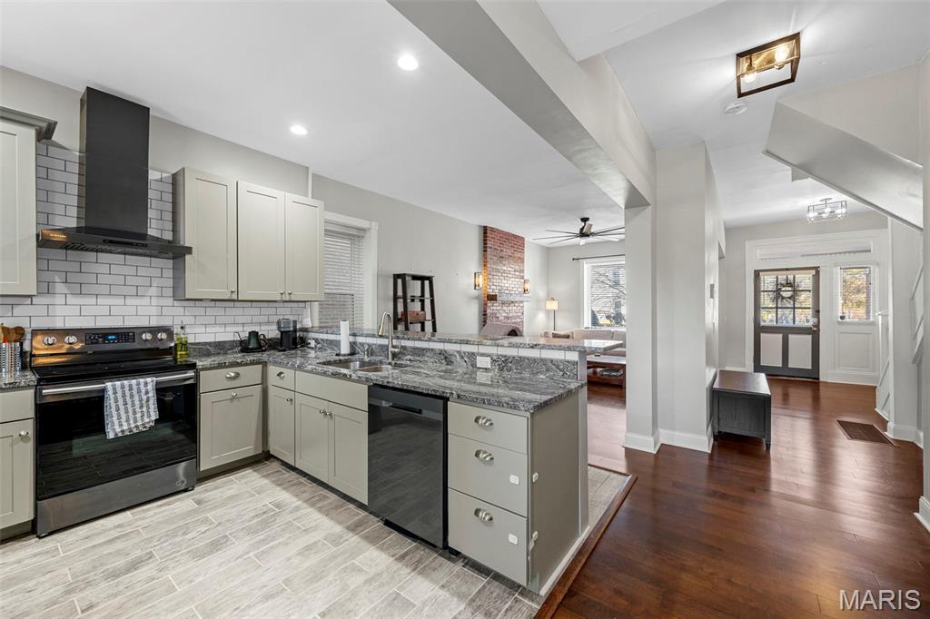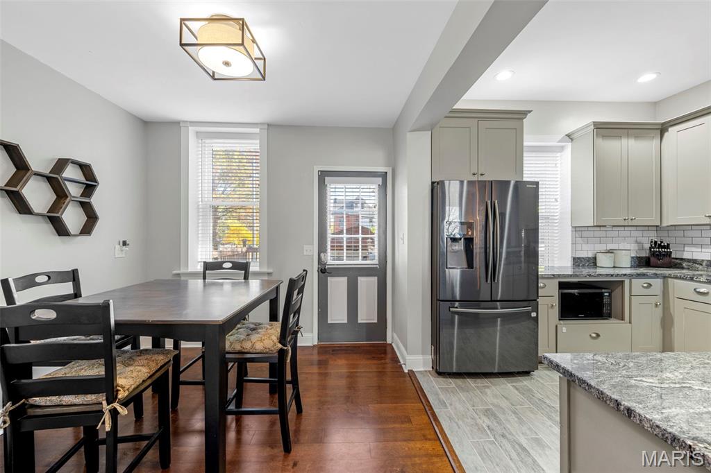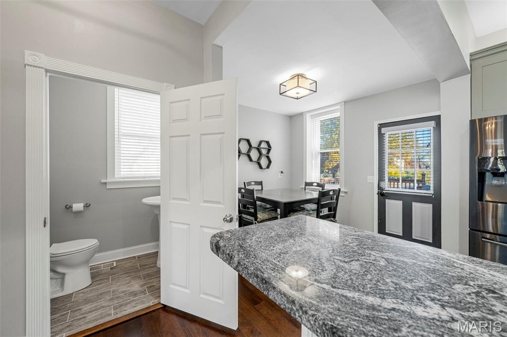 WOW, welcome to this historic and tastefully renovated Tower Grove beauty with charming curb appeal! Step inside to find a light-filled living room featuring beautiful hardwood floors throughout, creating a warm and inviting atmosphere. The open layout seamlessly connects the living room and kitchen, providing an ideal area for entertaining. The kitchen showcases granite countertops, breakfast bar, stylish subway tile backsplash, stainless appliances, and custom cabinetry. Kitchen opens to the dining area for easy gatherings. A convenient half bath completes the main level. Upstairs, the spacious primary suite offers a full private ensuite bathroom with dual sinks, a marble vanity and conveniently located laundry!! 2 additional bedrooms and a full bath complete the second floor. The third floor features an expansive room that could serve as a fourth bedroom, home office, game room, or family room. Enjoy the privacy of your fenced backyard and deck that leads to a 2 car carport. Located within walking distance to Tower Grove Park and many beloved St. Louis favorites, this home perfectly blends historic charm with modern comfort. BRAND NEW ROOF!!!