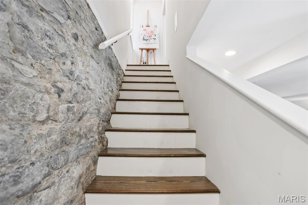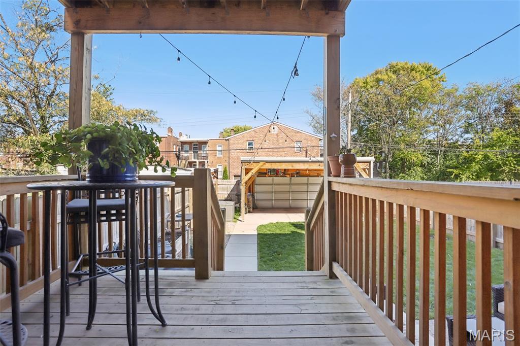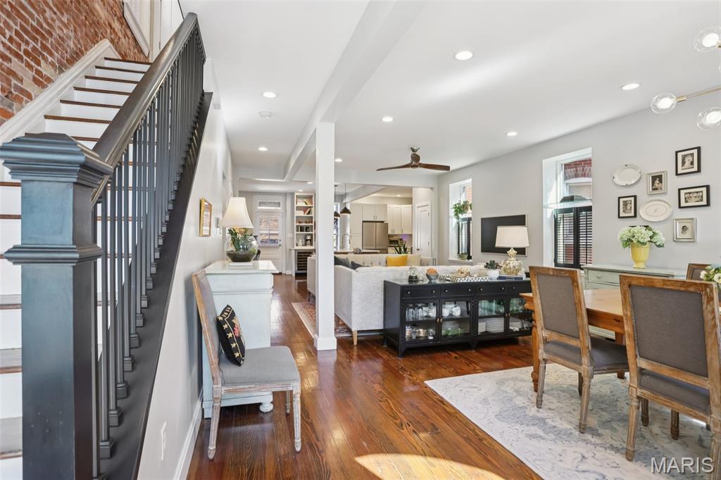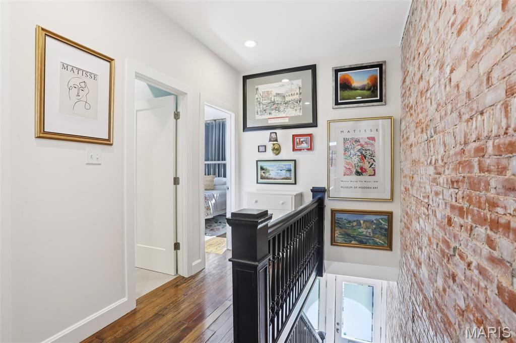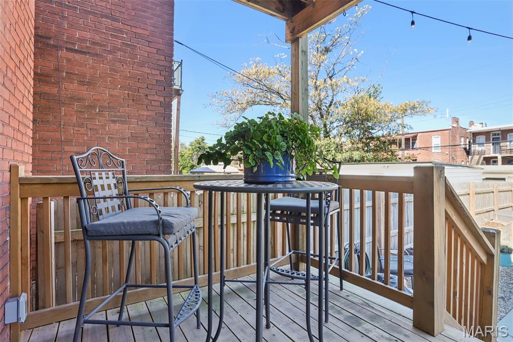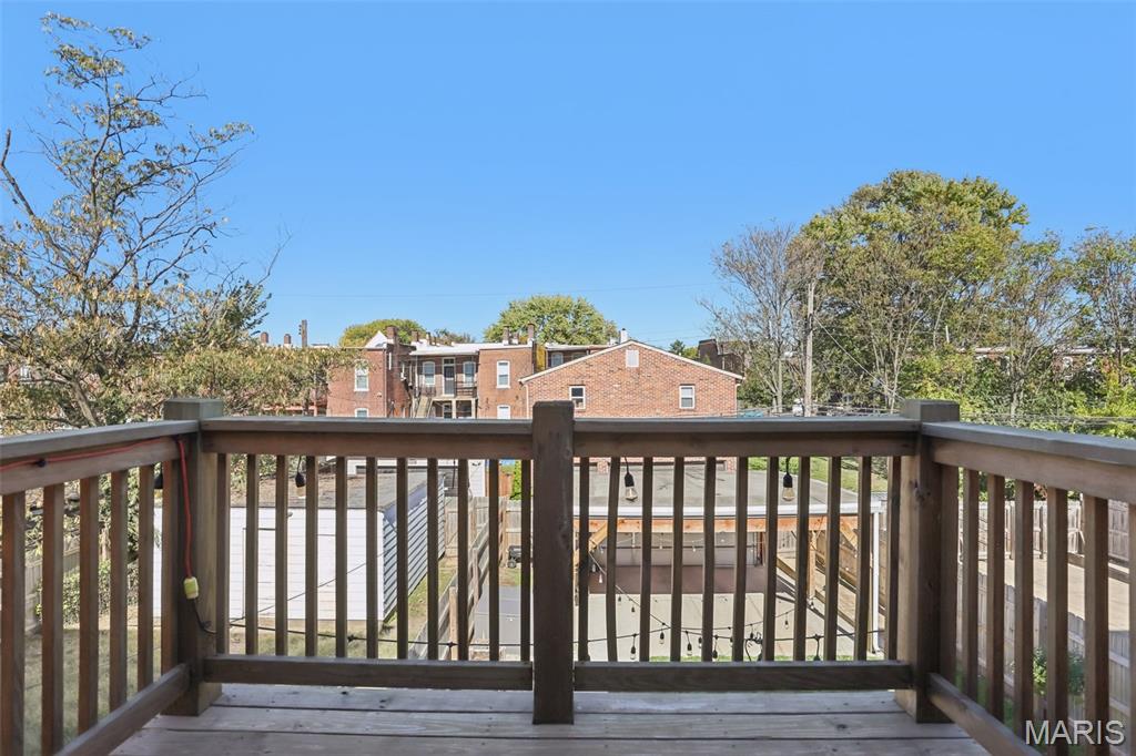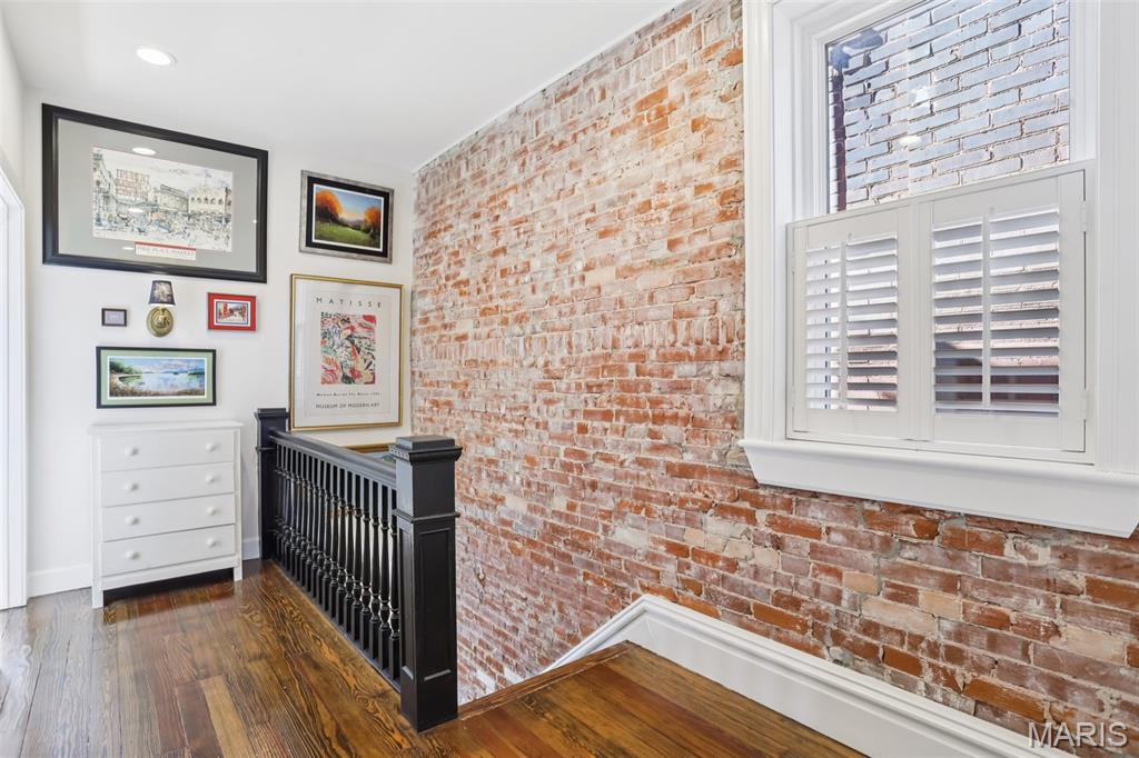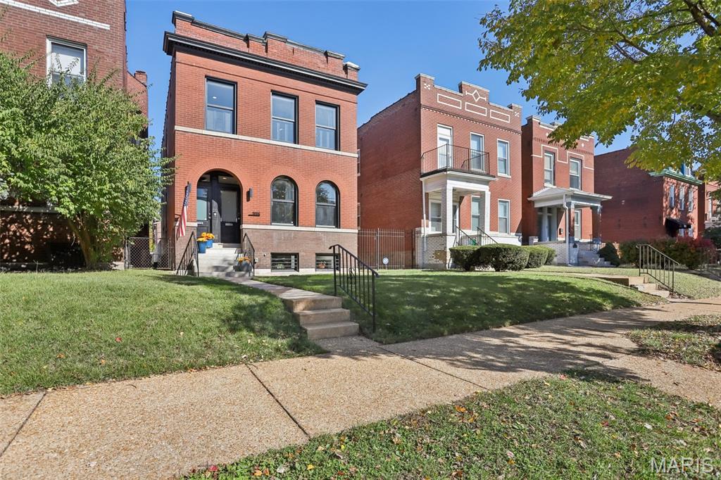 Get ready to be impressed. This beautiful fully renovated(2021) 2 family conversion has all you need for contemporary city living. Step through the front door and immediately notice the open floor plan with a dining area with fireplace, family room, half bathroom and eat in kitchen. Original hardwood floors, 9 ft ceiling, 68" tall windows with plantation shutters and recessed lighting span the main floor and second floors. The dining area has a sputnik chandelier and decorative fireplace with original tile and mantle.The kitchen has 42" cabinets with pull outs, quartz counters, hexagon tile backsplash, floating shelves, built-in shelves, SS appliances, professional style ventilation hood, 8'x3.5' center island with breakfast bar, beverage fridge, coffee nook, removeable banquette with custom cushions and a 5x3 walk-in pantry. Don't miss the half bathroom with floating vanity, quartz top and penny tile before making your way up the stairway with exposed brick wall to the second floor consisting of three bedrooms, a hall bathroom and laundry closet(washer and dryer included). The two secondary bedrooms both have decorative fireplaces. The sellers use one room as a study, the other for guests. The updated hall bathroom has a shower/soaking tub combo with penny tile surround, shower niche, tiled floor, newer fixtures, newer vanity quartz top and wood panels. The primary suite has a walk-in California closet, custom built in wardrobe with pull-outs, private 10'x8' balcony and updated full bathroom with a floating double vanity, quartz top, subway tiled shower with glass door and tile floor. The lower level has a large finished rec/family room with craft area, a workshop, utility room and conveniently walks up to the back patio. A dual sump pump system ensures you will have a dry lower level. Outside a 10'x8' deck with kitchen access overlooks the level and fenced in back yard. A two space carport with alley access allows for off street parking. The 2021 roof will give you years of protection from the elements. The home has passed the St. Louis City occupancy inspection as well. All this in one package is a fantastic value you don't want to miss. Refer to the features/updates list in the supplements for more noteworthy aspects of the property.