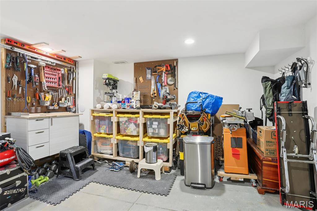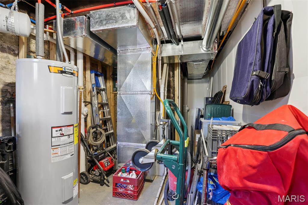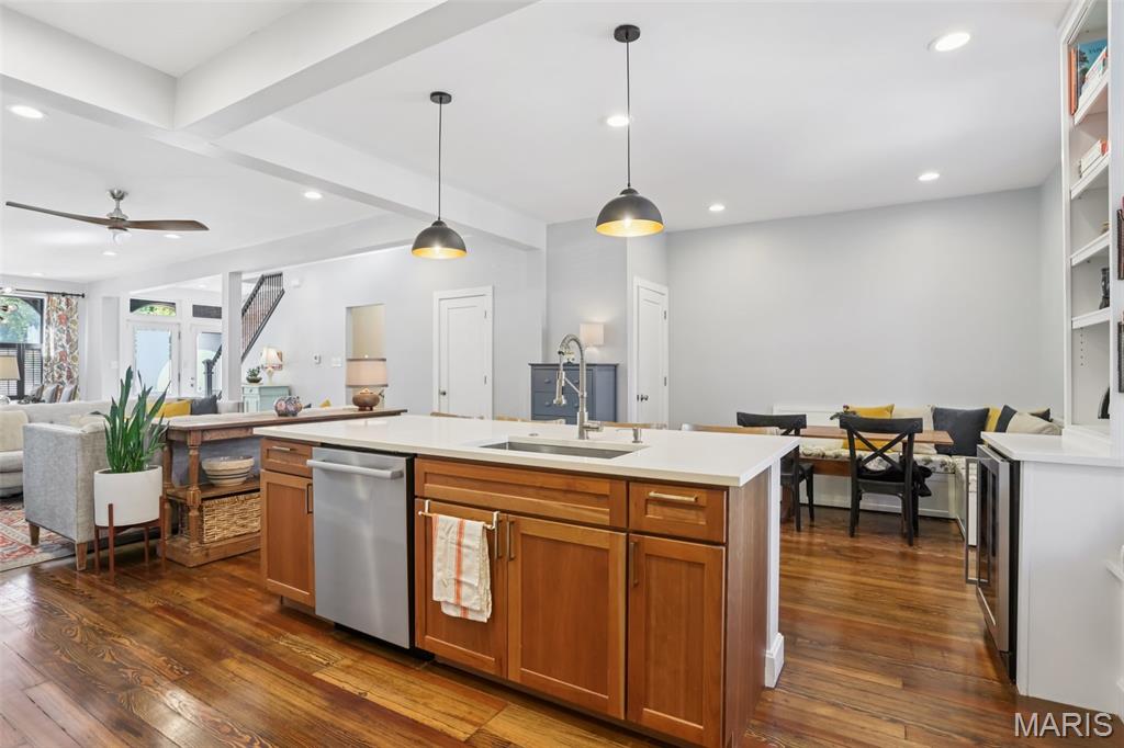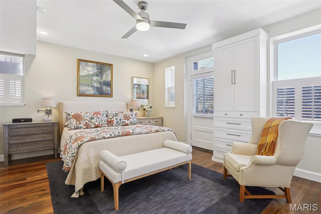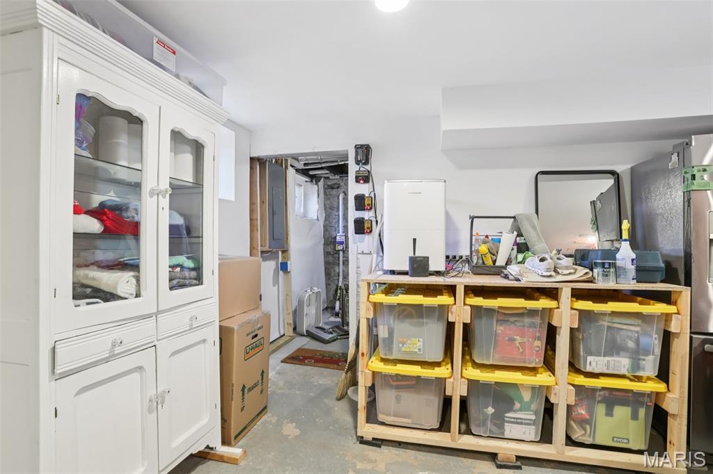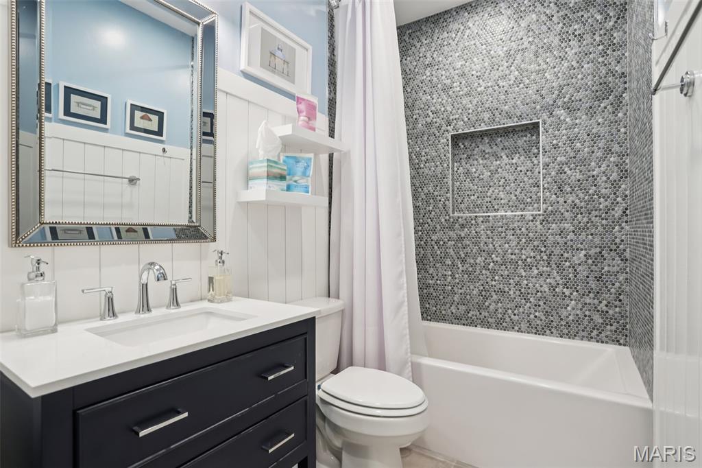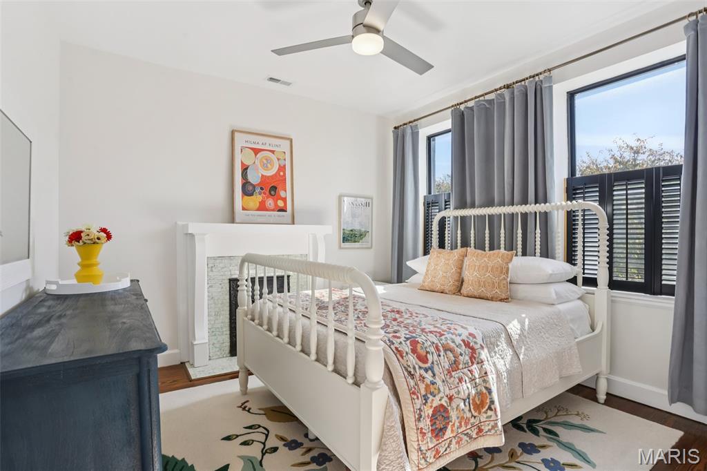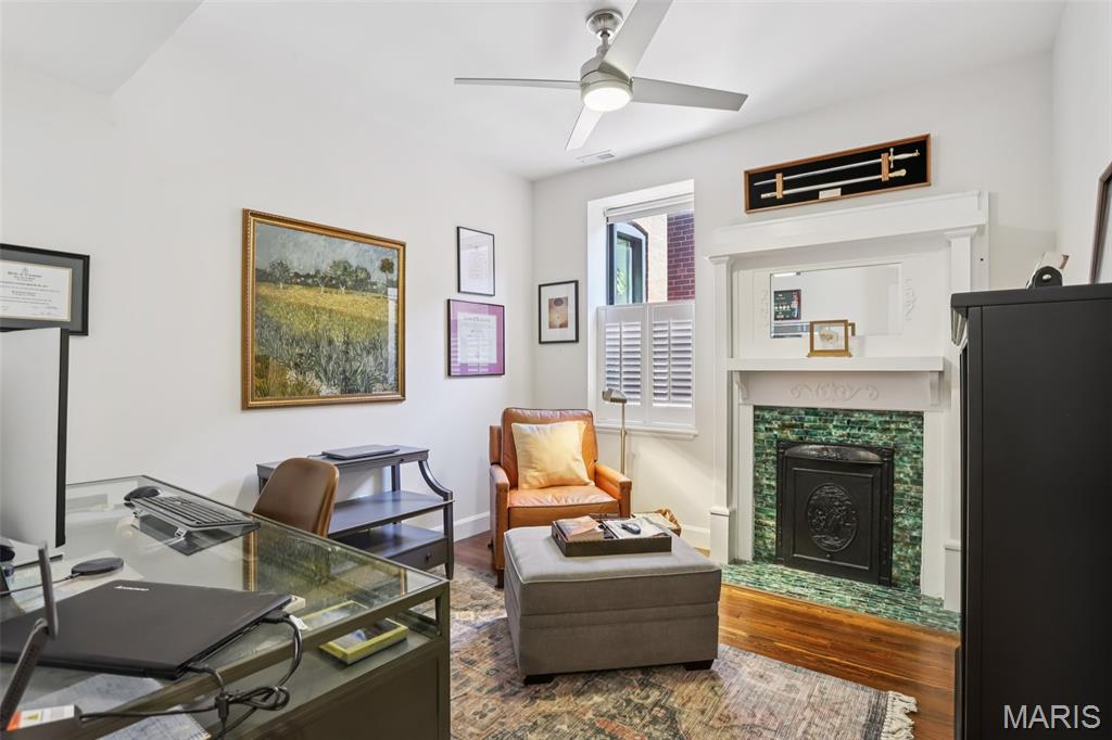 Get ready to be impressed. This beautiful fully renovated(2021) 2 family conversion has all you need for contemporary city living. Step through the front door and immediately notice the open floor plan with a dining area with fireplace, family room, half bathroom and eat in kitchen. Original hardwood floors, 9 ft ceiling, 68" tall windows with plantation shutters and recessed lighting span the main floor and second floors. The dining area has a sputnik chandelier and decorative fireplace with original tile and mantle.The kitchen has 42" cabinets with pull outs, quartz counters, hexagon tile backsplash, floating shelves, built-in shelves, SS appliances, professional style ventilation hood, 8'x3.5' center island with breakfast bar, beverage fridge, coffee nook, removeable banquette with custom cushions and a 5x3 walk-in pantry. Don't miss the half bathroom with floating vanity, quartz top and penny tile before making your way up the stairway with exposed brick wall to the second floor consisting of three bedrooms, a hall bathroom and laundry closet(washer and dryer included). The two secondary bedrooms both have decorative fireplaces. The sellers use one room as a study, the other for guests. The updated hall bathroom has a shower/soaking tub combo with penny tile surround, shower niche, tiled floor, newer fixtures, newer vanity quartz top and wood panels. The primary suite has a walk-in California closet, custom built in wardrobe with pull-outs, private 10'x8' balcony and updated full bathroom with a floating double vanity, quartz top, subway tiled shower with glass door and tile floor. The lower level has a large finished rec/family room with craft area, a workshop, utility room and conveniently walks up to the back patio. A dual sump pump system ensures you will have a dry lower level. Outside a 10'x8' deck with kitchen access overlooks the level and fenced in back yard. A two space carport with alley access allows for off street parking. The 2021 roof will give you years of protection from the elements. The home has passed the St. Louis City occupancy inspection as well. All this in one package is a fantastic value you don't want to miss. Refer to the features/updates list in the supplements for more noteworthy aspects of the property.