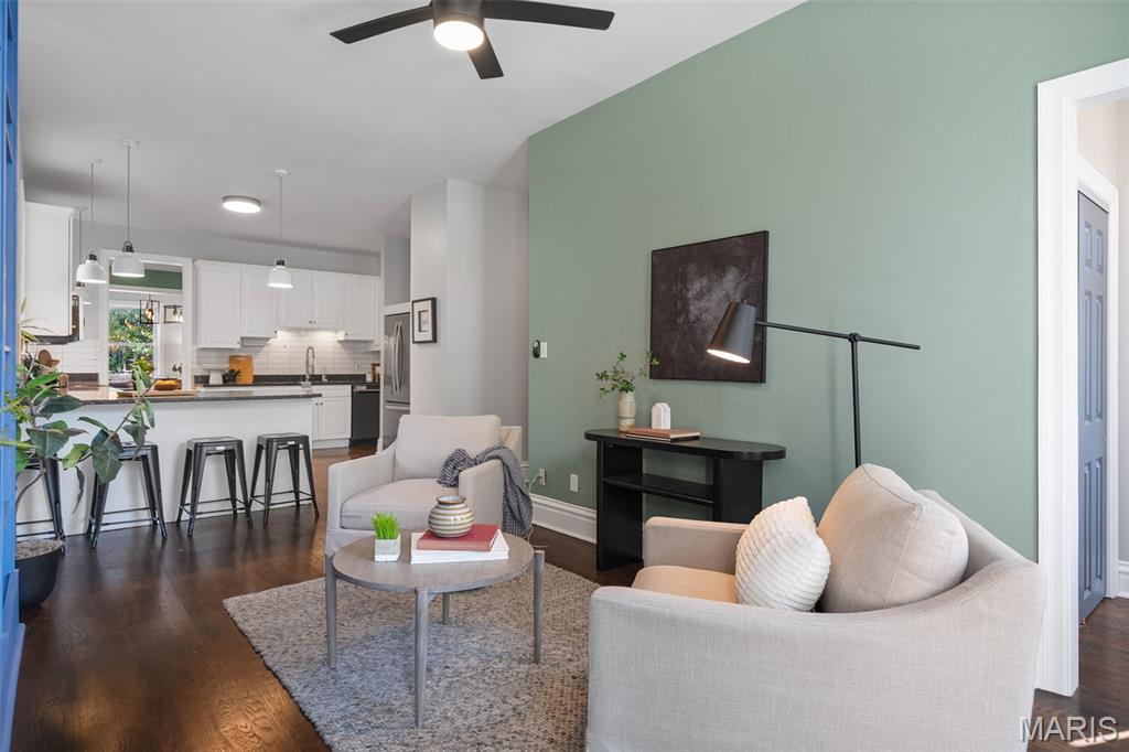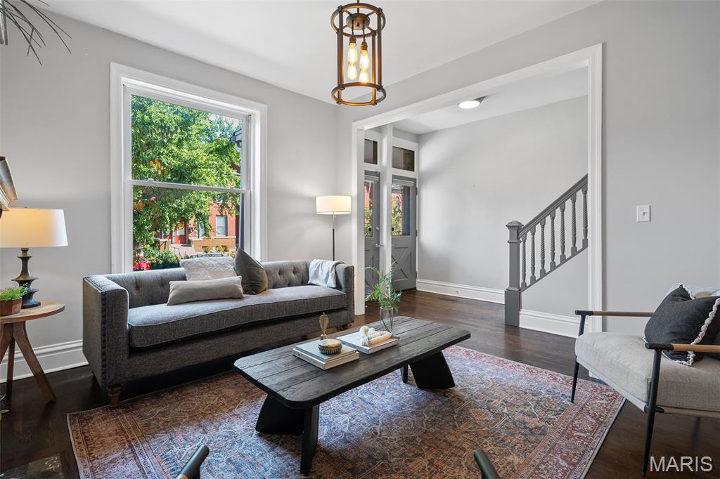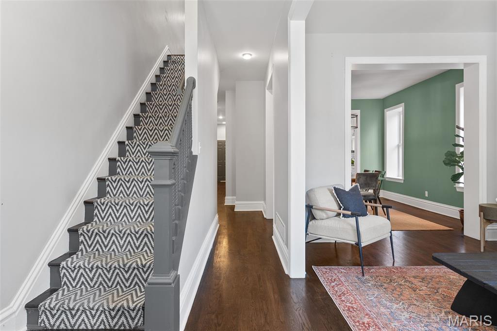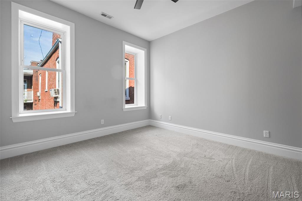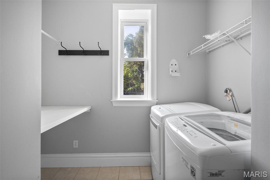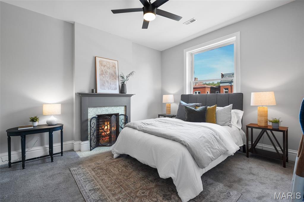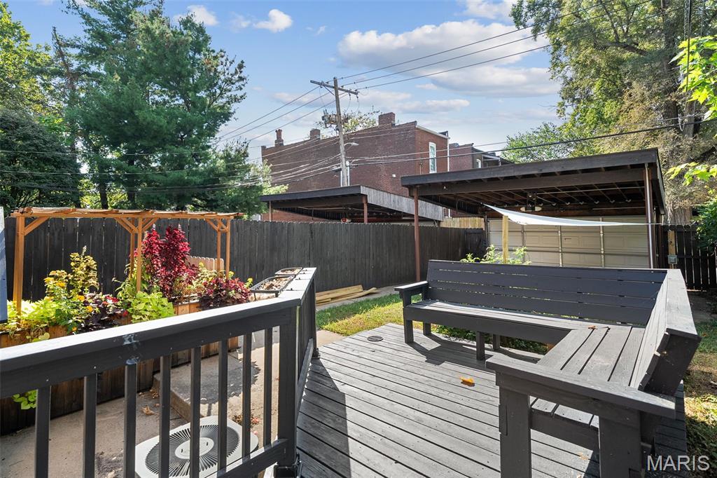 This 2,520 sf brick beauty in Tower Grove East delivers historic charm and modern updates in one of St. Louis’ most vibrant neighborhoods. A brand-new TPO flat roof (to be installed before closing, approx. $13k) adds peace of mind, while the rare detached two-car covered carport with remote-entry garage door makes parking effortless. Inside, soaring ceilings, oversized windows, and an open layout fill the home with natural light. The kitchen showcases granite counters, crisp white cabinetry with brass hardware, subway-tile backsplash, and a breakfast peninsula flowing into the family room with striking cobalt built-ins and access to a large rear deck and landscaped yard, ideal for entertaining. A formal dining room and elegant living room with decorative fireplace complete the main level. Upstairs, the primary suite offers a walk-in closet with custom organizer, double-bowl vanity, and spacious stand-up shower. Two additional bedrooms share a Jack-and-Jill bath, while a versatile loft opens to a front balcony perfect for morning coffee. A full walk-out basement provides abundant storage. Steps from Fox Park and minutes to South Grand dining and nightlife, this move-in-ready home blends timeless architecture with thoughtful upgrades for easy city living.