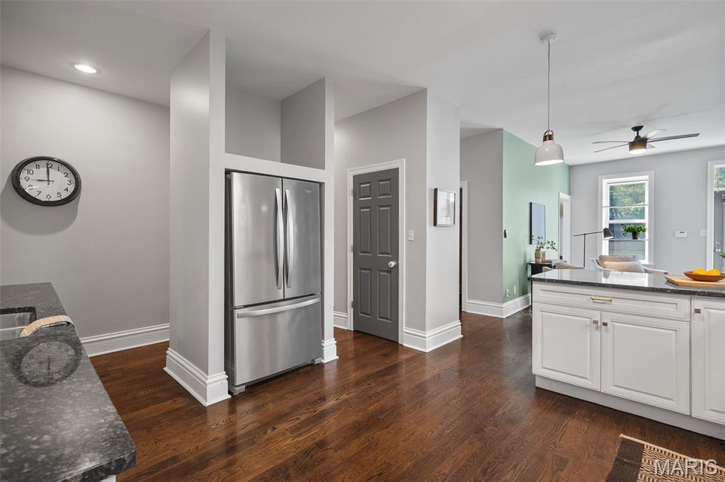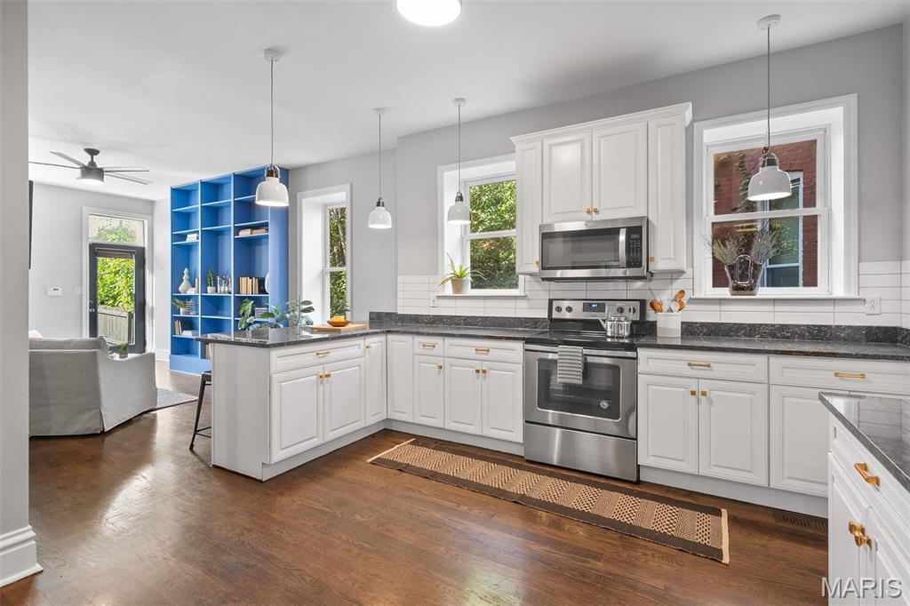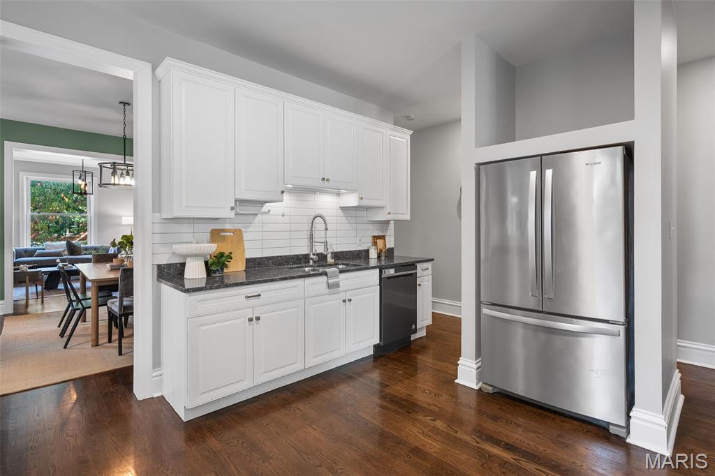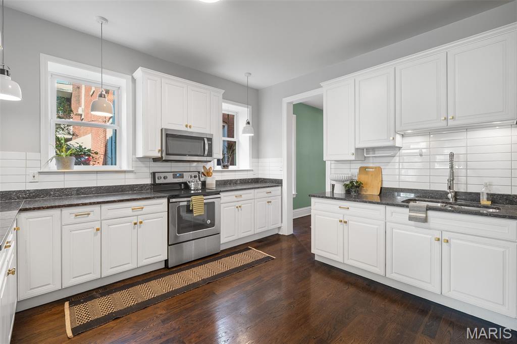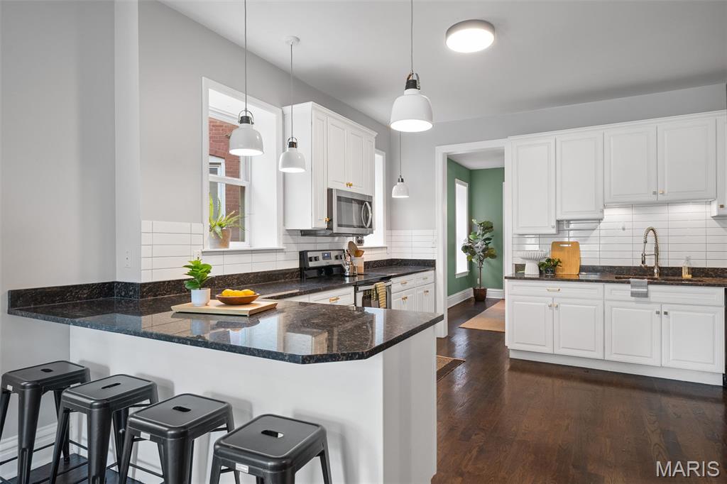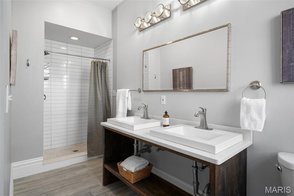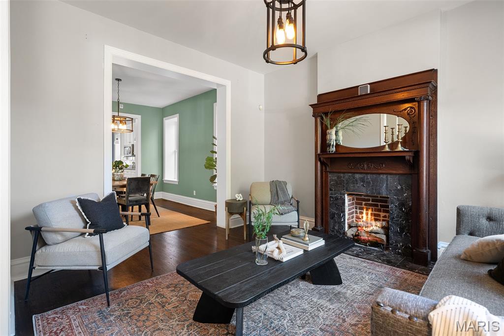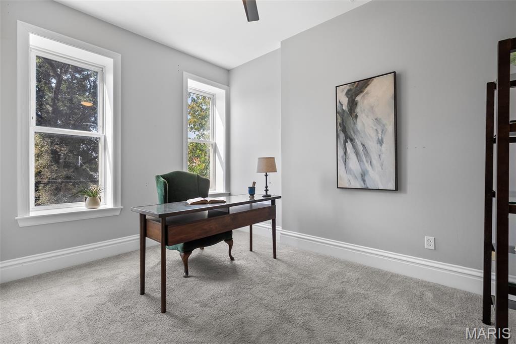 This 2,520 sf brick beauty in Tower Grove East delivers historic charm and modern updates in one of St. Louis’ most vibrant neighborhoods. A brand-new TPO flat roof (to be installed before closing, approx. $13k) adds peace of mind, while the rare detached two-car covered carport with remote-entry garage door makes parking effortless. Inside, soaring ceilings, oversized windows, and an open layout fill the home with natural light. The kitchen showcases granite counters, crisp white cabinetry with brass hardware, subway-tile backsplash, and a breakfast peninsula flowing into the family room with striking cobalt built-ins and access to a large rear deck and landscaped yard, ideal for entertaining. A formal dining room and elegant living room with decorative fireplace complete the main level. Upstairs, the primary suite offers a walk-in closet with custom organizer, double-bowl vanity, and spacious stand-up shower. Two additional bedrooms share a Jack-and-Jill bath, while a versatile loft opens to a front balcony perfect for morning coffee. A full walk-out basement provides abundant storage. Steps from Fox Park and minutes to South Grand dining and nightlife, this move-in-ready home blends timeless architecture with thoughtful upgrades for easy city living.