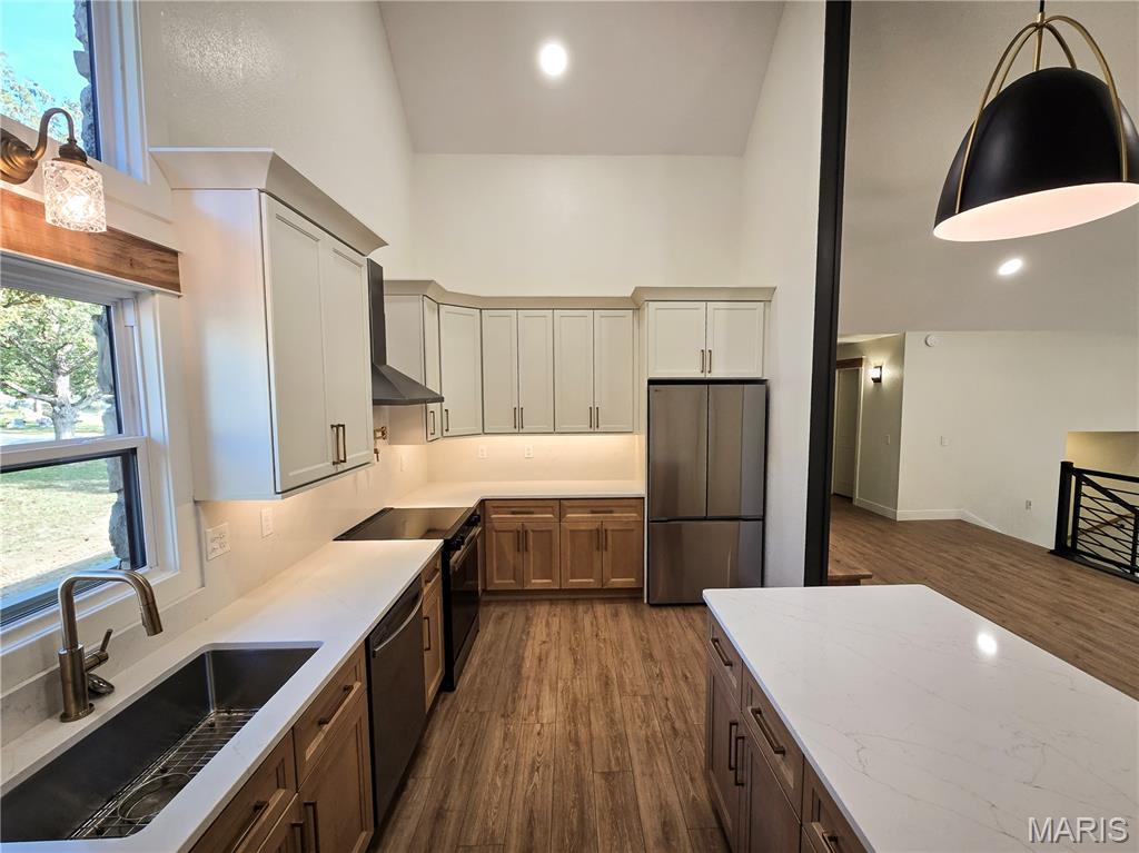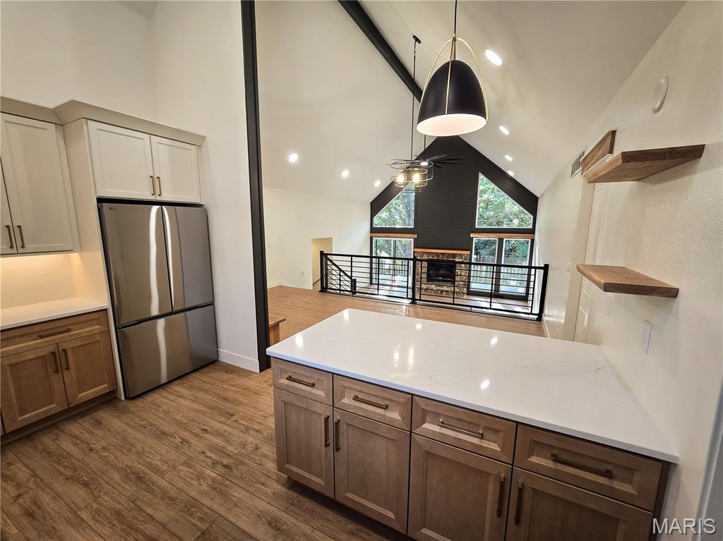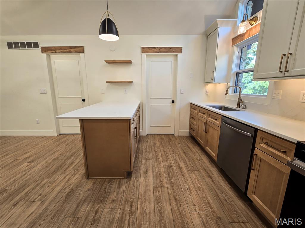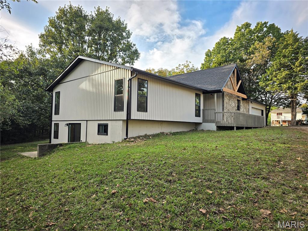 BACK ON THE MARKET, NO FAULT OF THE SELLERS! No expense spared in this top-to-bottom renovation! This stunning 4-bedroom, 3-bath Craftsman-style beauty offers 2,617 finished square feet of luxurious living space! Enjoy peace of mind with a brand new roof, siding, windows, and exterior doors—all designed for long-term durability and curb appeal. Inside, all new luxury vinyl plank flooring flows seamlessly throughout, complementing the new designer kitchen, with new cabinets, quartz countertops, and matching backsplash. The vaulted great room is the heart of the home, highlighted by genuine Missouri white oak accents that add warmth and character. All bathroom vanities are brand new, and fresh interior paint throughout gives the home a crisp, modern feel. Don’t forget to check out the extra-deep garage with plenty of room for storage! Truly move-in ready with every detail beautifully finished.