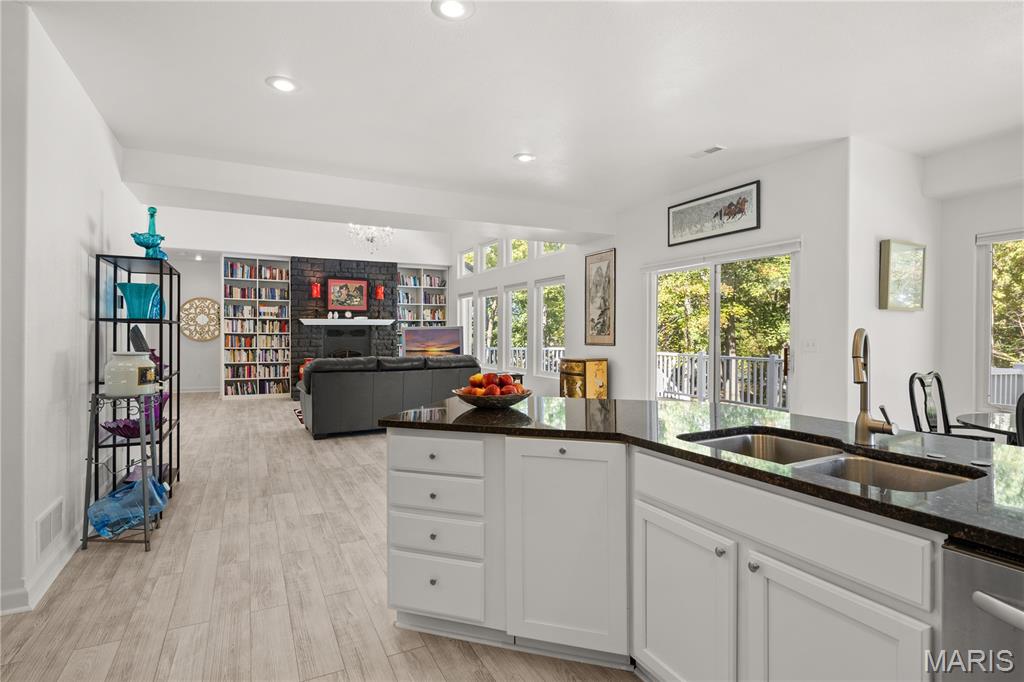 Exquisitely Remodeled Home w/ 6-Car Garage! Experience refined living in this remodeled 2-story/4 bed/3.5-bath home located in the prestigious Porto Cima community of Sunrise Beach, MO. Seller spared no expense, investing six figures in high-end renovations to create an exceptional property. This stunning residence offers over 3,800 sq. ft. of beautifully finished living space & an additional 1,500 sq. ft. of garage space-for car fanatics, toys, or a workshop. A carefully designed open floor plan shows a seamless blend of luxury & comfort, with abundant natural light, stylish finishes, & modern upgrades. The main level boasts a “Masterpiece” primary suite, open living area, wood-burning fireplace, walk-in pantry, & main-level living convenience. Upper level includes 2 spacious Jack & Jill bedrooms, full bath, & cozy den. The property includes a 1,500 sq. ft. rustic apartment-style living quarters—for guests or rental income. Situated on a quiet cul-de-sac, there is flat parking, a large open deck, & a canopy of trees w/seasonal lake views. Enjoy the premier amenities Porto Cima offers. This is more than a home—it’s a statement of style, comfort, & luxury lake living at its best.