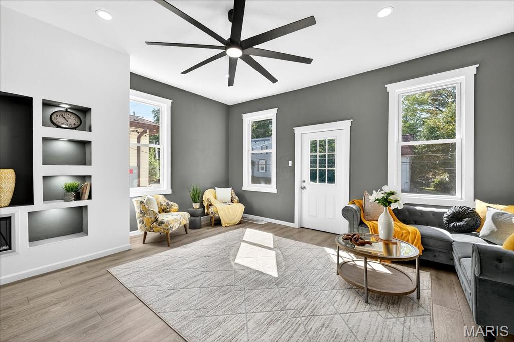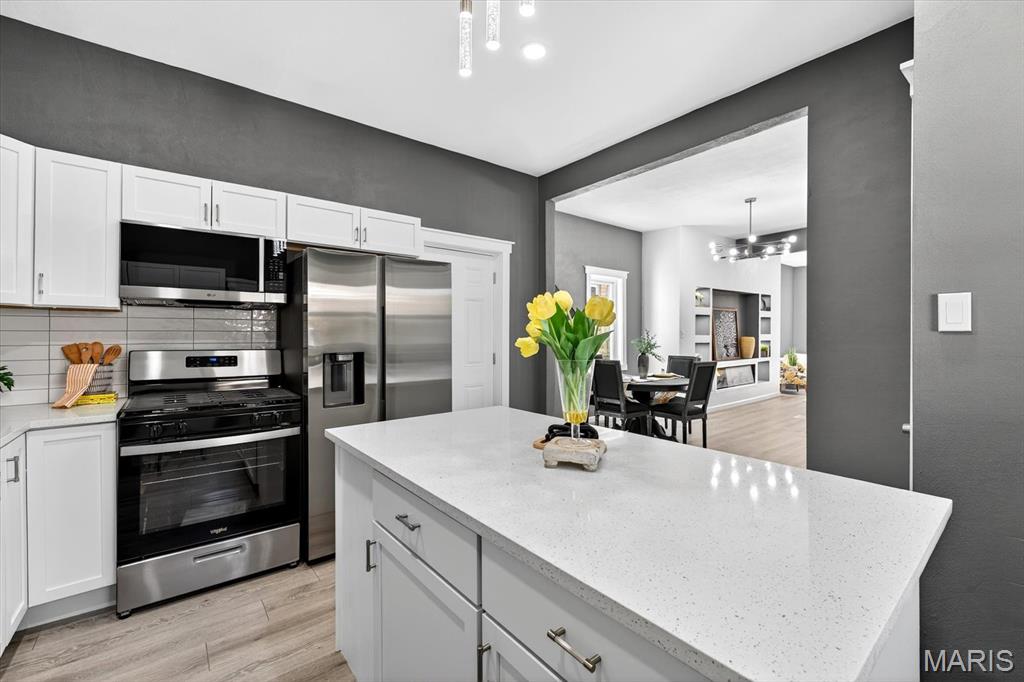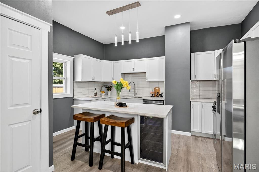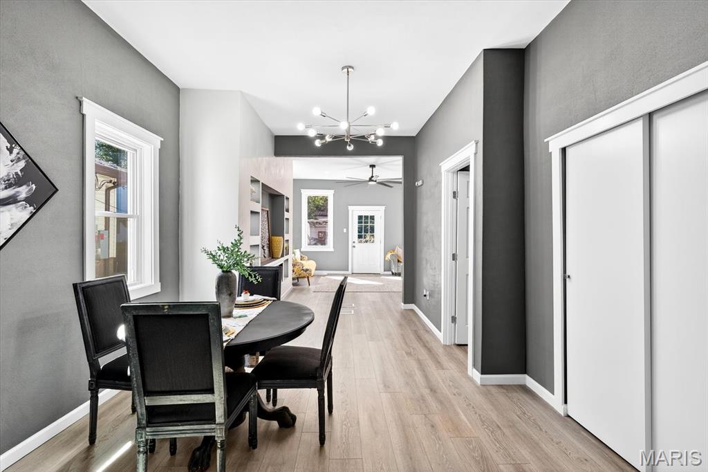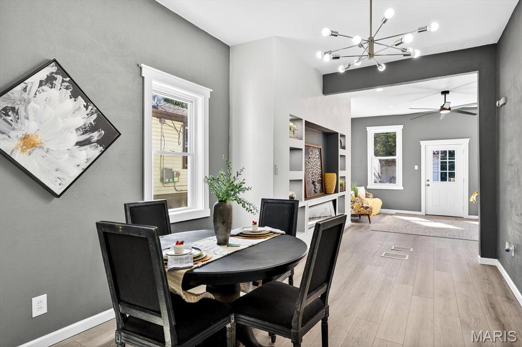 Beautifully updated home in central Belleville. As you enter the living room at the front of the home you can't miss how open the main level is. The living room has a coat closet and the dining room has a closet for storage also. The wonderful built-in is located in the living/dining room area and host a cozy electric fireplace. The dining room leads you into the fabulous totally new kitchen. The kitchen has all new stainless steel appliances including a wine fridge, a center island with seating, and granite countertops. You will find a full bath on the main floor with access to the basement. There is a nice 14x7 (not included in the square footage) enclosed porch/mud room off the kitchen which leads you to the concrete patio and backyard. The upper level host two bedrooms and a convenient half bath. The home has so many updates including a new roof, siding, doors & some windows, flooring, paint, kitchens, baths, lighting, ceiling fans, central a/c, and water heater. The walk up basement is great for storage. All information to be verified by buyer and buyer's agent.