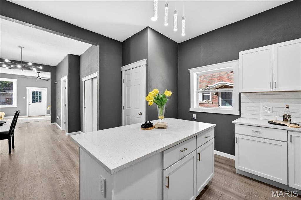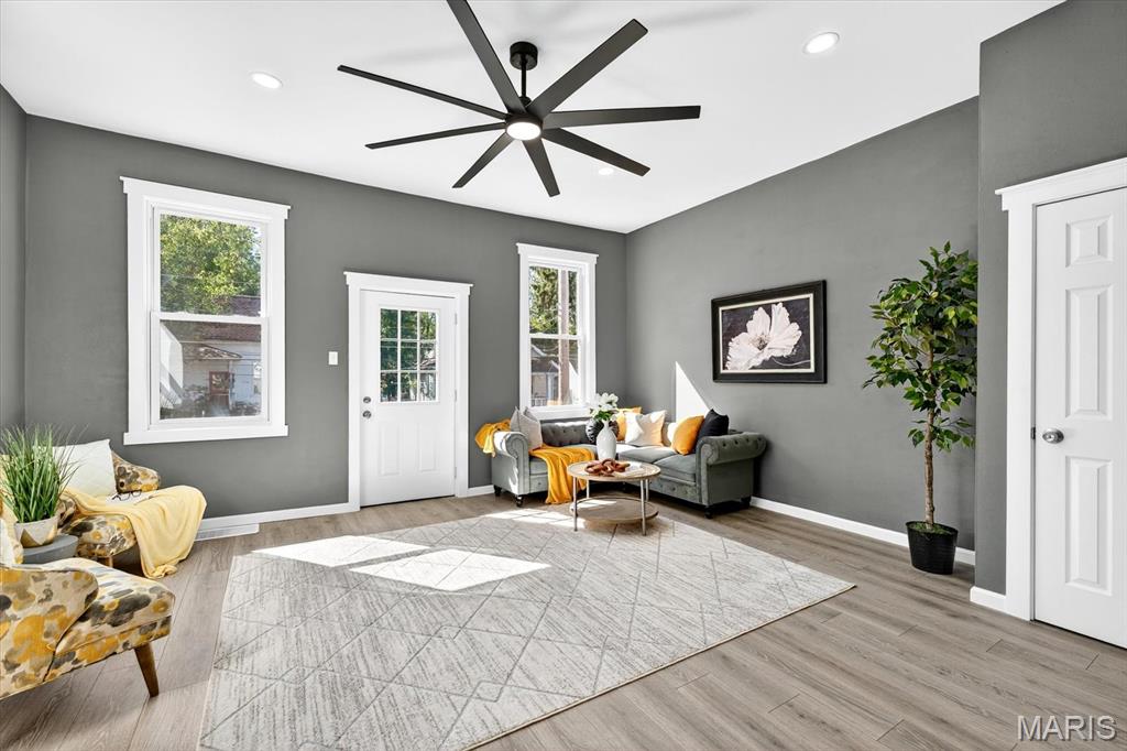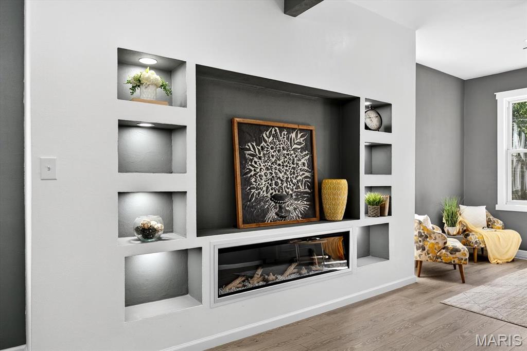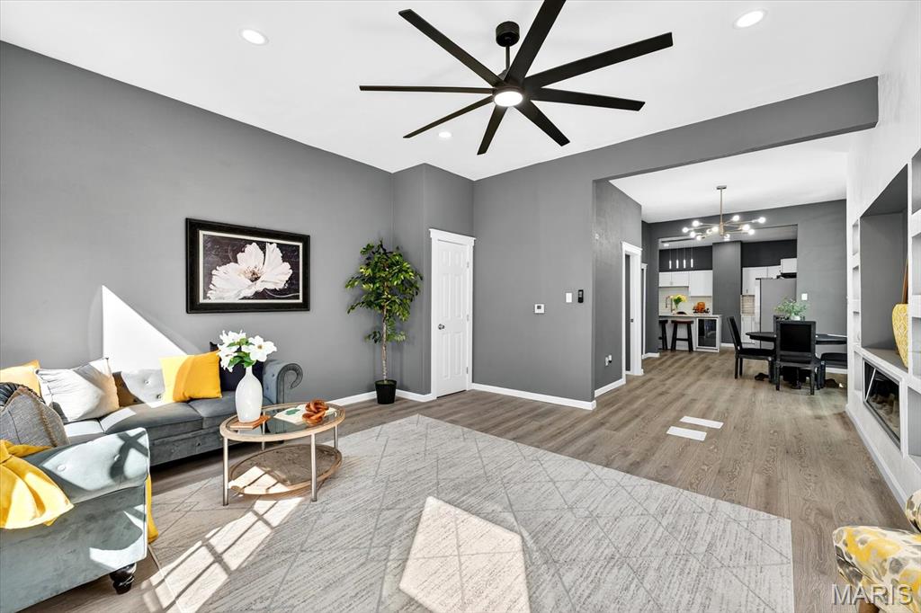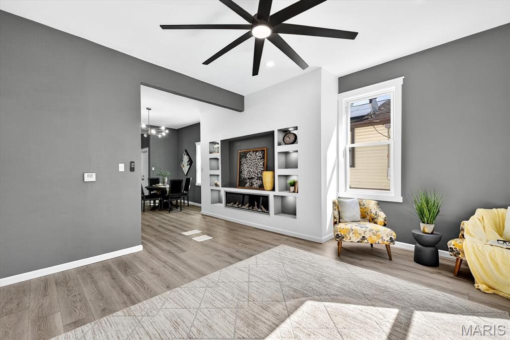 Beautifully updated home in central Belleville. As you enter the living room at the front of the home you can't miss how open the main level is. The living room has a coat closet and the dining room has a closet for storage also. The wonderful built-in is located in the living/dining room area and host a cozy electric fireplace. The dining room leads you into the fabulous totally new kitchen. The kitchen has all new stainless steel appliances including a wine fridge, a center island with seating, and granite countertops. You will find a full bath on the main floor with access to the basement. There is a nice 14x7 (not included in the square footage) enclosed porch/mud room off the kitchen which leads you to the concrete patio and backyard. The upper level host two bedrooms and a convenient half bath. The home has so many updates including a new roof, siding, doors & some windows, flooring, paint, kitchens, baths, lighting, ceiling fans, central a/c, and water heater. The walk up basement is great for storage. All information to be verified by buyer and buyer's agent.