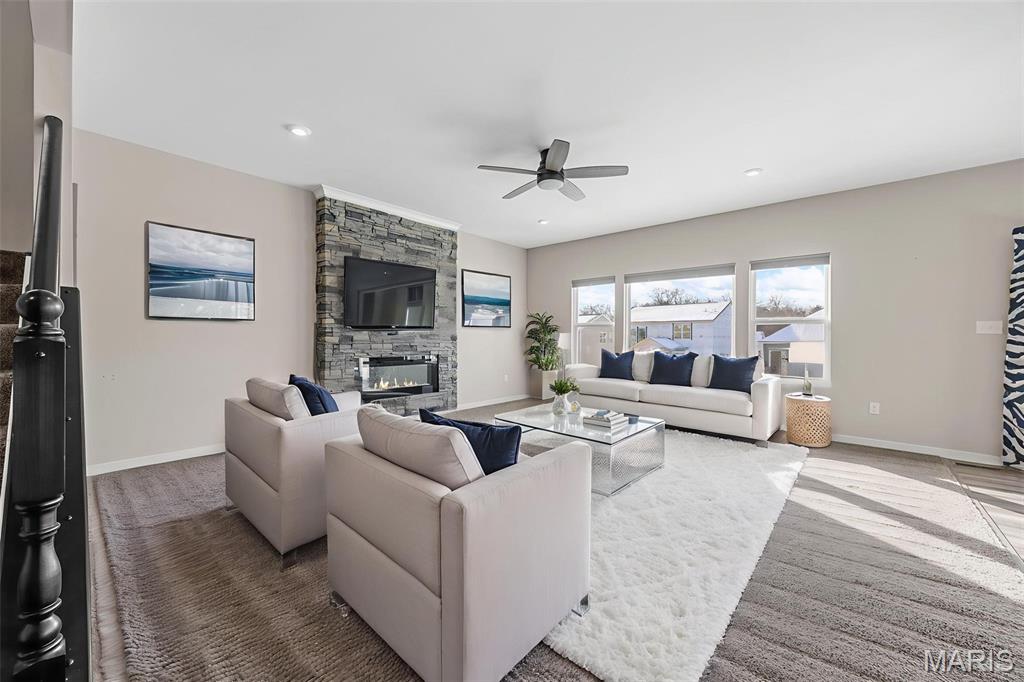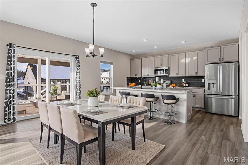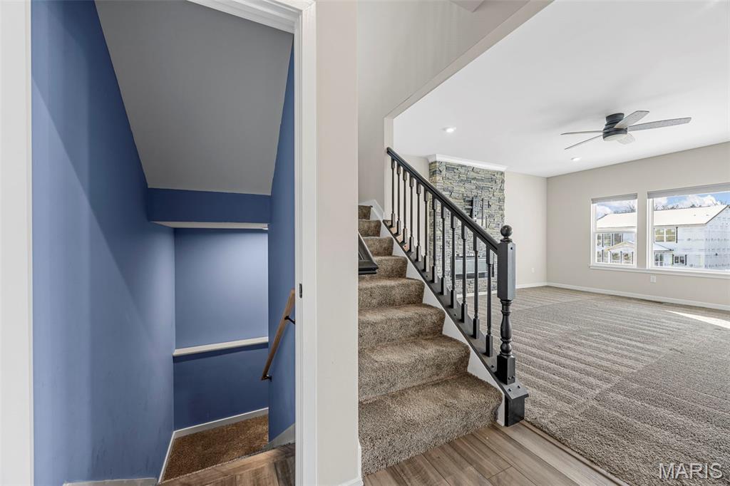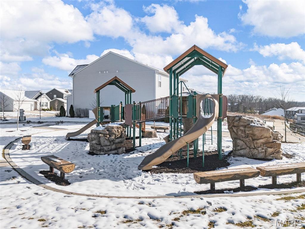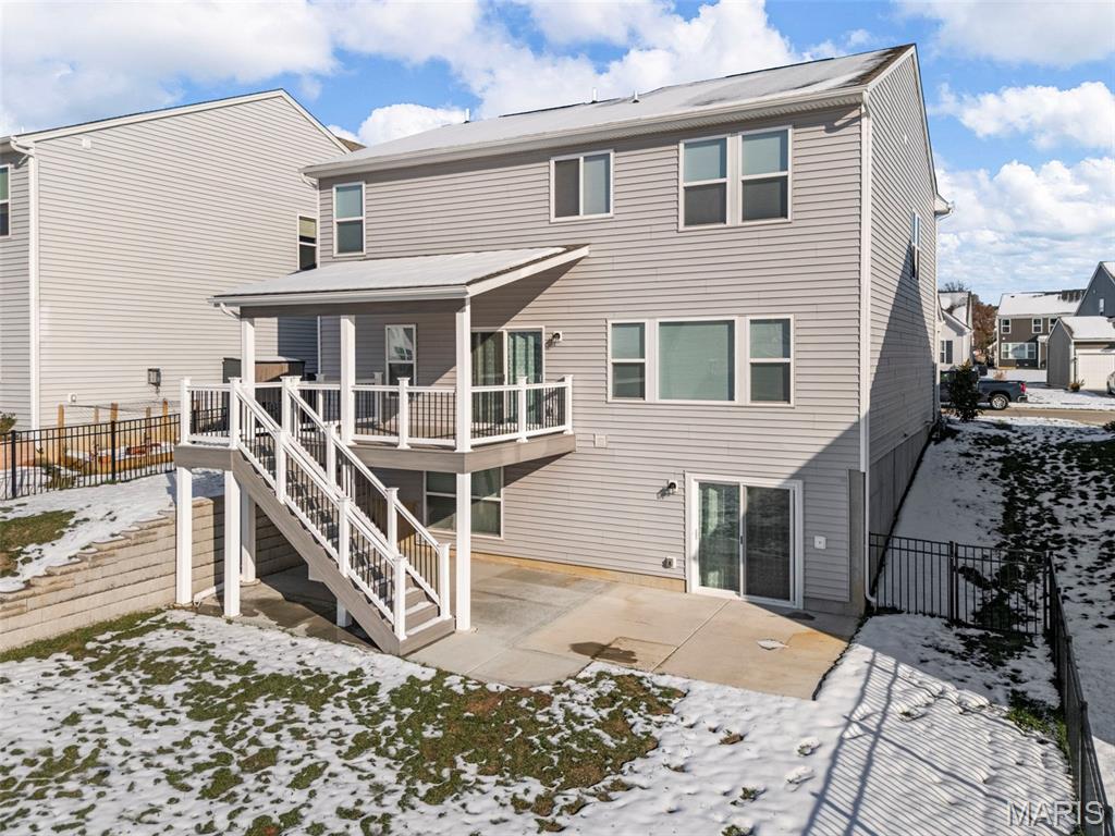 Modern Comfort Meets Prime Wentzville Living! Welcome to this beautifully maintained two-story home in the heart of Wentzville, built in 2022 and designed for today’s lifestyle. Featuring 4 bedrooms, 3.5 baths, and a newly finished walk-out lower level, this home combines modern finishes, thoughtful upgrades, and a perfect location near top-rated Wentzville schools, shopping, dining, and community parks. The gourmet kitchen is a true centerpiece, showcasing 42” slate cabinets, granite countertops, undermount sink, stainless steel appliances (refrigerator included), and a walk-in pantry. Enjoy casual meals in the breakfast area, or step out through the sliding glass door to a maintenance-free 15' x 16' covered deck—perfect for morning coffee or sunset views. An inviting great room features built-in bookshelves, an electric fireplace, and open flow to the kitchen for easy entertaining. The main level also offers 9-foot ceilings, a private office with French doors, mudroom cubbies, and a finished, insulated garage. Upstairs, you’ll find four spacious bedrooms, each with a walk-in closet. The primary suite delivers luxury with double adult-height vanities, a soaking tub, and a separate shower. An upper-level laundry room with cabinetry and a utility sink adds extra convenience. The finished walk-out lower level includes a den, fifth sleeping area, and full bath, ideal for guests or extended family. Outside, enjoy the fully fenced backyard, expanded patio, and nearby walking trails leading to the community playground. Live easy, live beautifully—this home offers modern comfort, prime location, and a move-in-ready lifestyle.